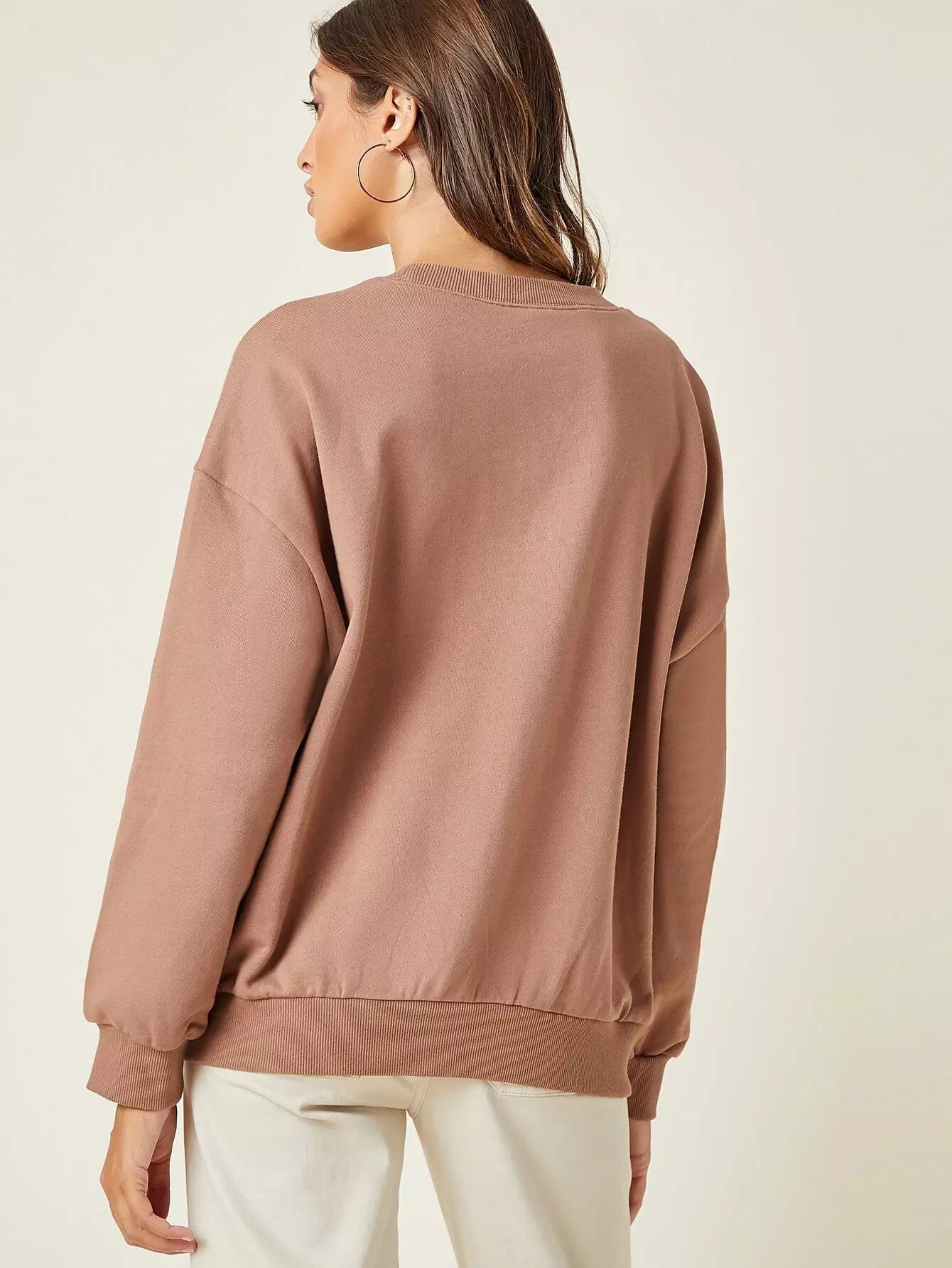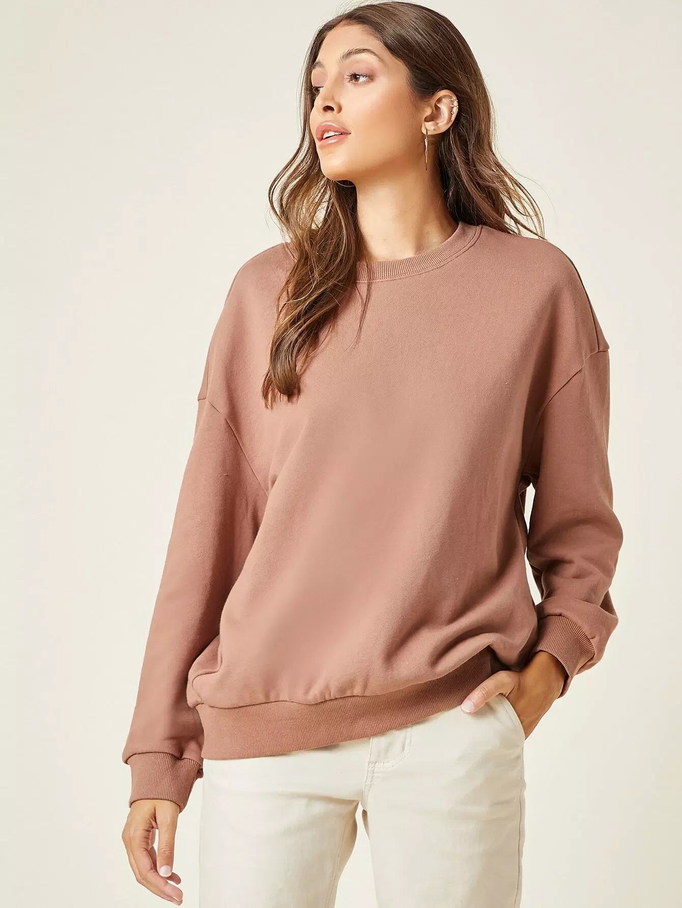 سويت شيرت قطني سادة منسدل الكتفين من القطن