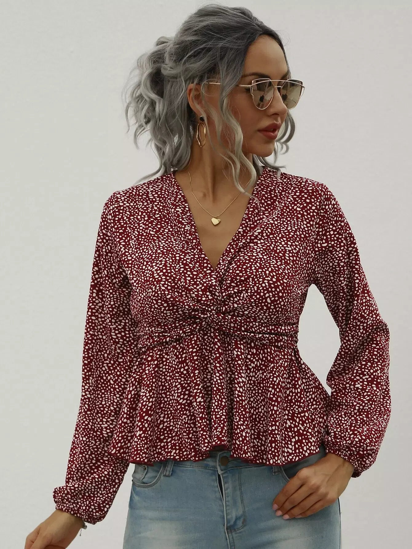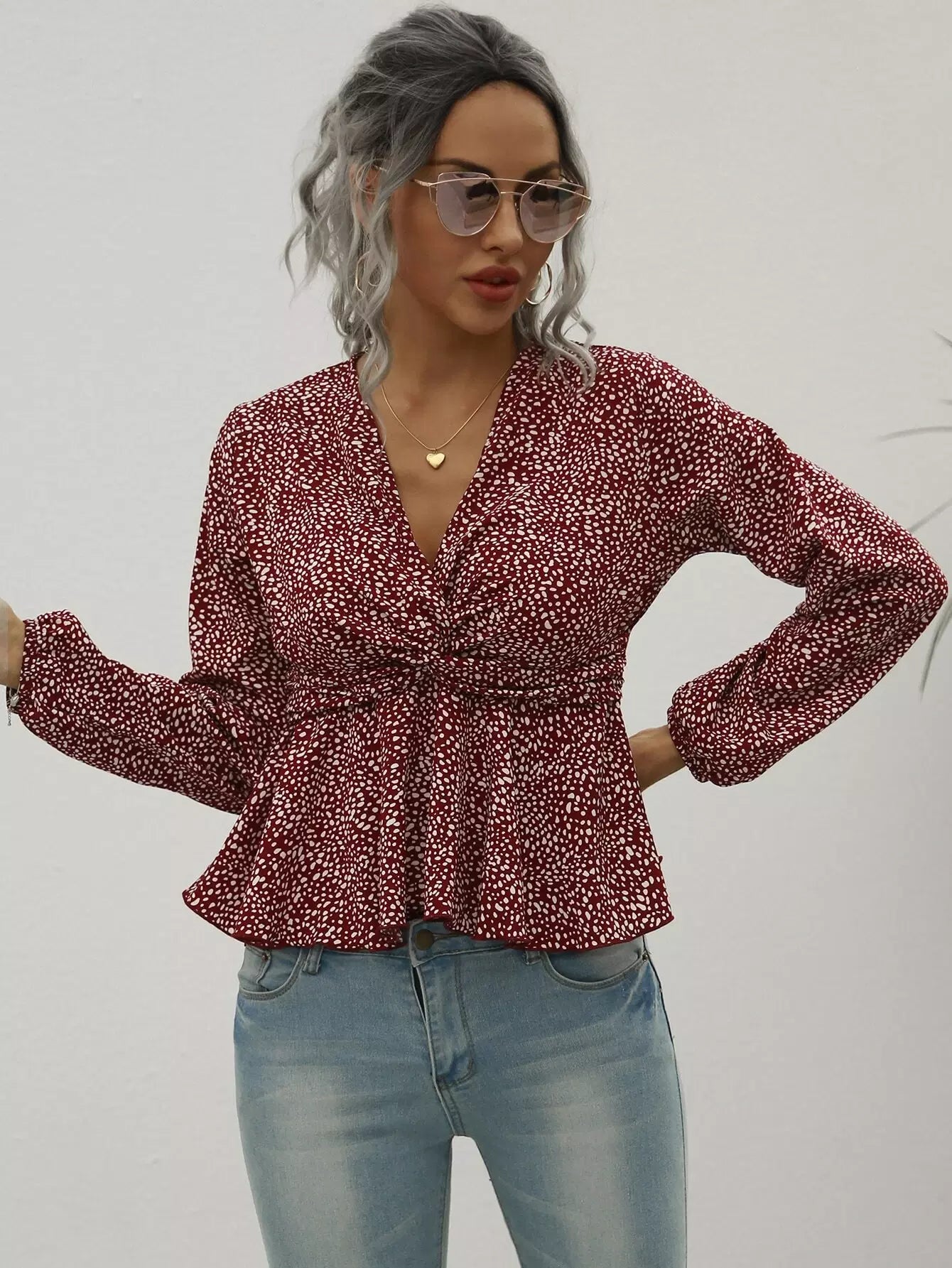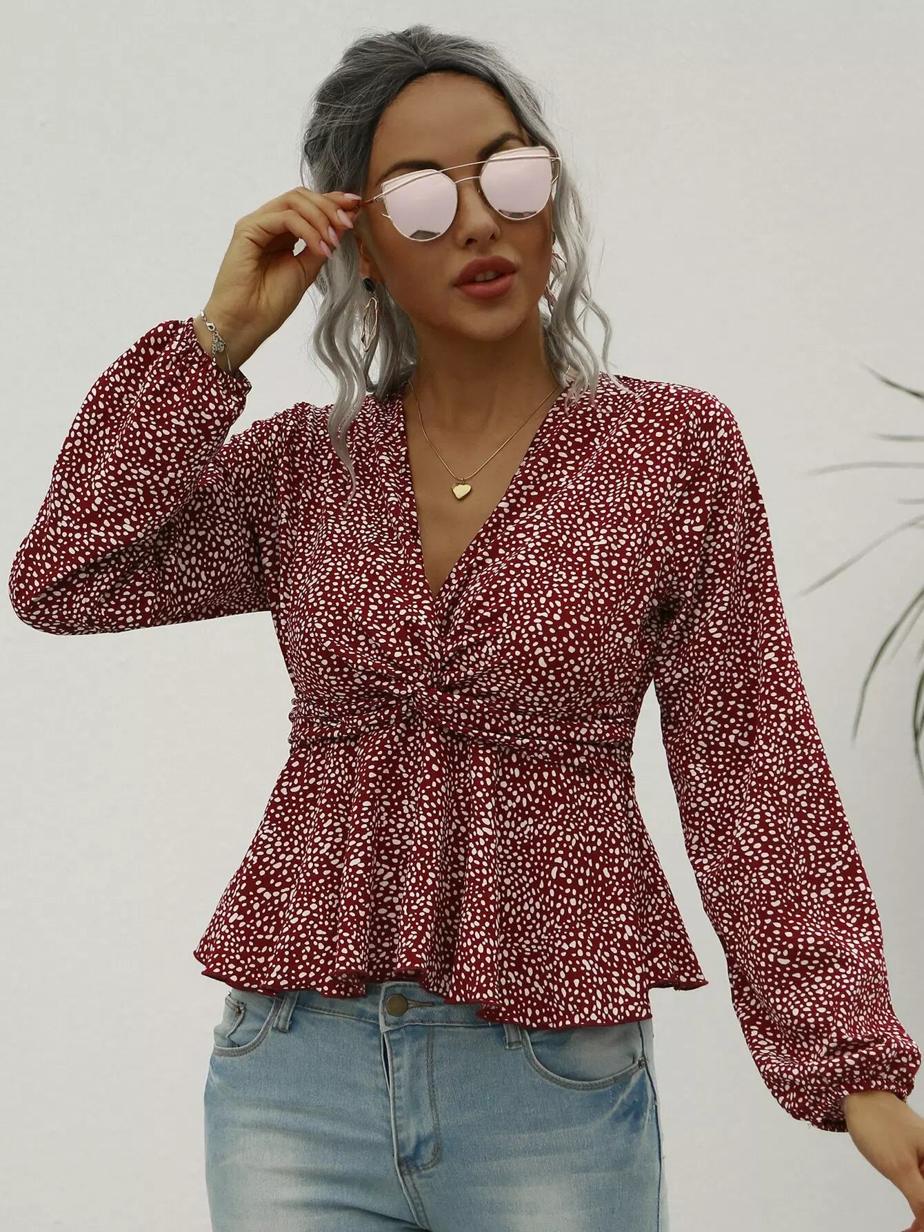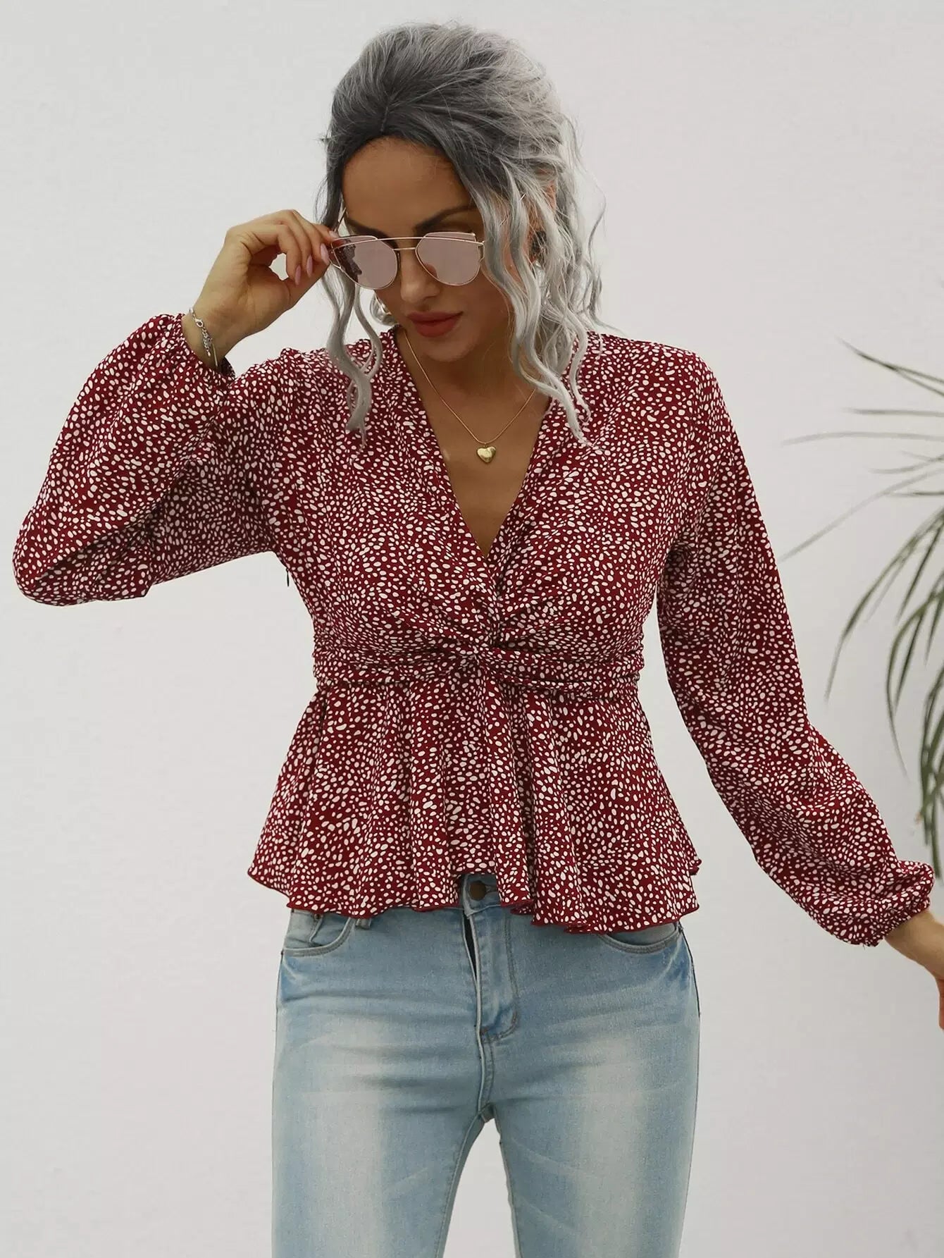 بلوزة بيبلوم بطبعة دالمسيان تويست بطبعة دالمسيان
