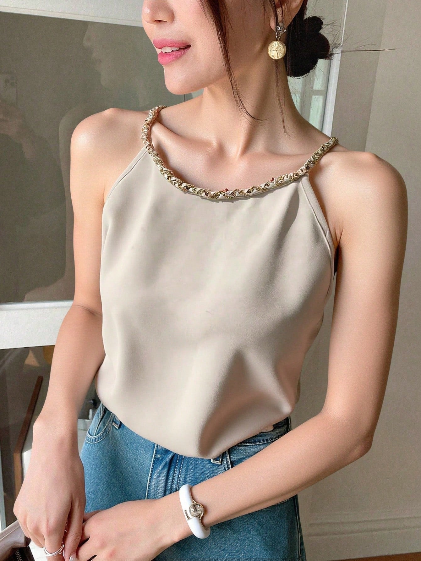 DAZY New Summer Women Elegant Satin Halter Neck Tank Top