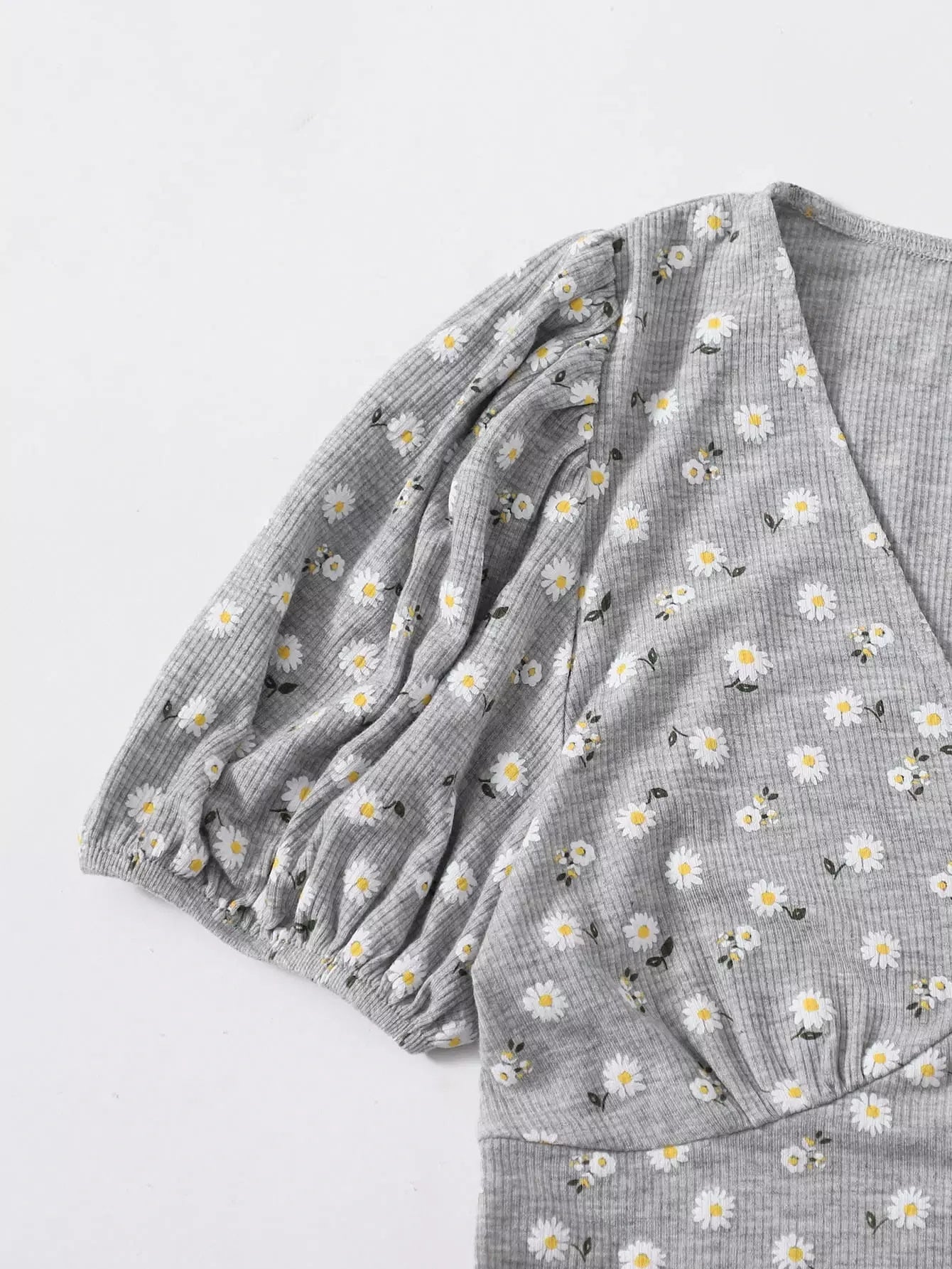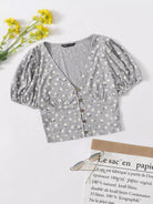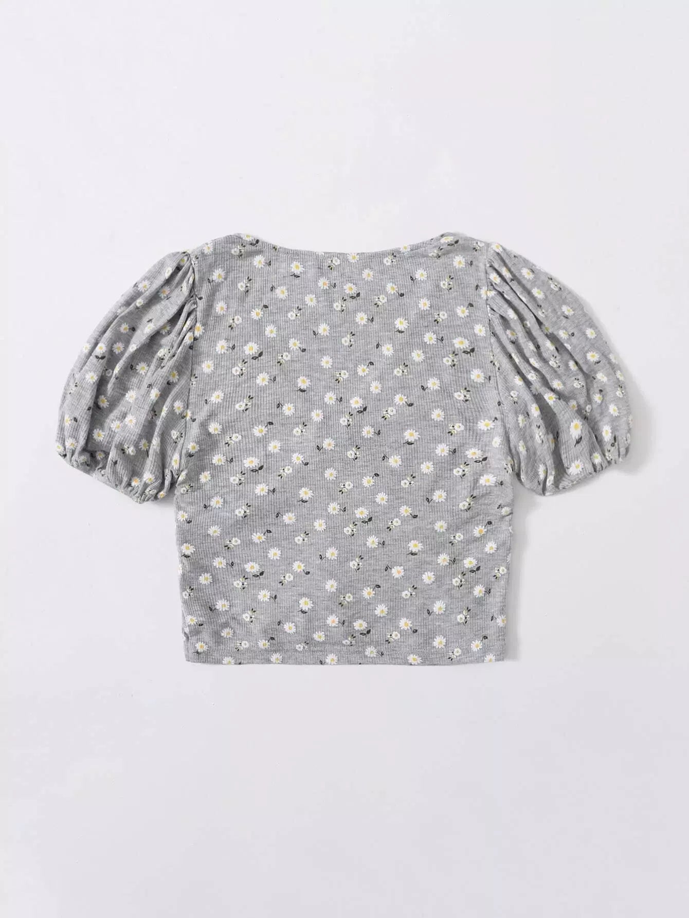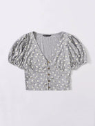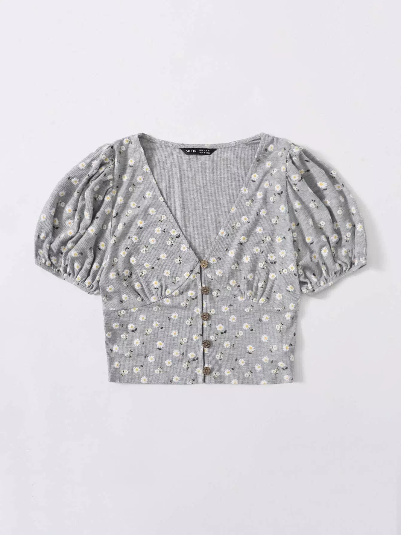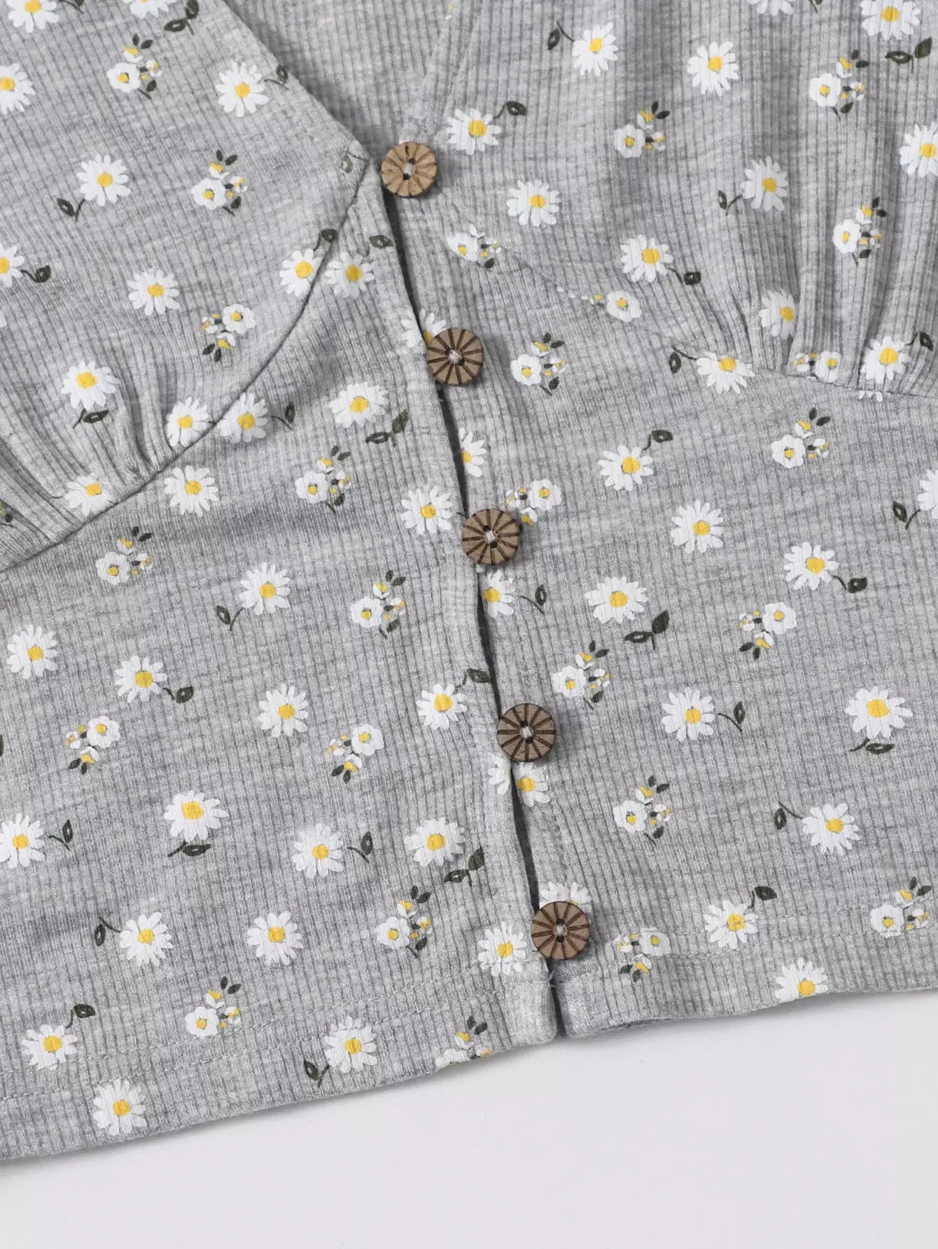 تي شيرت مزين بأزرار أمامية مزينة بأزرار أمامية محبوكة على شكل ضلع