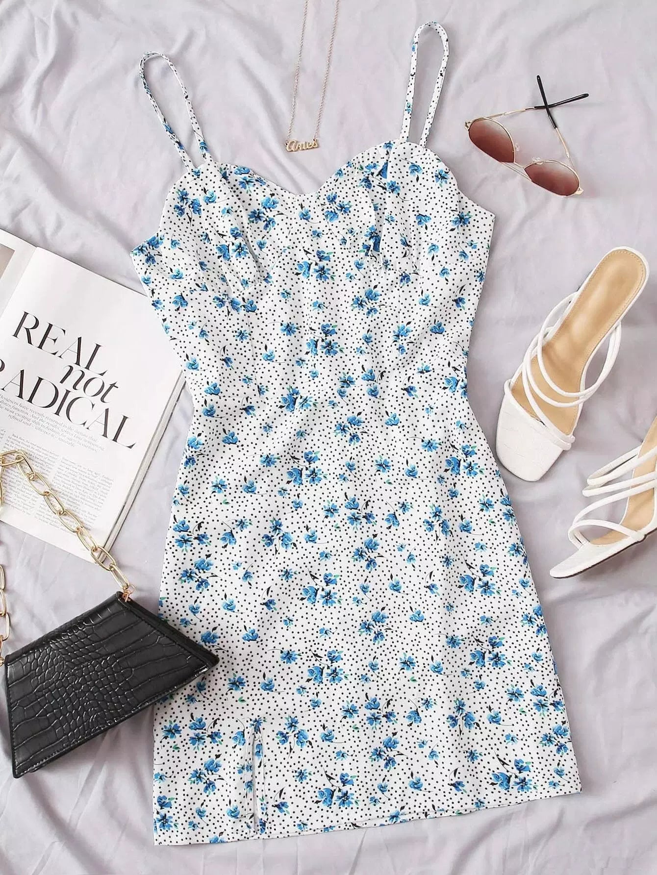 فستان كامي ديتسي مزين بالورود ومنقّط