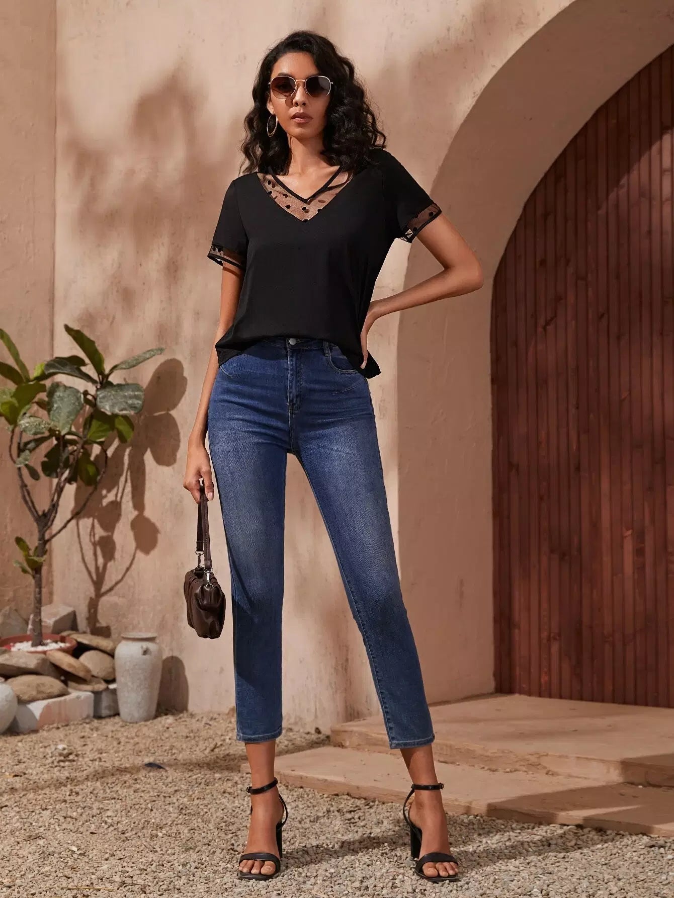 | خط العنق | رقبة على شكل حرف V |
