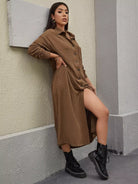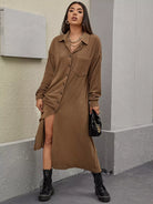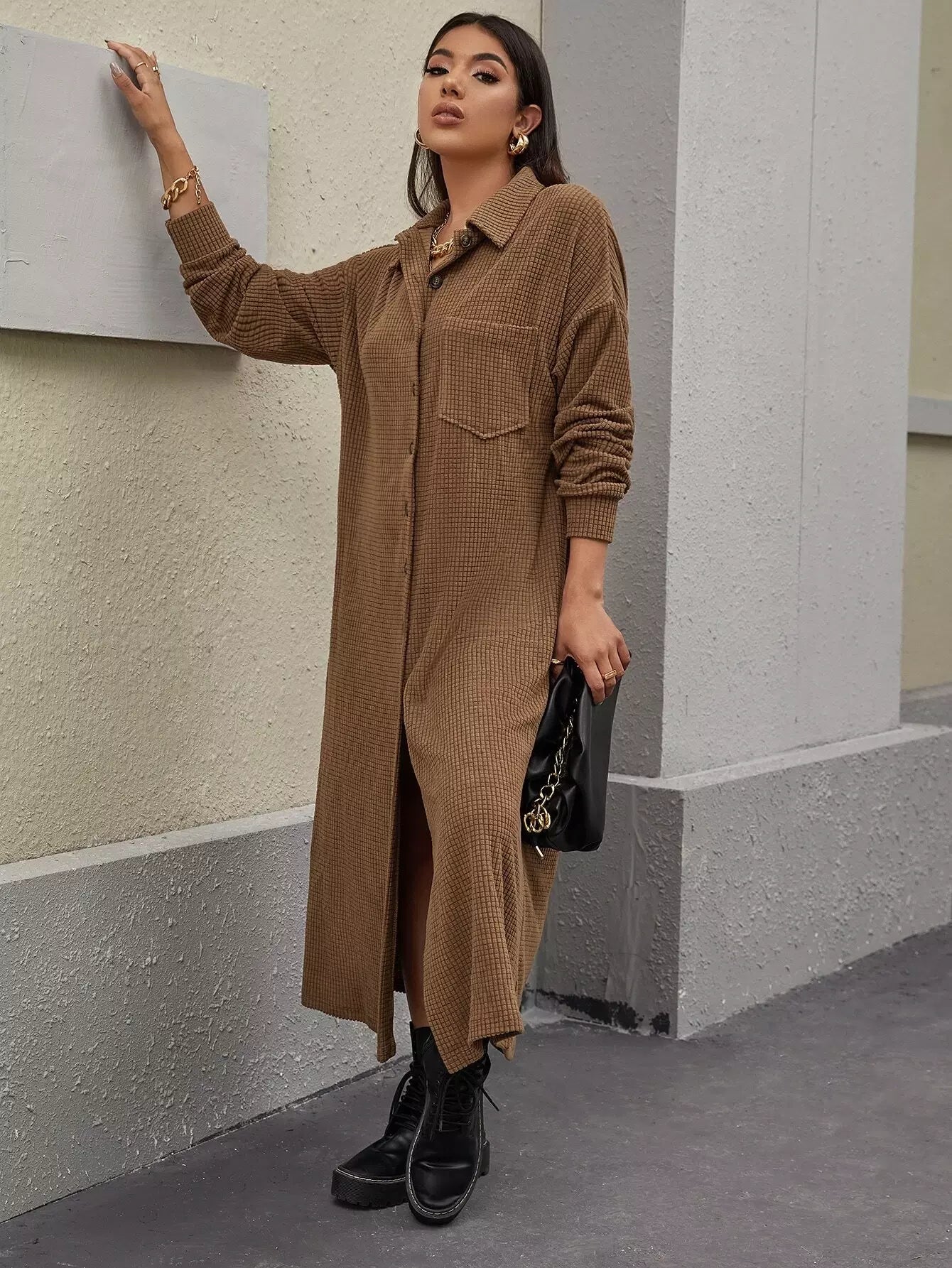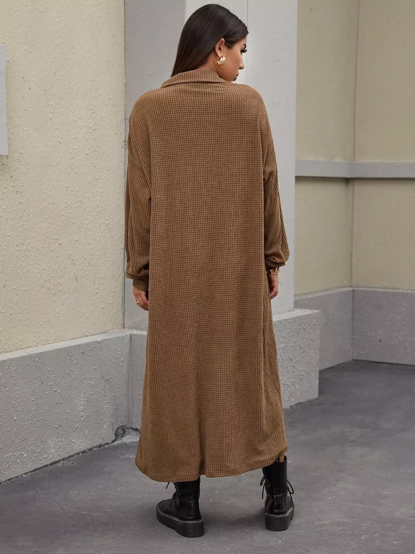 معطف منسدل الكتف مع جيوب وبأزرار في الأمام