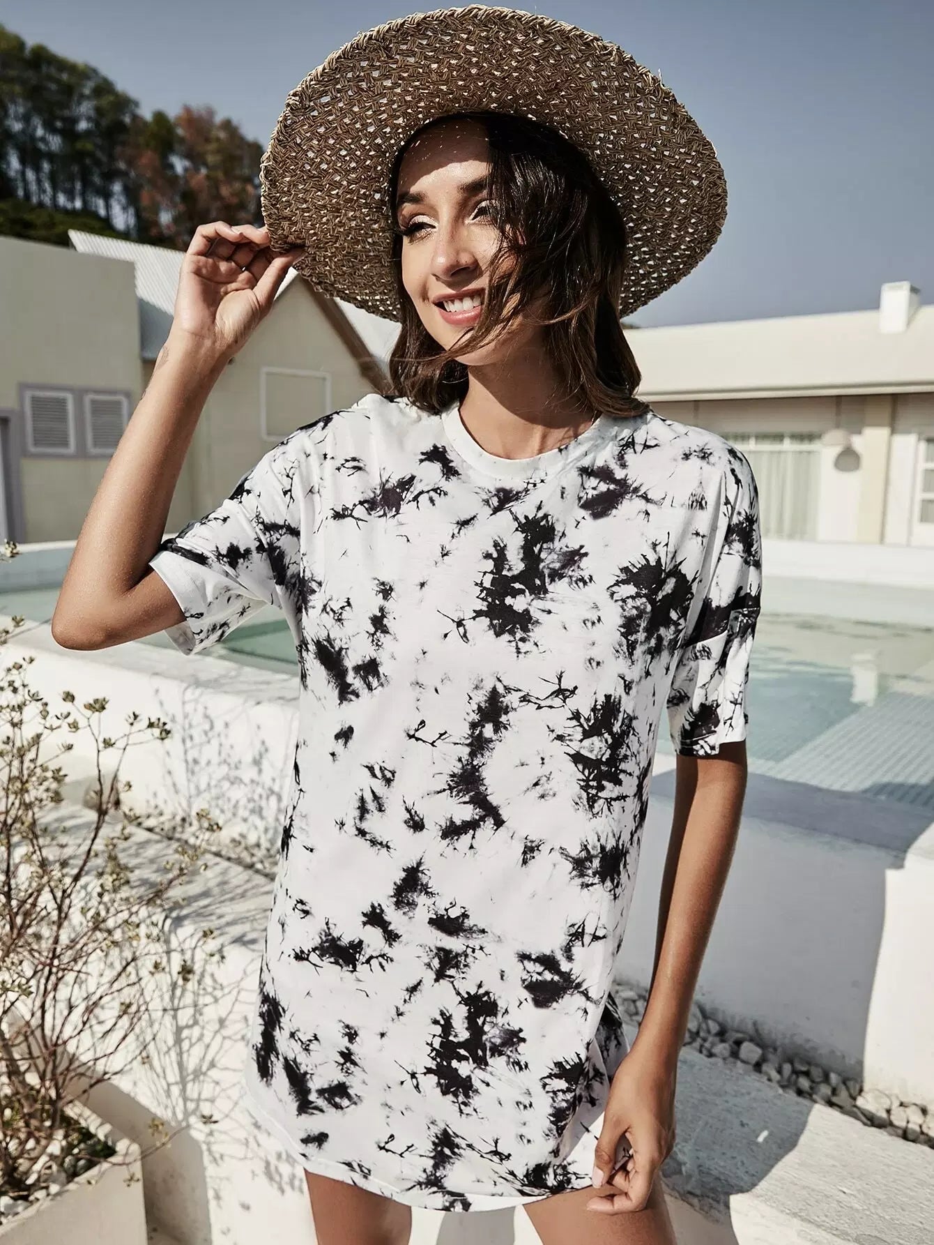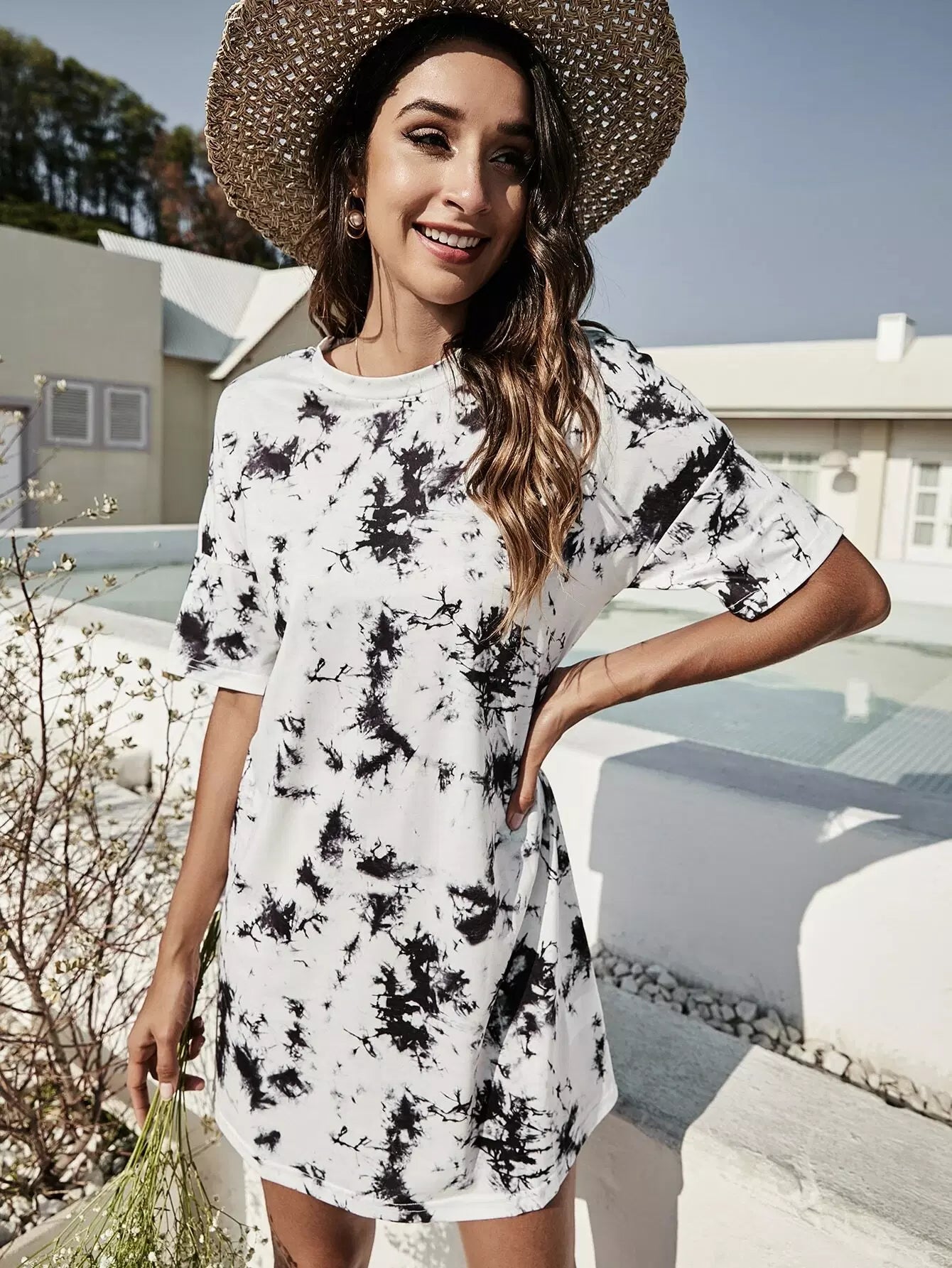 فستان منسدل الأكتاف مصبوغ بصبغة منسدلة