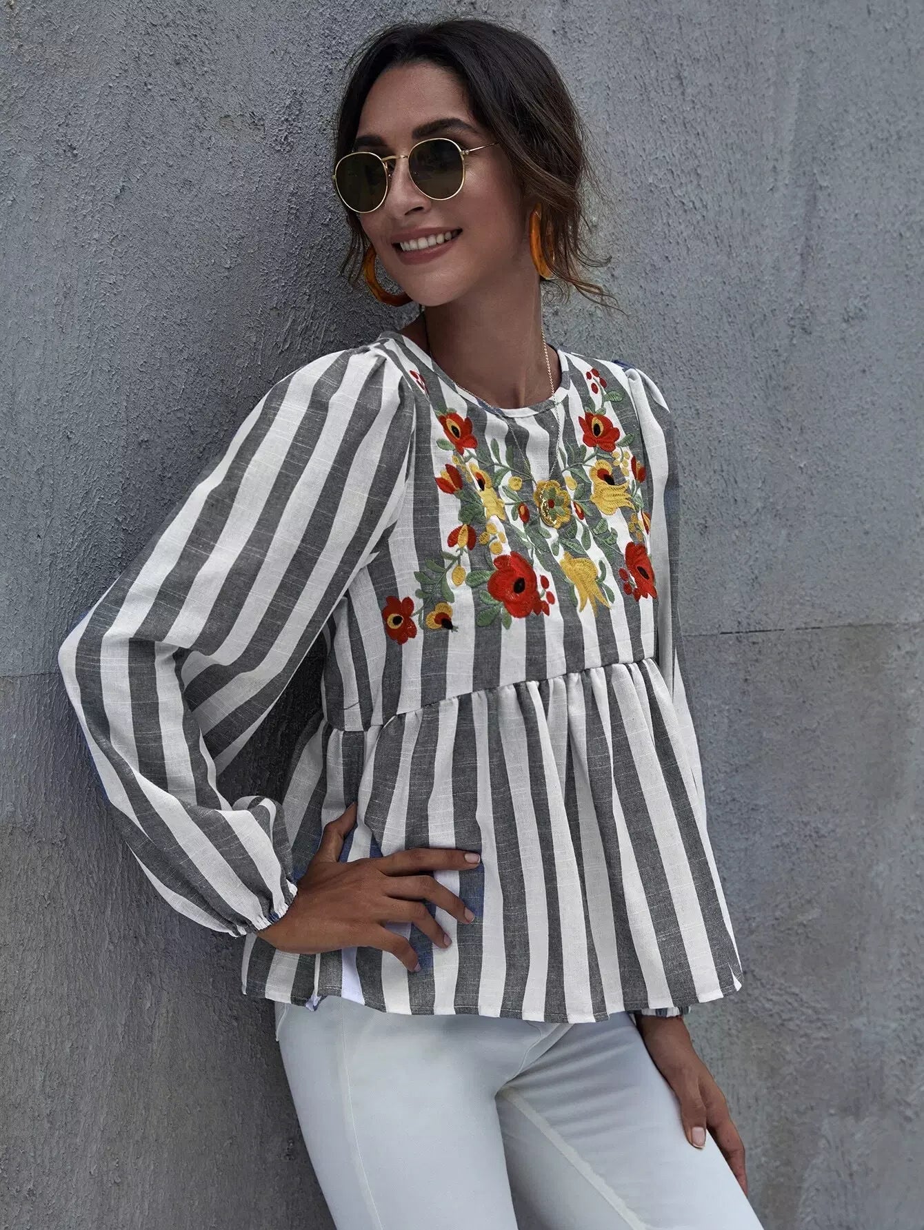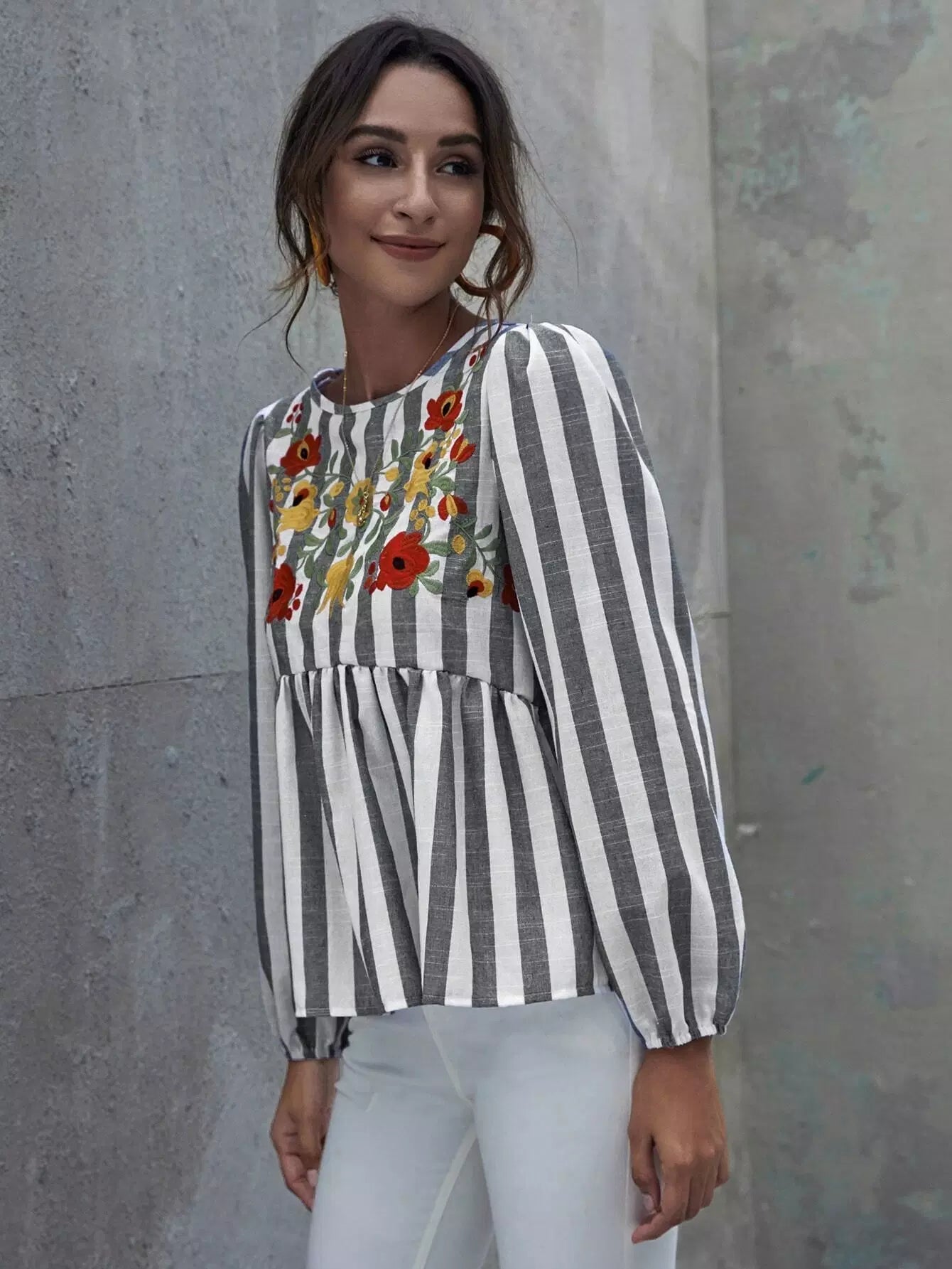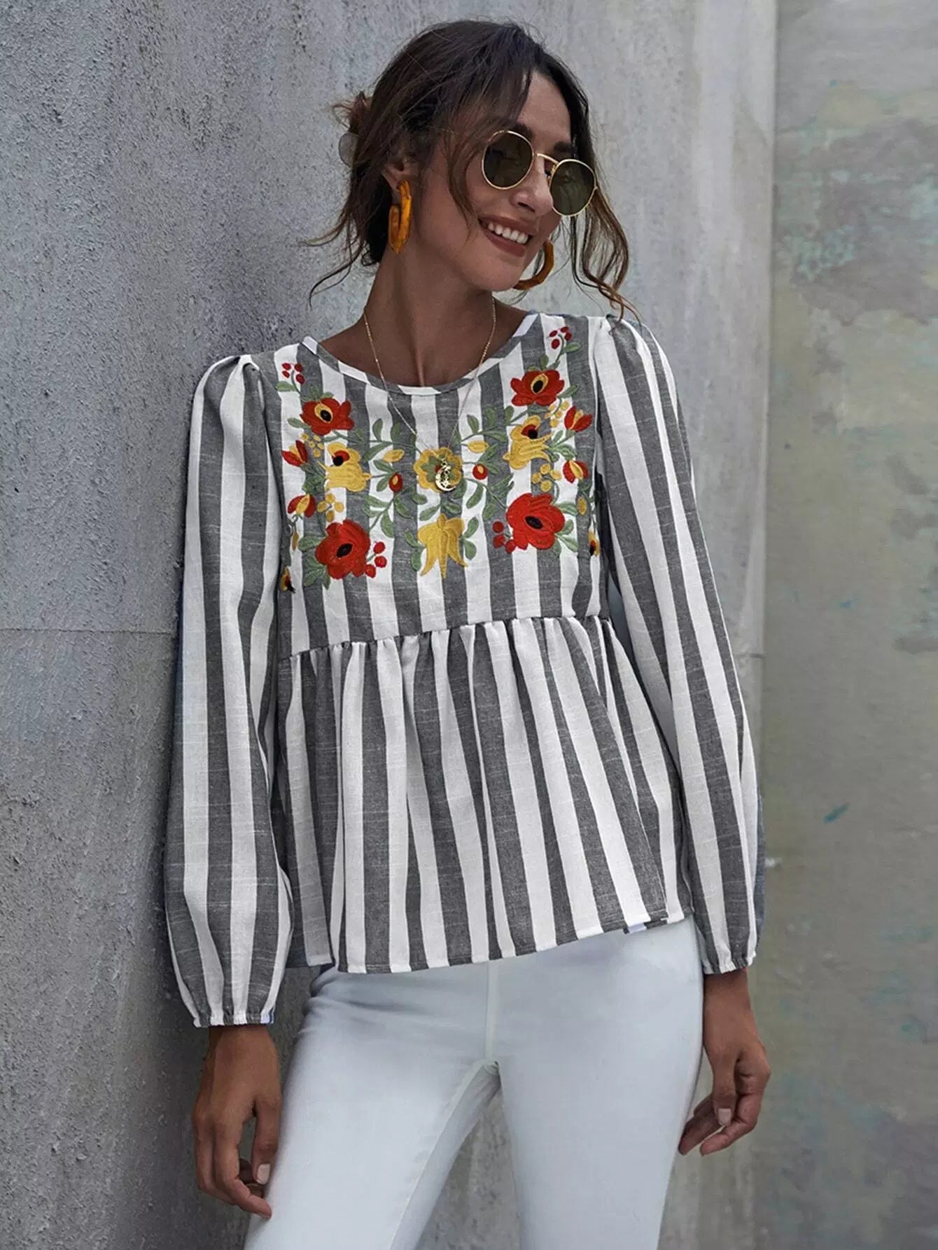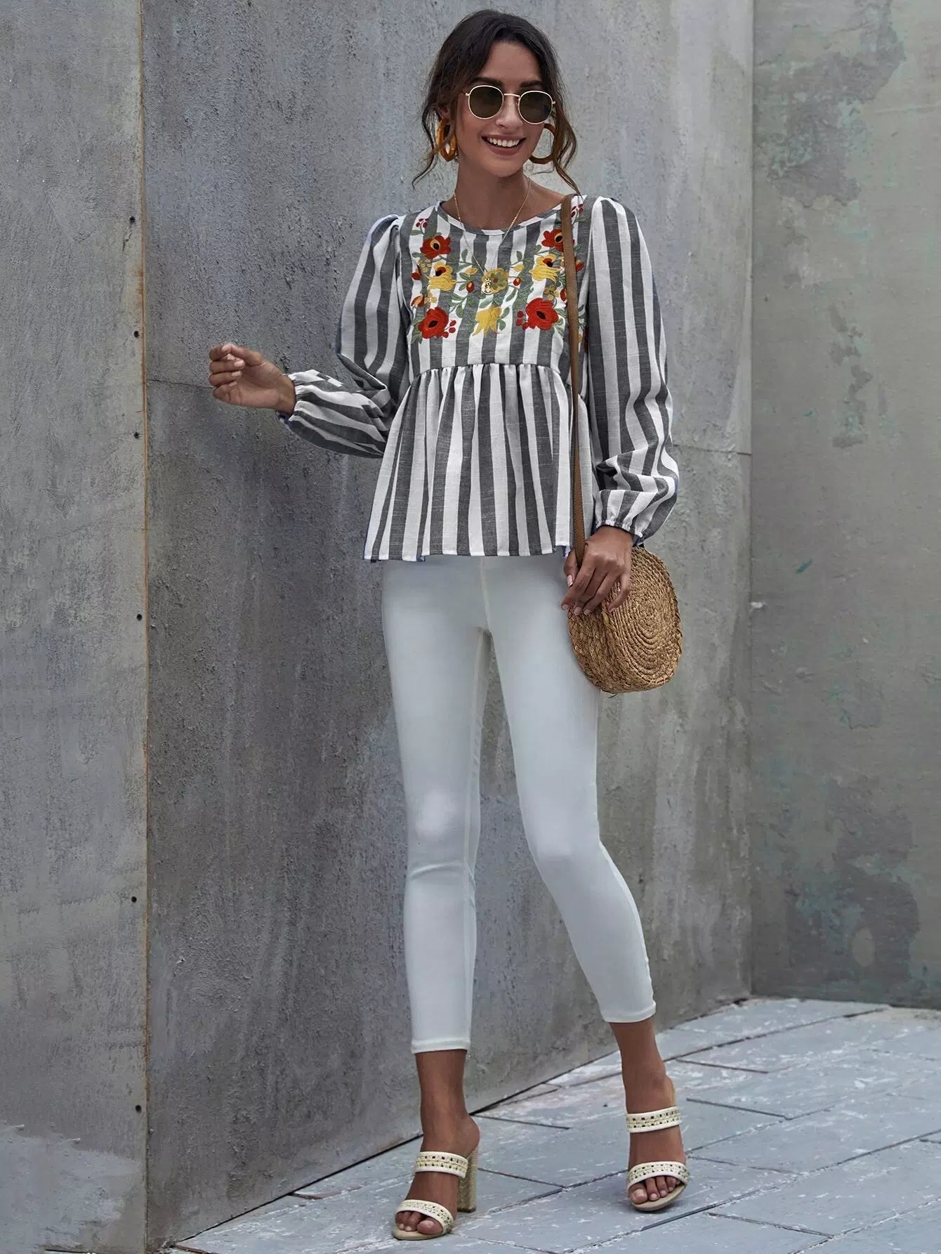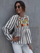 قميص بدون أكمام مخطط بالزهور مطرز بالزهور