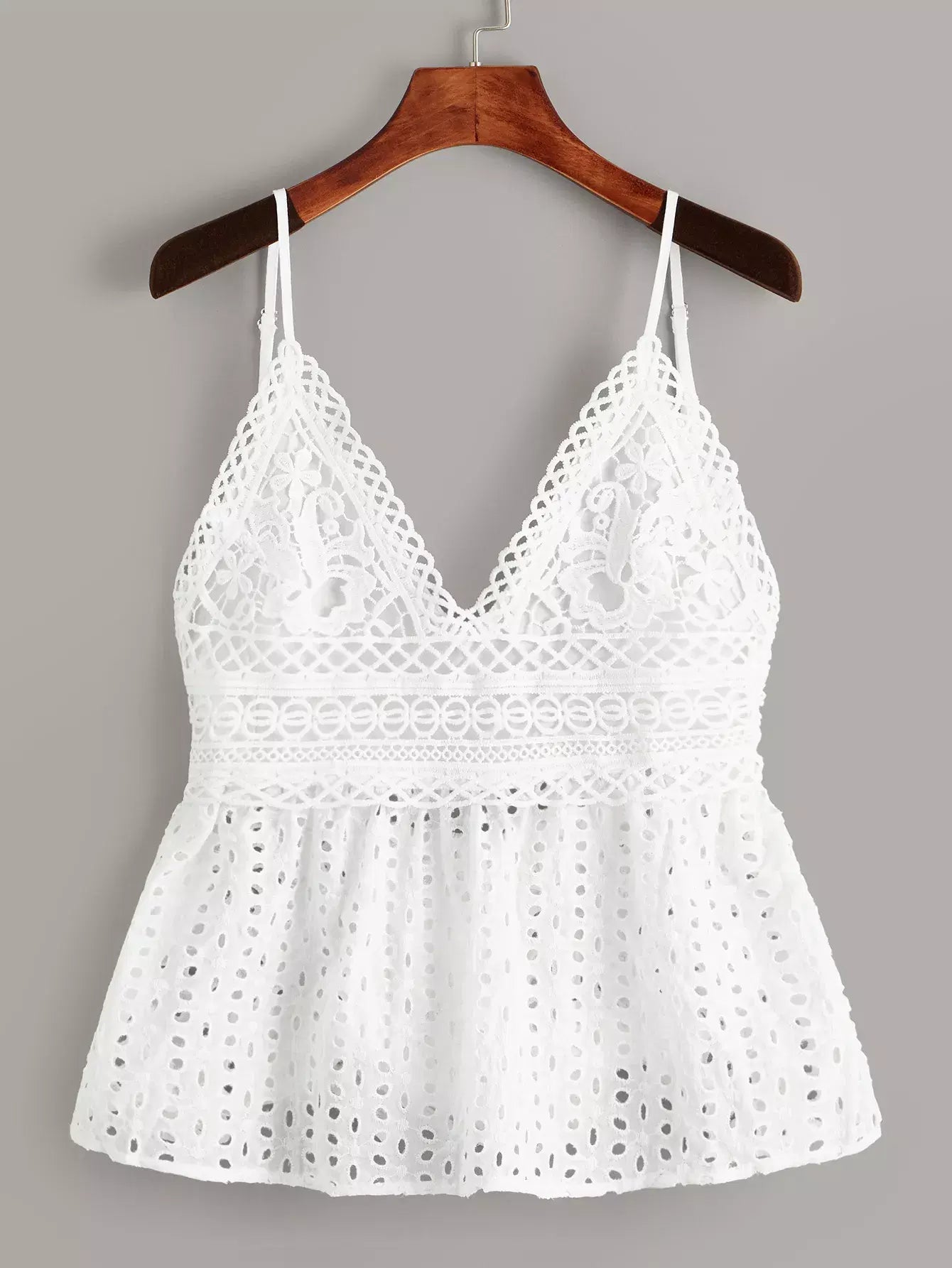 بلوزة كامي مطرزة بعقدة من الخلف بتطريزات العيينة