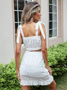 قميص قصير قصير قصير الكتف مطرز بعقدة تطريز على الكتف