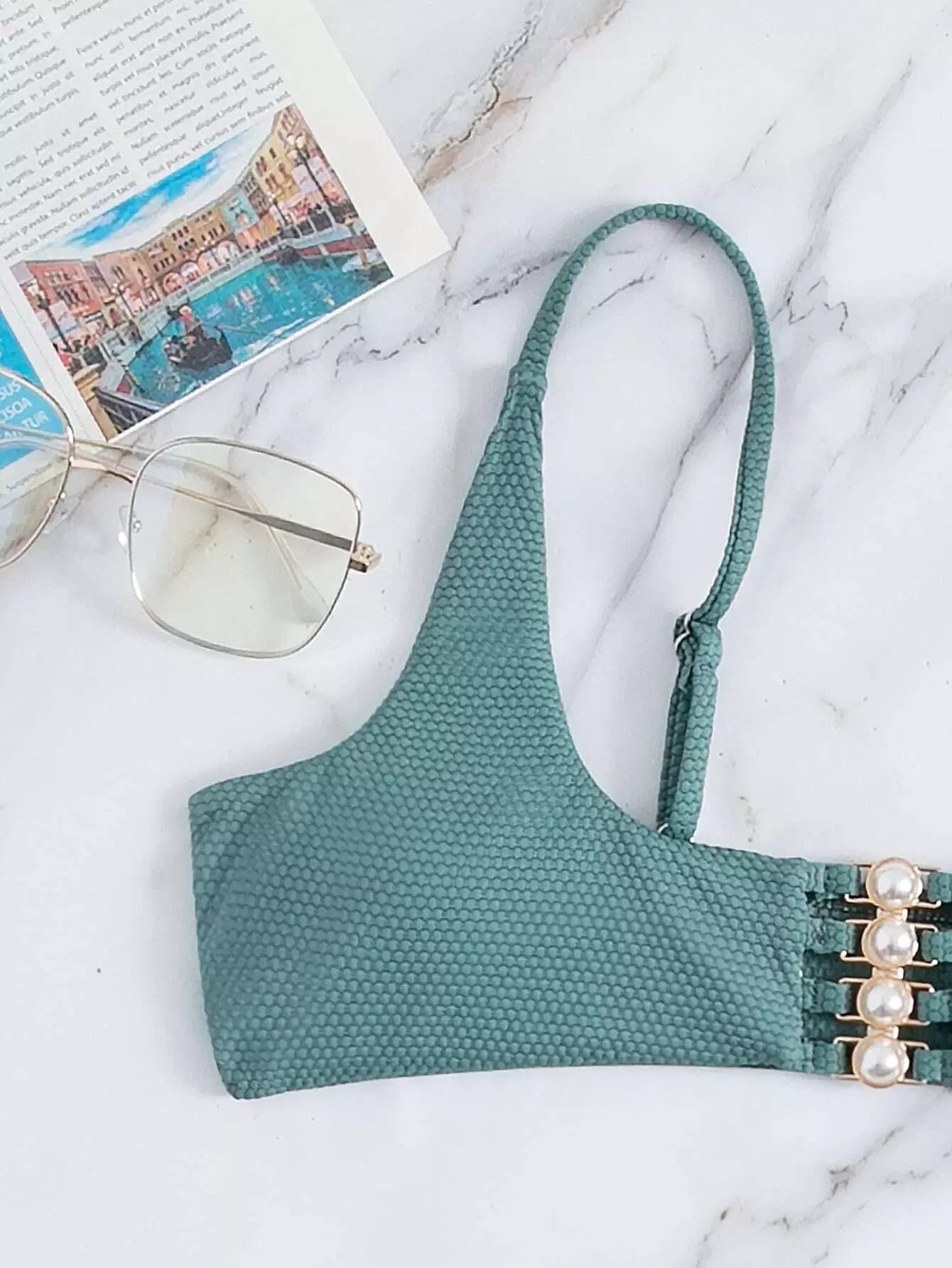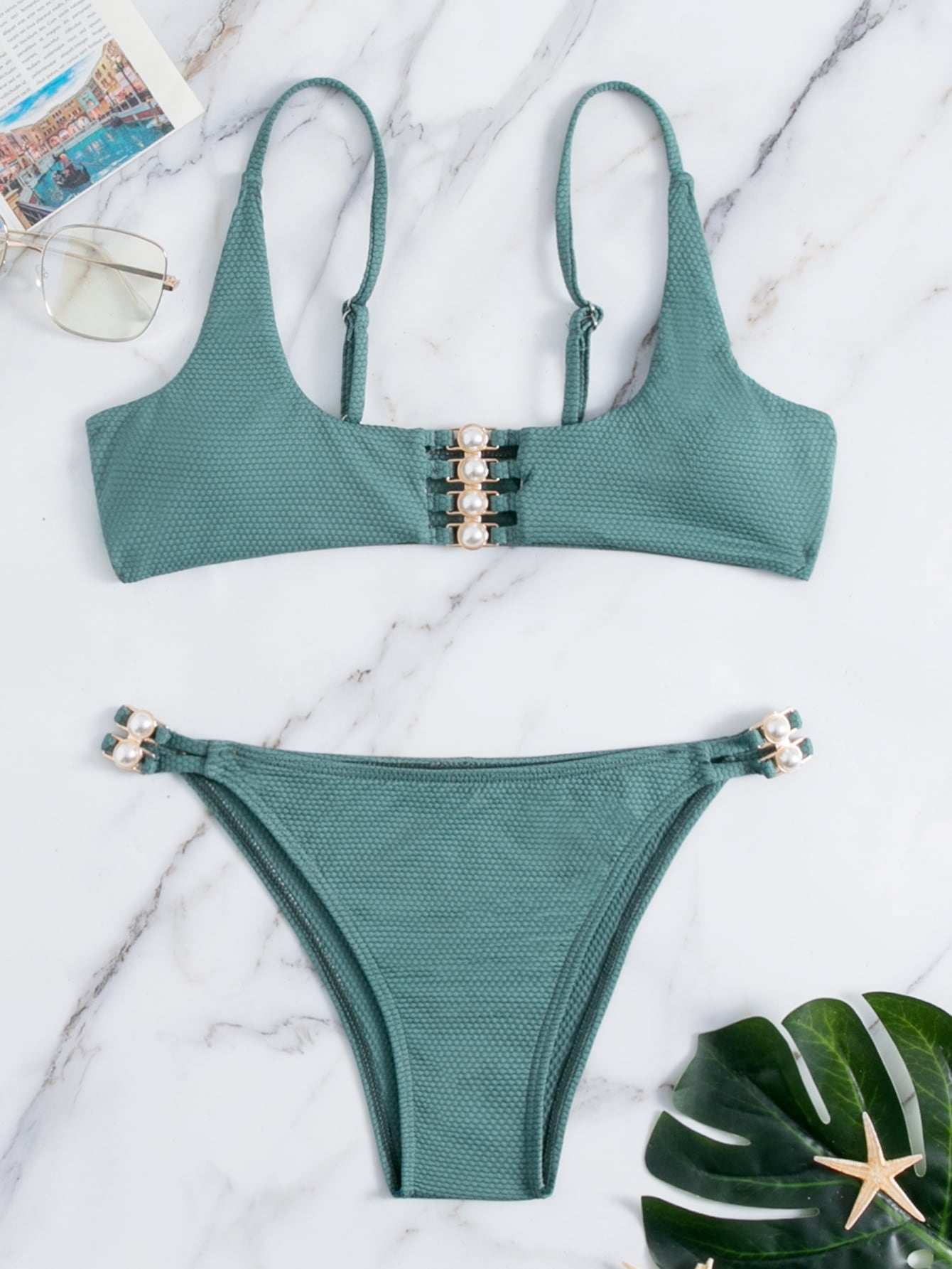 لباس سباحة بيكيني مزين باللؤلؤ الصناعي
