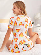 أونيزي بيجامة برسومات النار والحروف