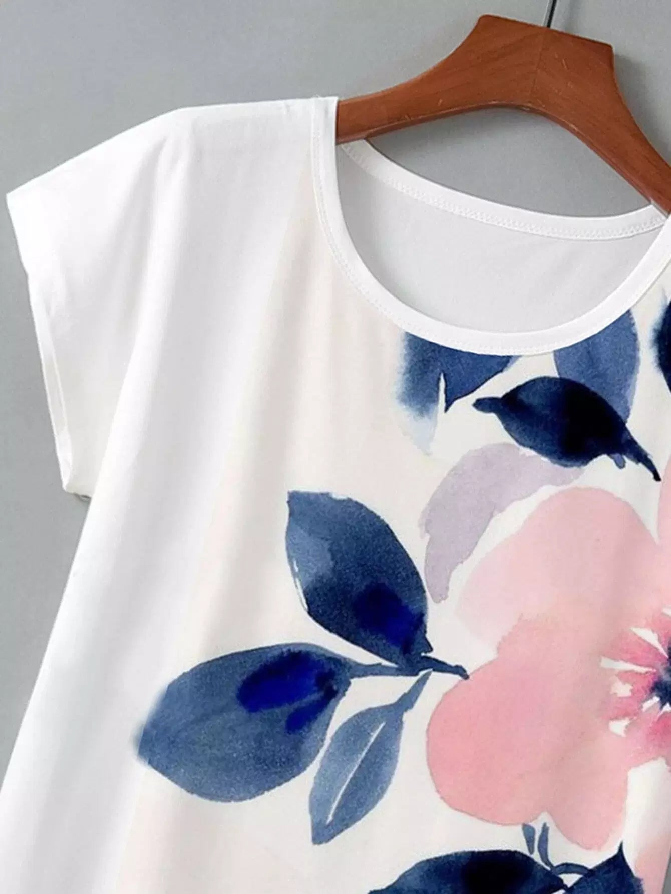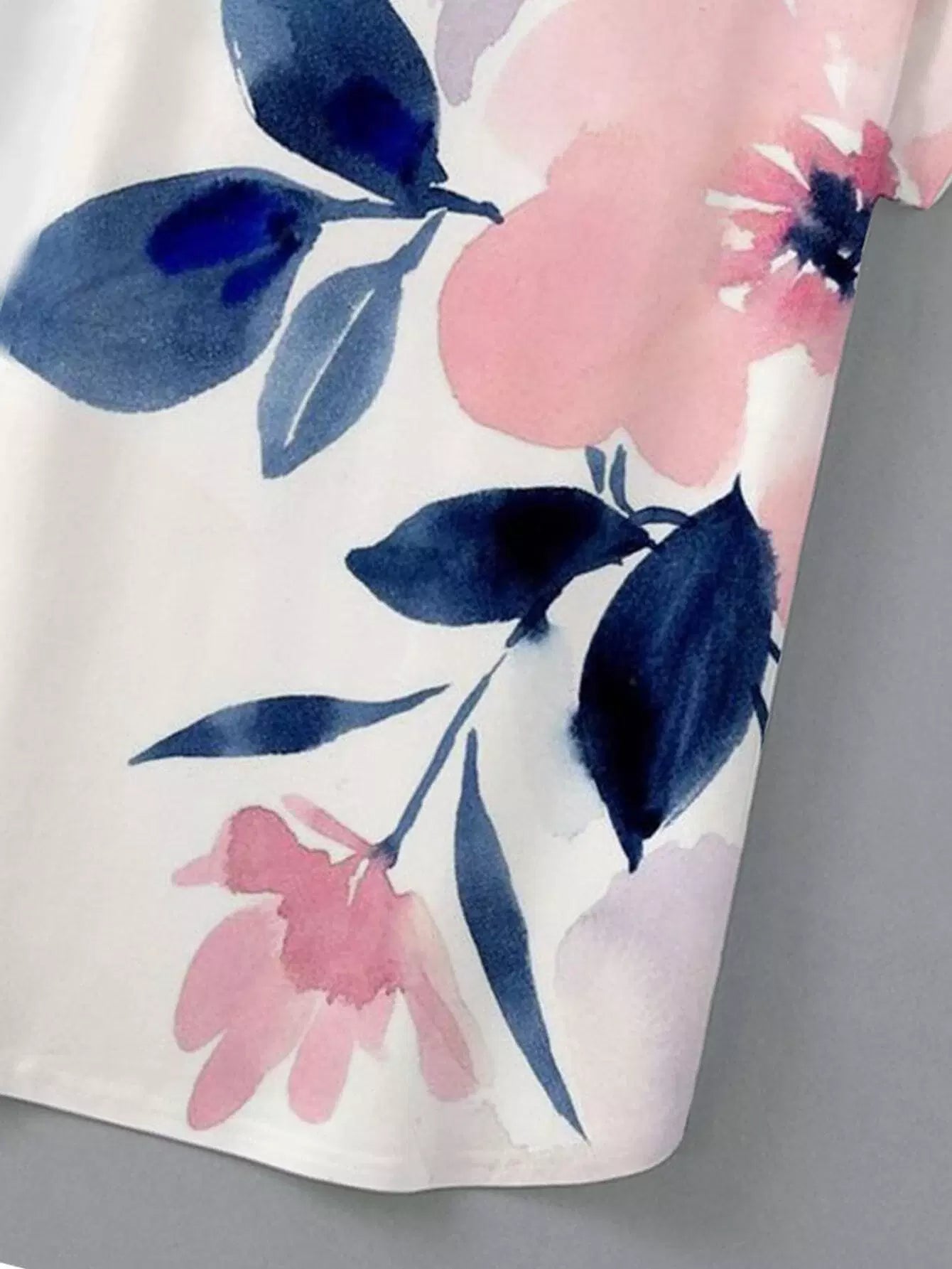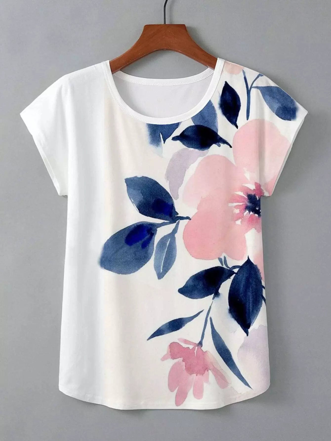 تي شيرت بأكمام بطبعة زهور بأكمام باتوينغ