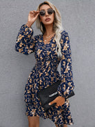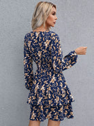 فستان بأكمام كشكش بطباعة زهور على الخصر بطباعة زهور بأكمام كشكش