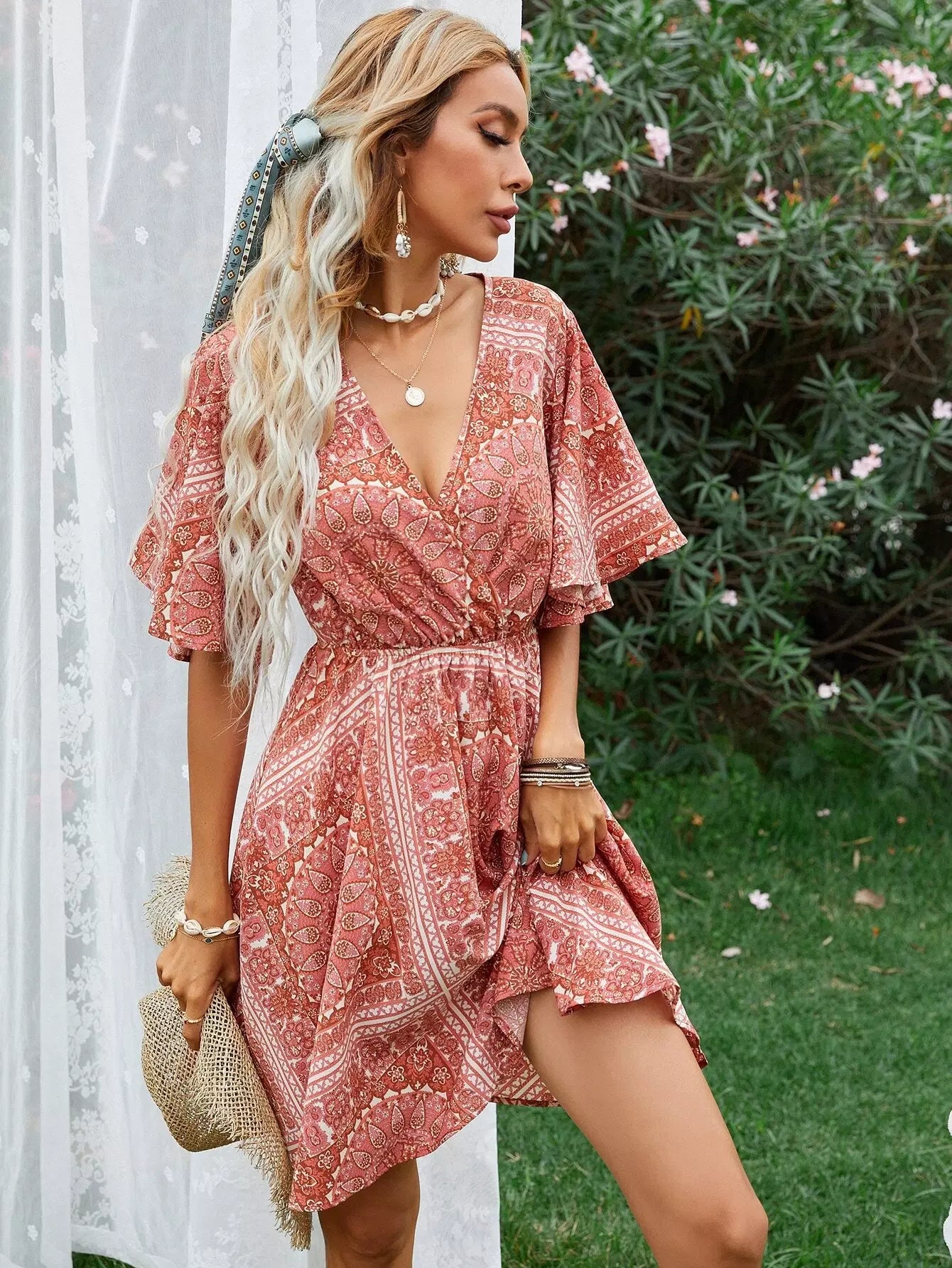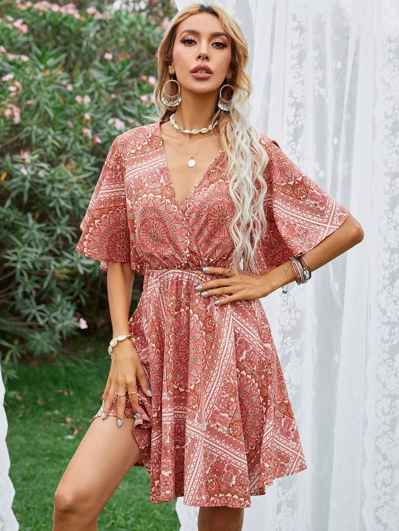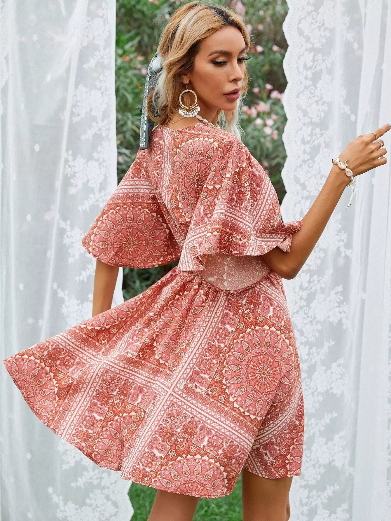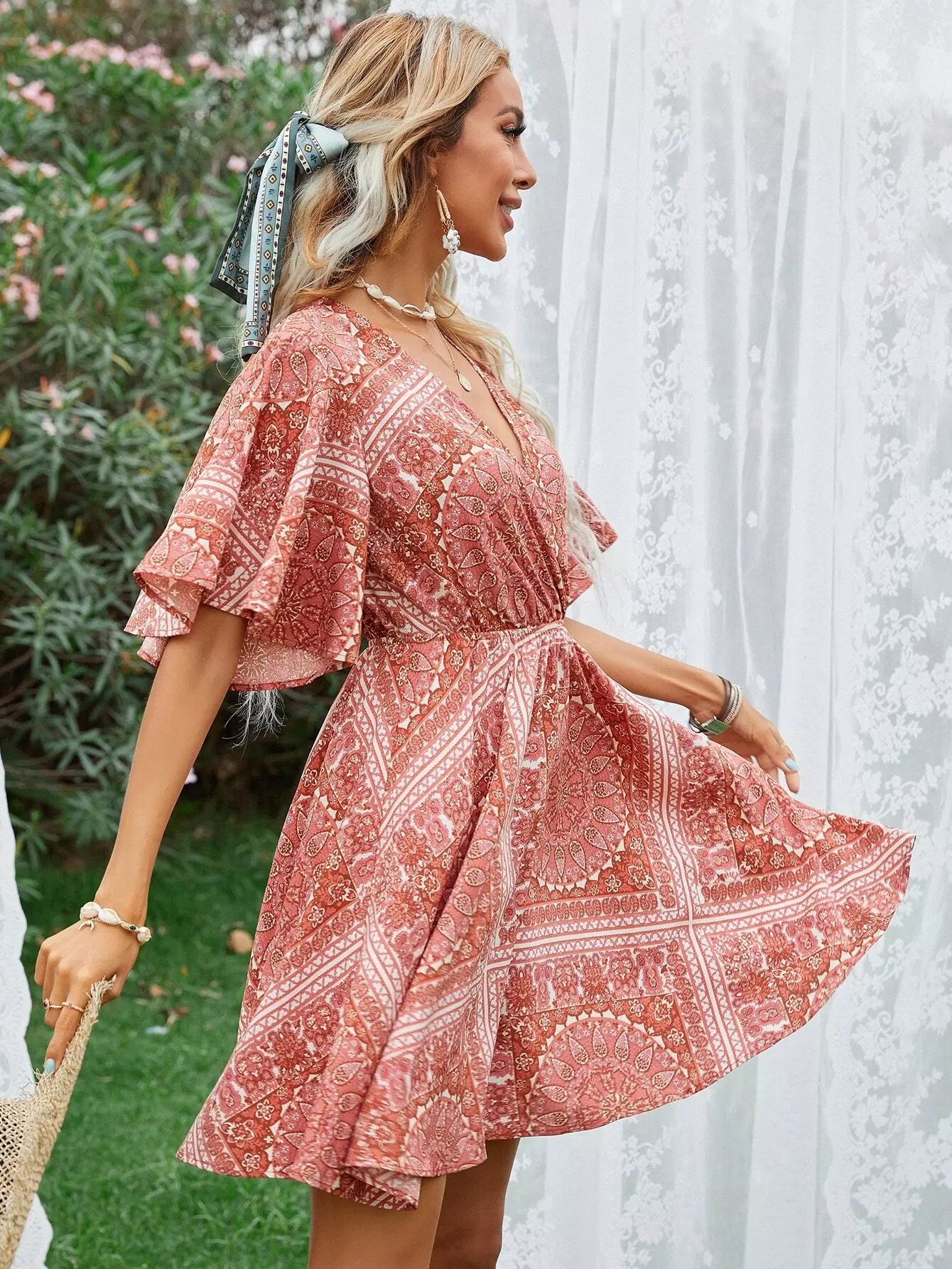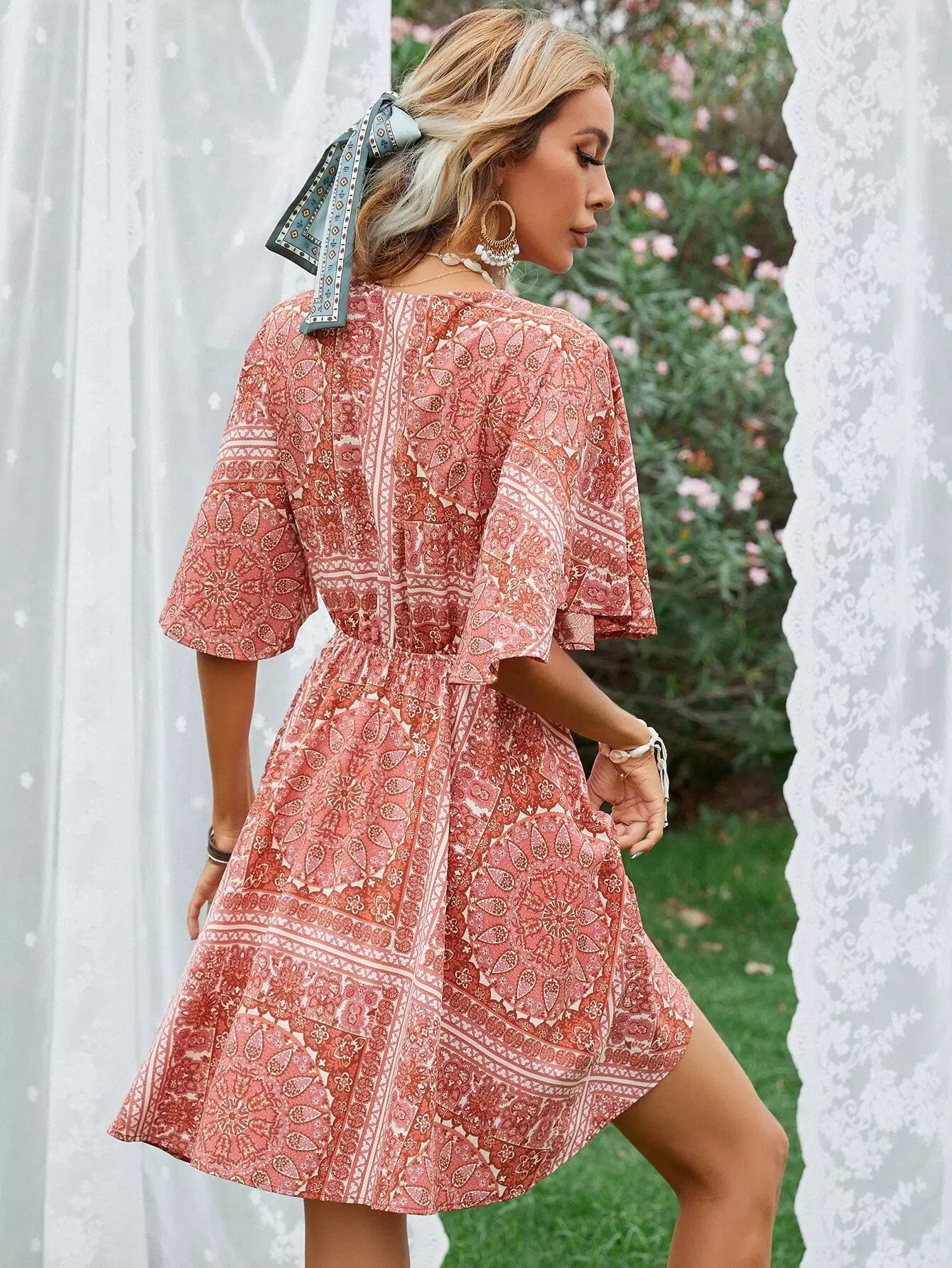 فستان ملفوف بطبعة زهور على شكل حرف A
