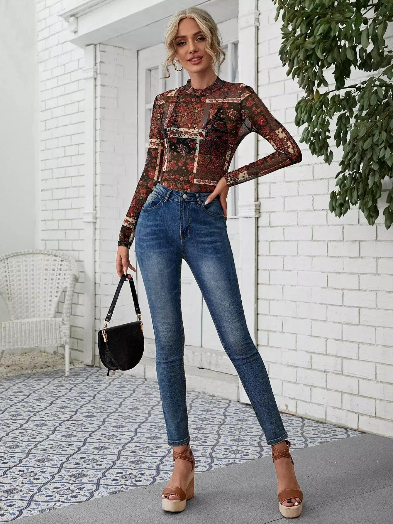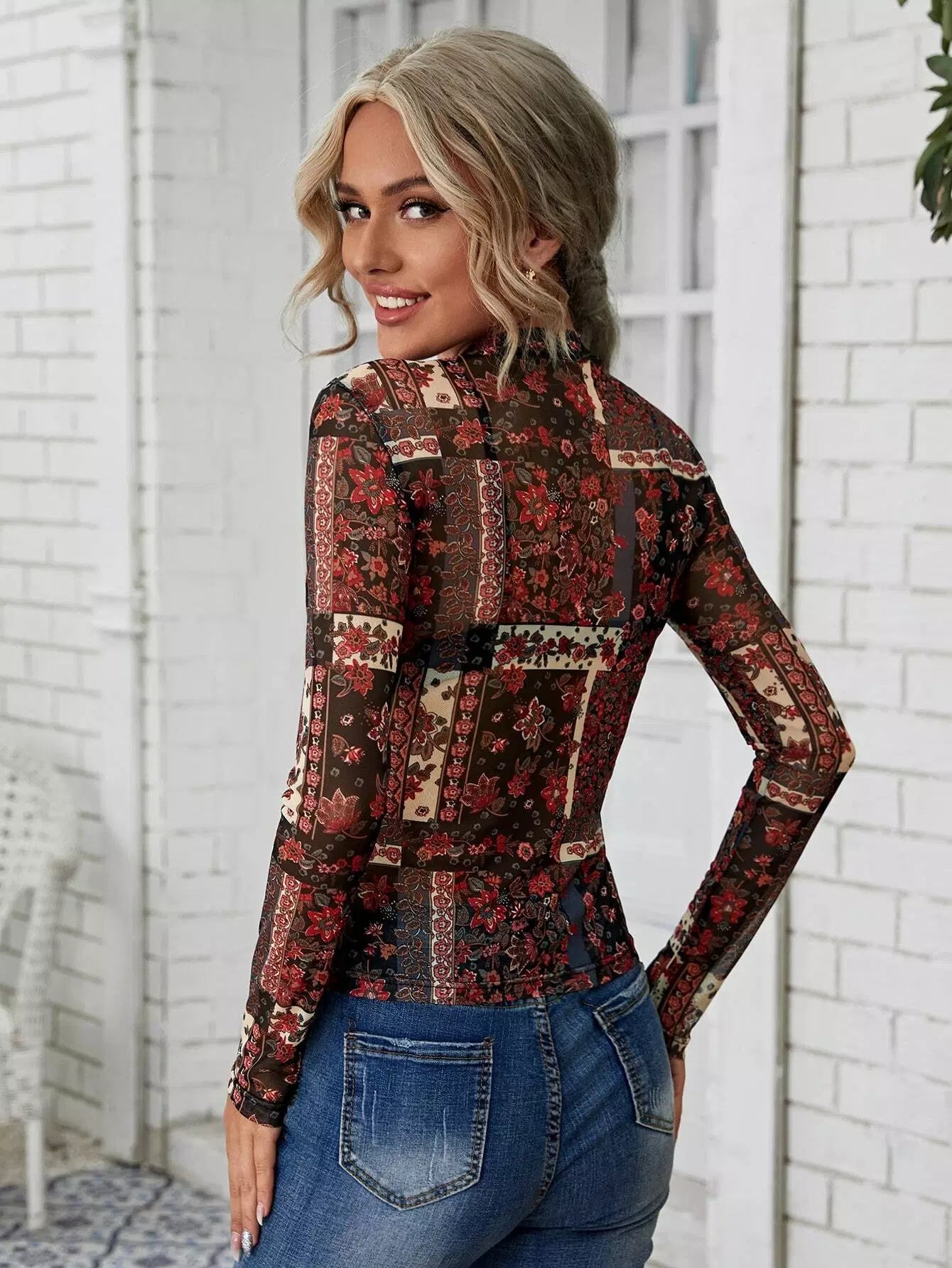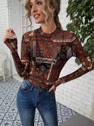 بلوزة شبكية شفافة زهرية بدون حمالة صدر