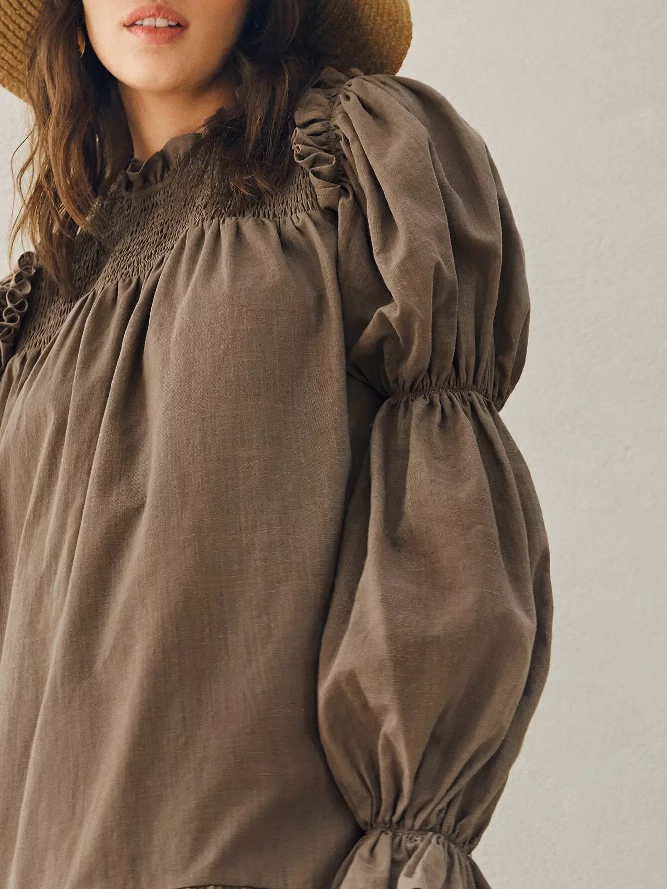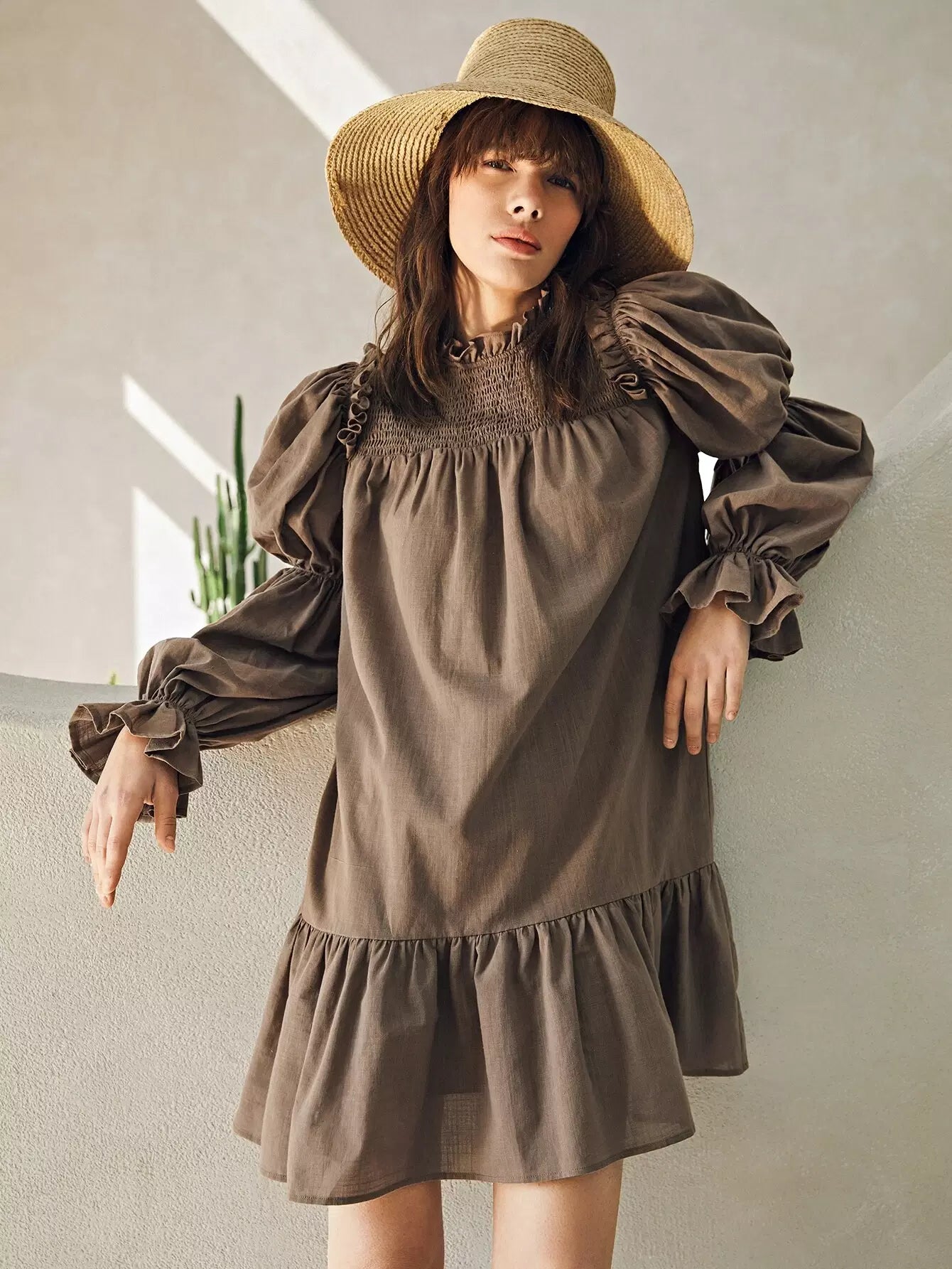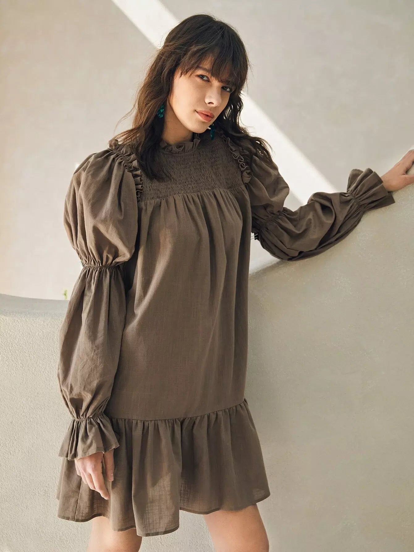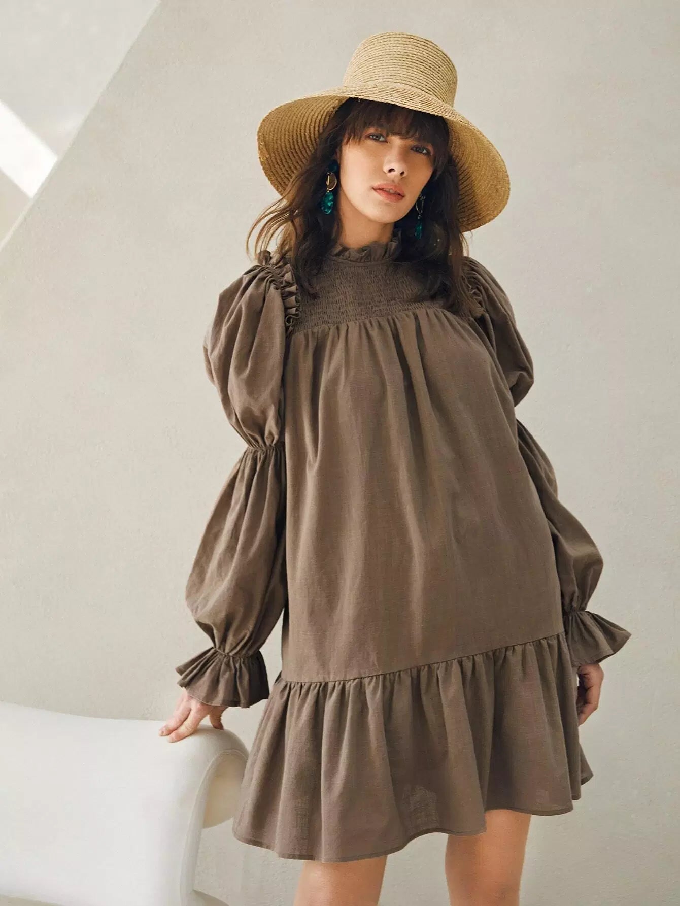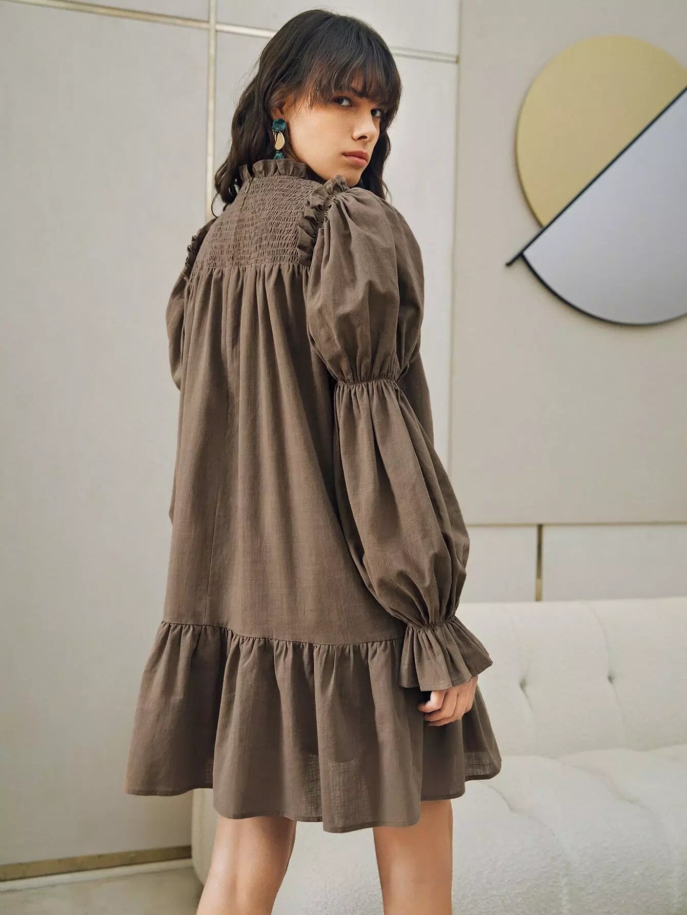 فستان بأكمام كشكش بأكمام كشكش مزين بشراشيب