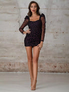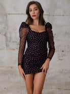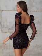 فستان بأكمام جيجوت جليتر على شكل قلب لامع مغطى بشبكة