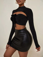 تي شيرت قصير لامع بفتحة رباط وحلقات معدنية