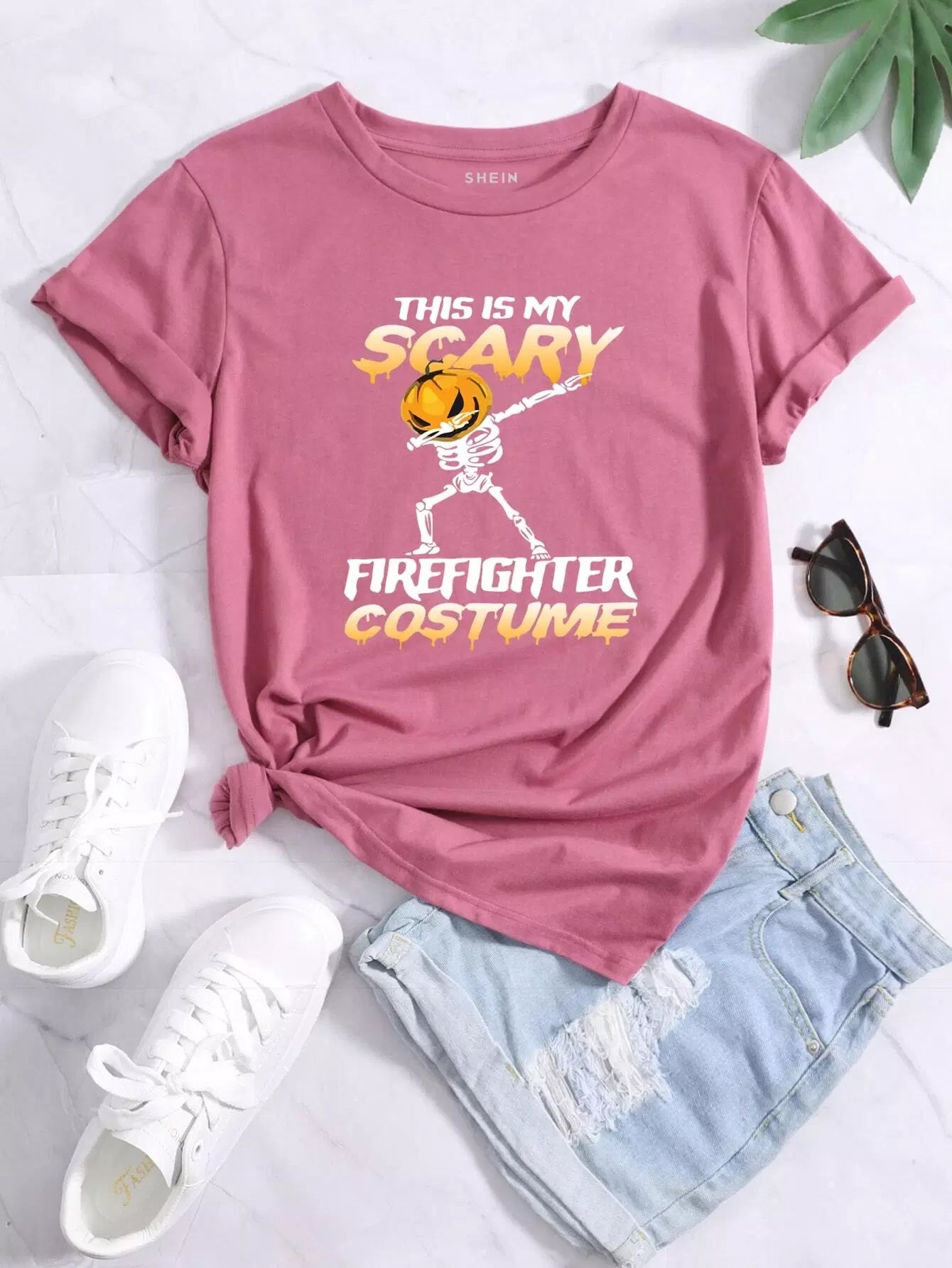 للنساء - تي شيرت برسومات الهالوين والشعار