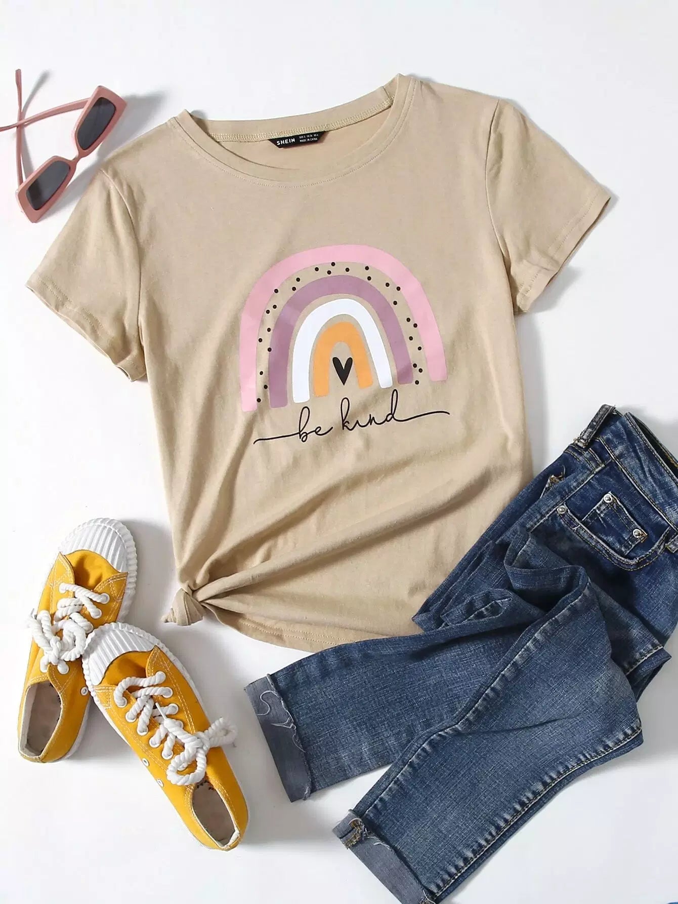 تي شيرت بتصميم قلب وشعار جرافيك