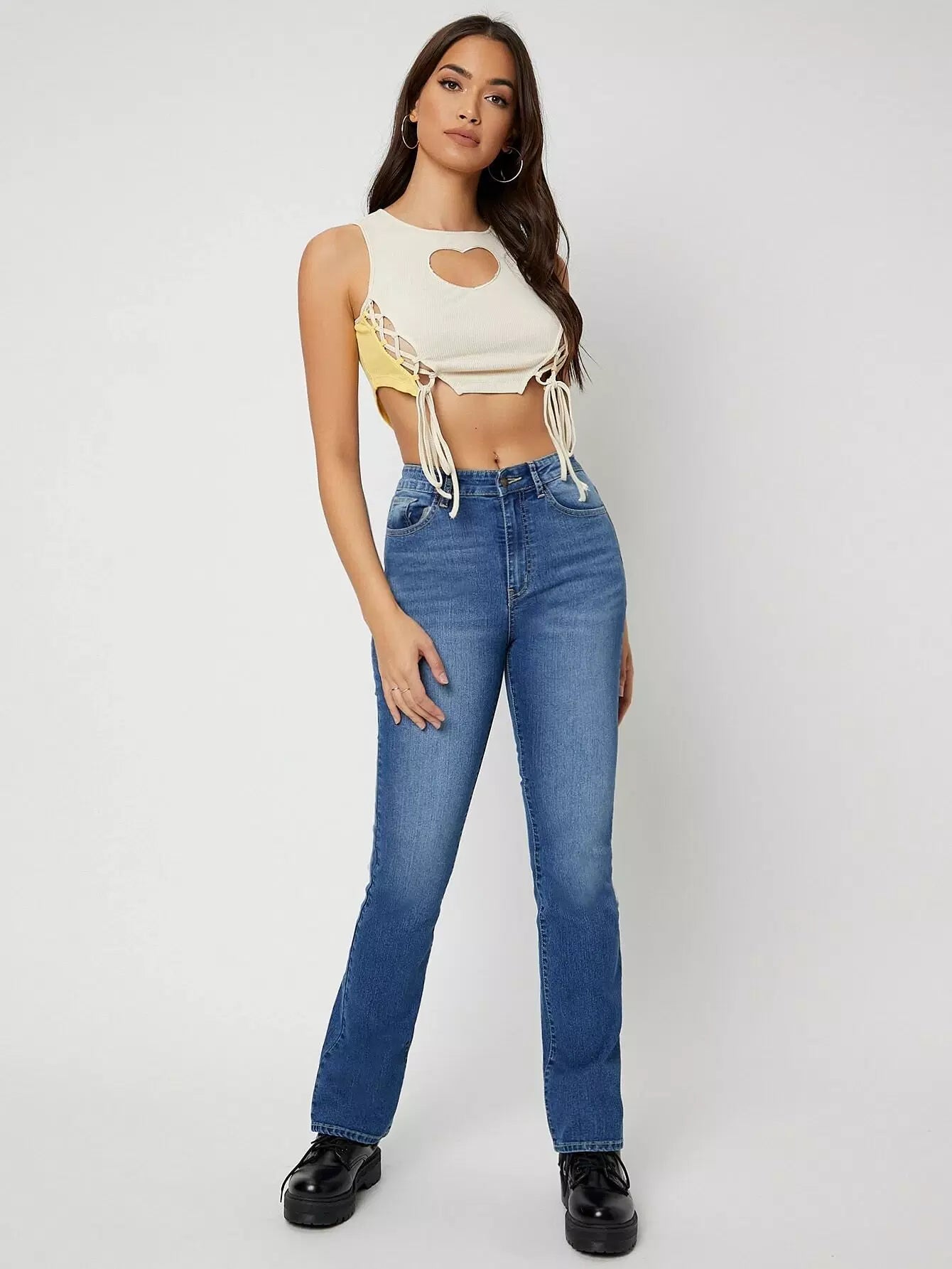 بنطلون جينز بقصّة الحذاء العالي التمدد