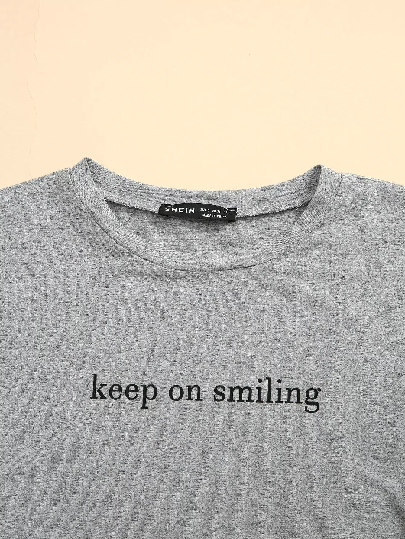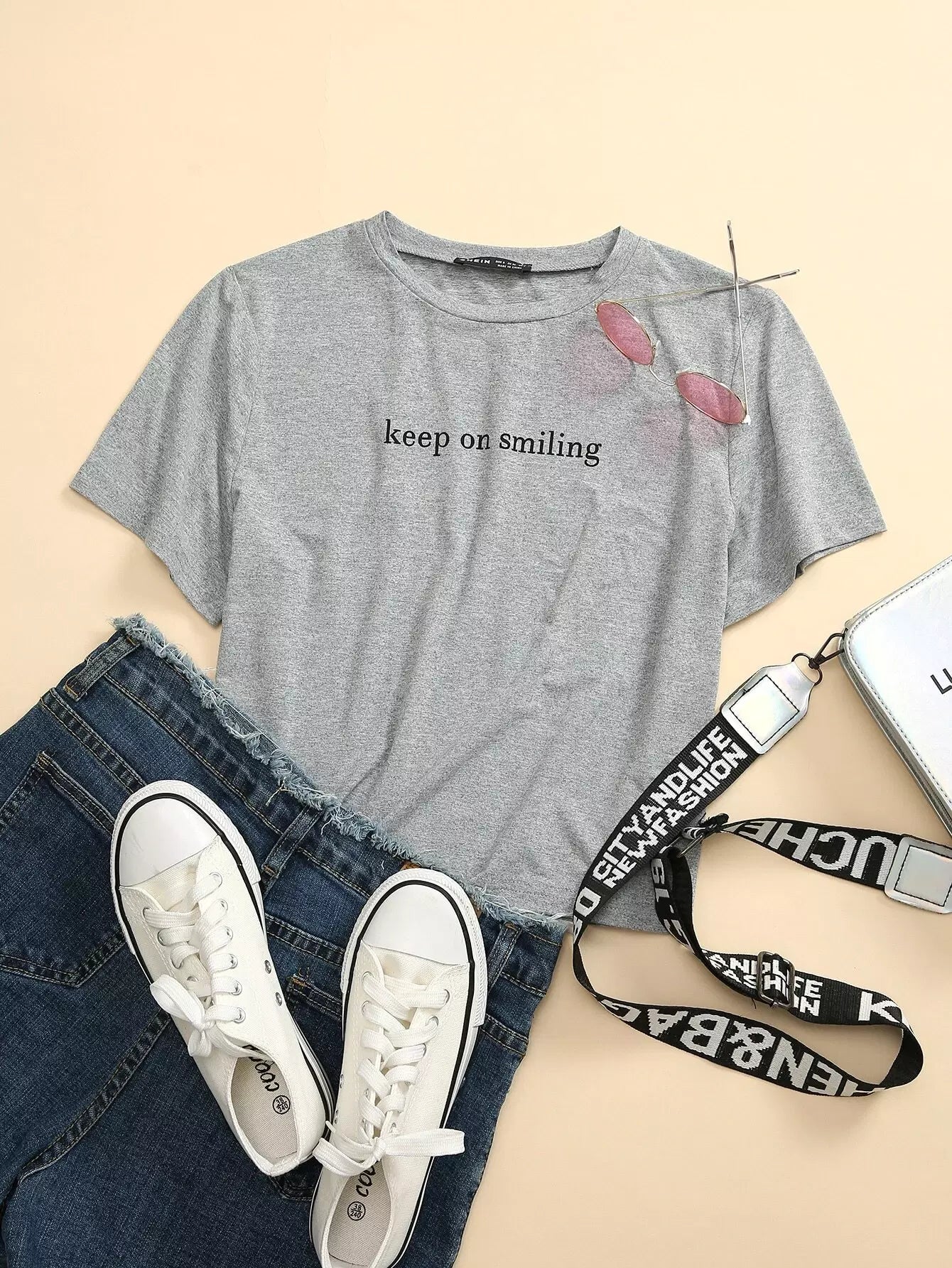 تي شيرت قصير بتصميم جرافيك جرافيك مبتسم