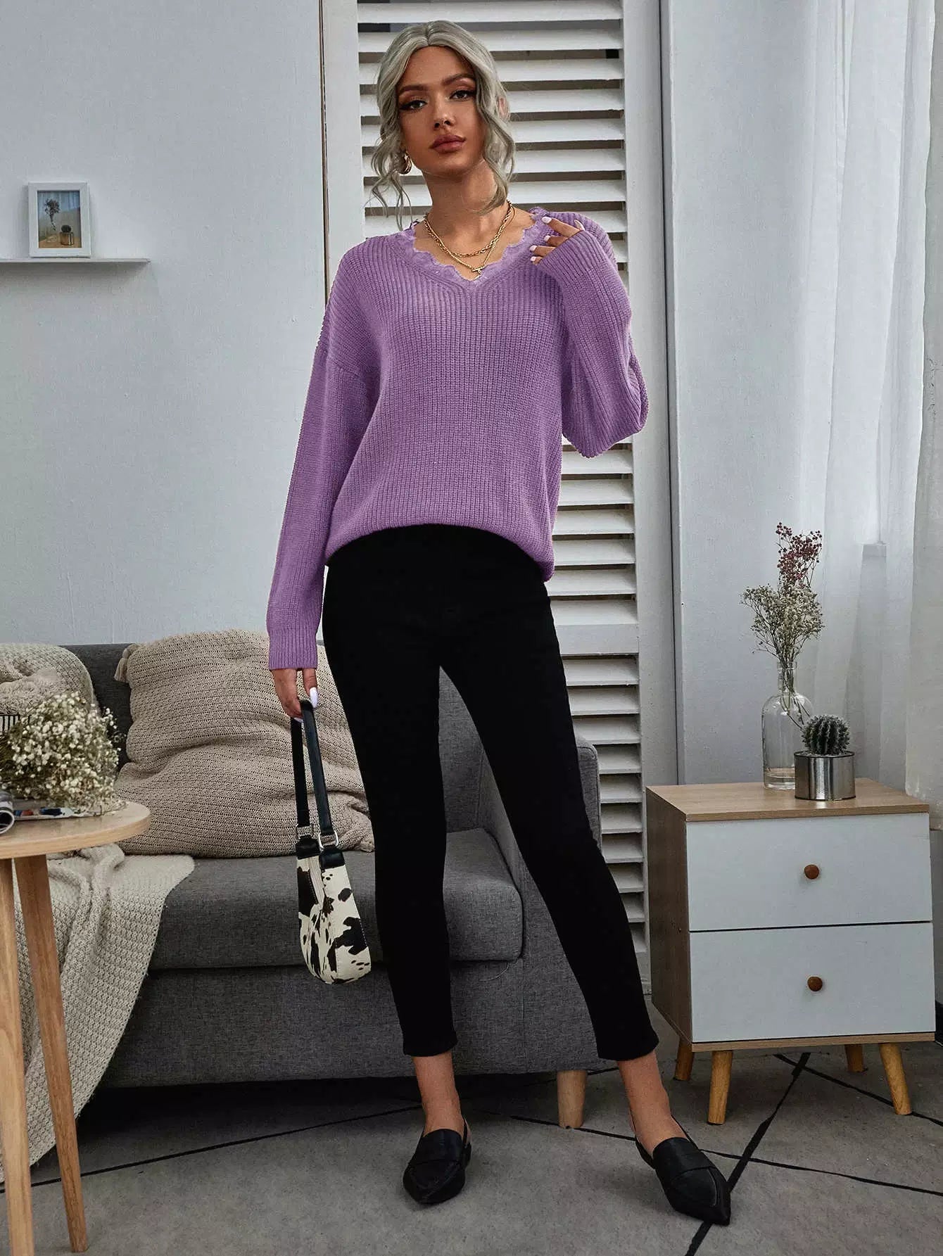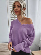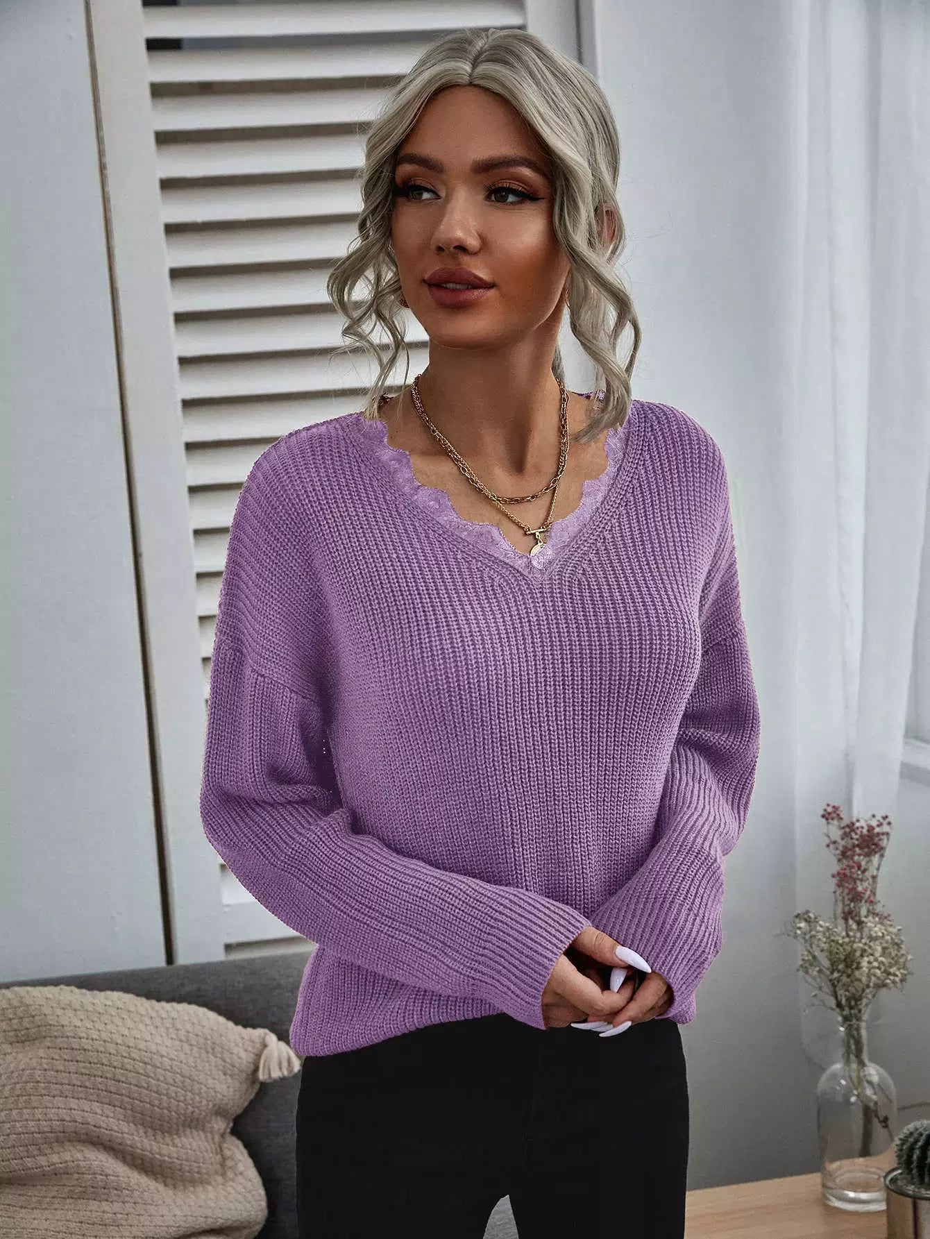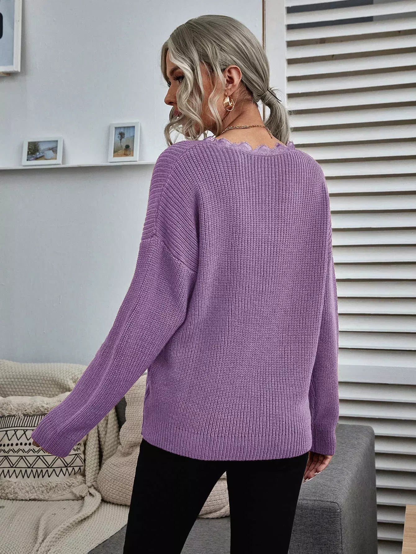 سترة منسدلة الكتفين بحواف من الدانتيل محبوكة منسدلة الكتفين