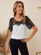 النساء - بلوزة منقطة من الدانتيل