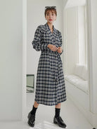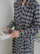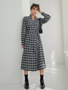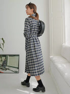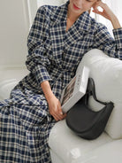فستان منقوش بياقة طية صدر السترة بدون حزام