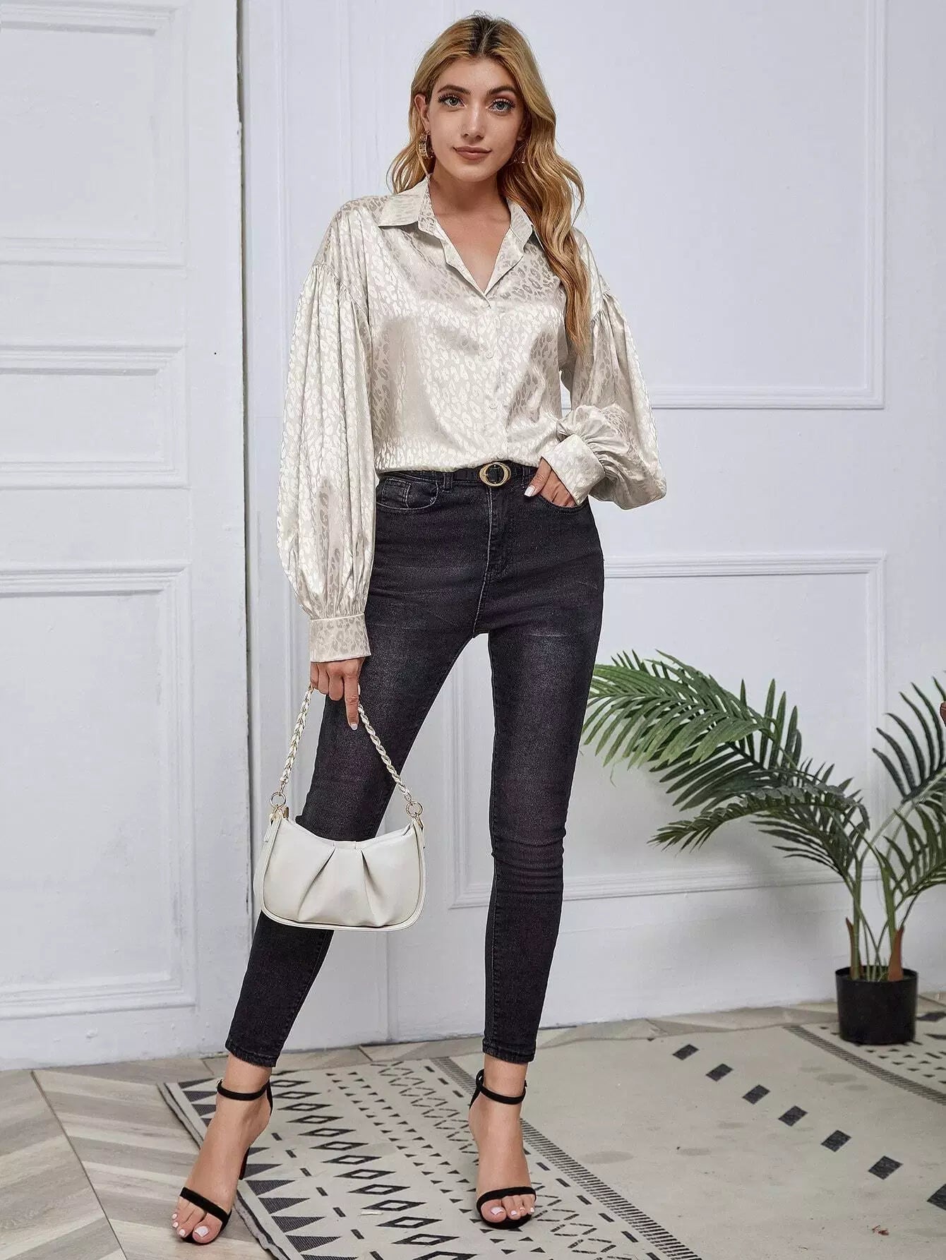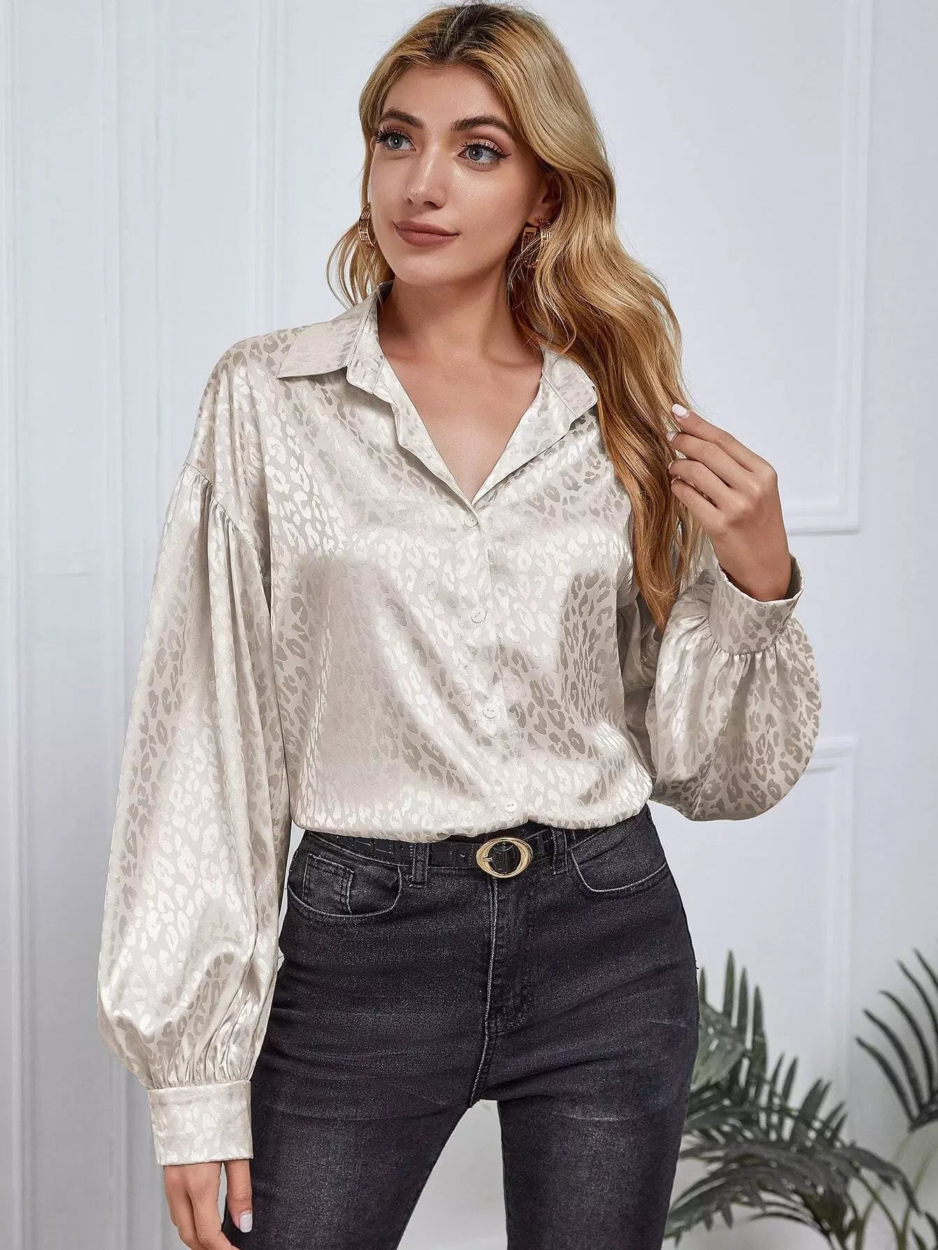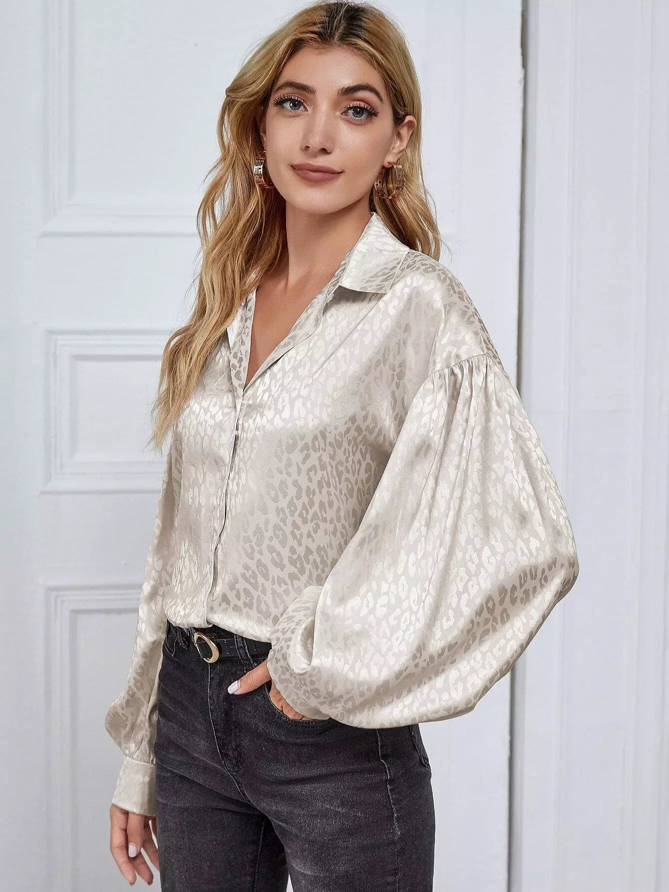 النساء - قميص بأكمام فانوس الفهد