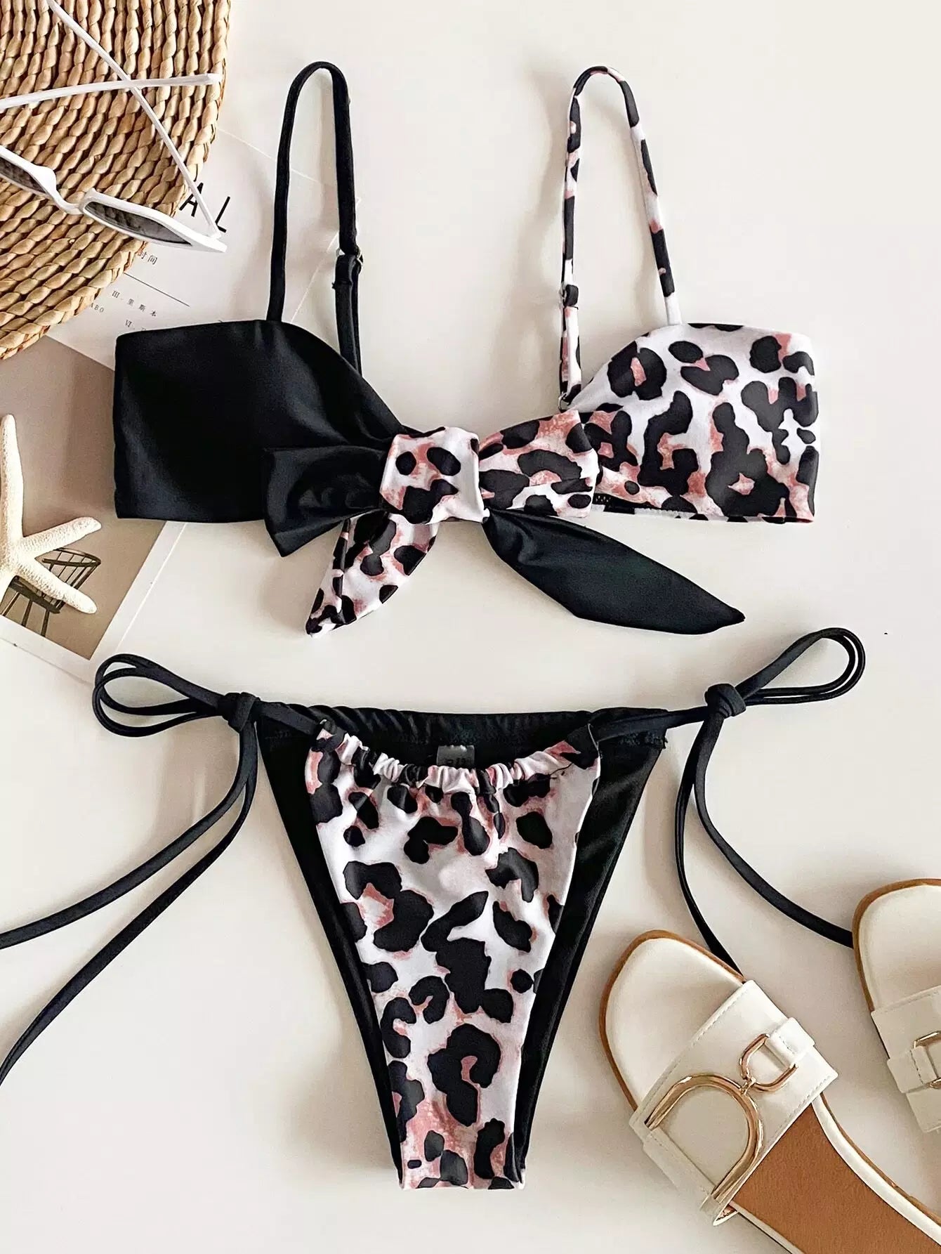 بدلة سباحة بيكيني مطبوع عليها عقدة جلد النمر
