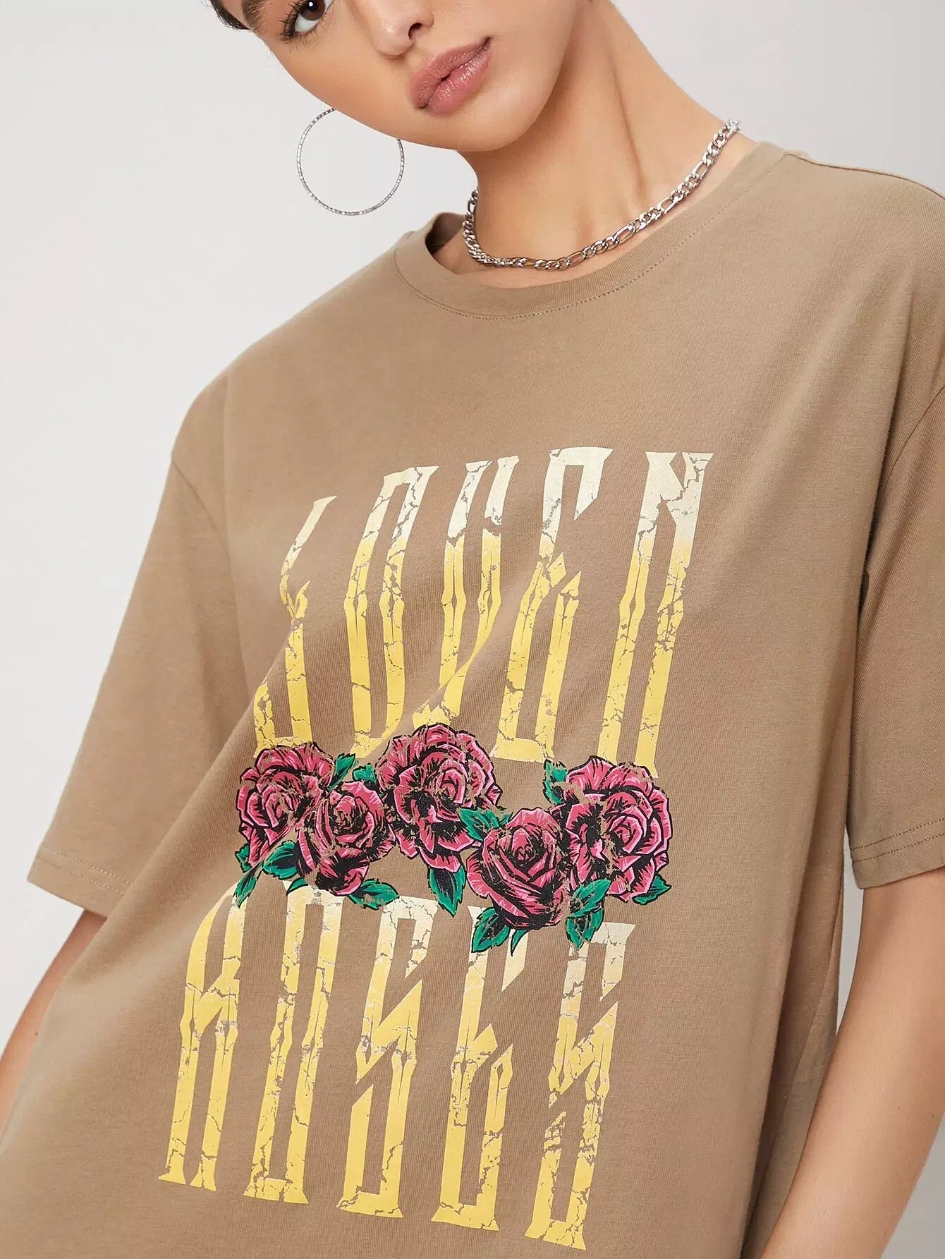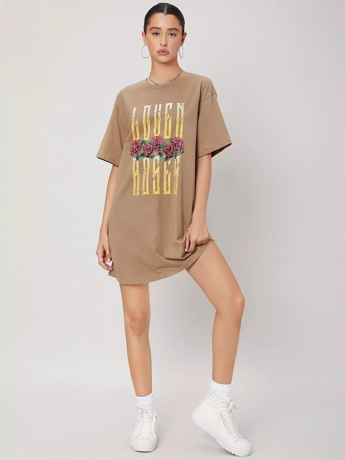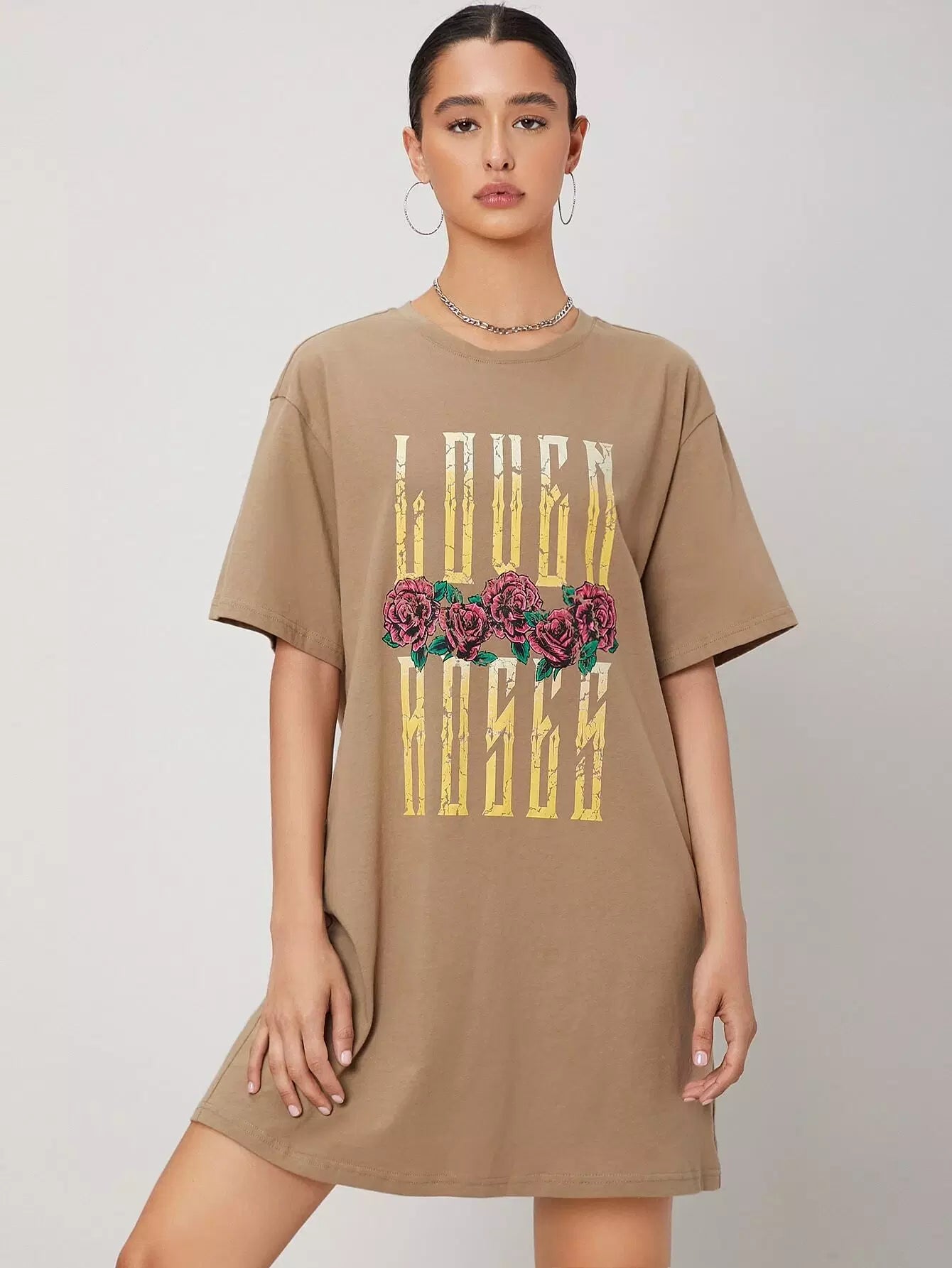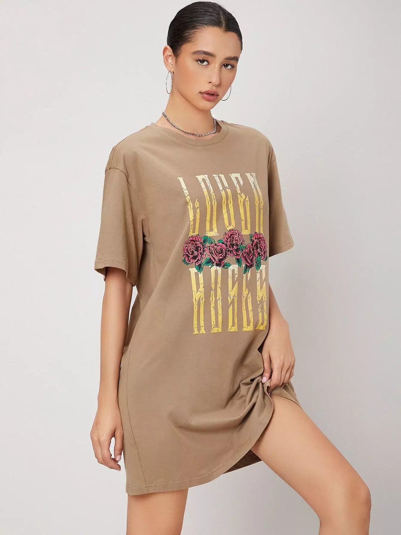 فستان بحروف ونقوش الزهور