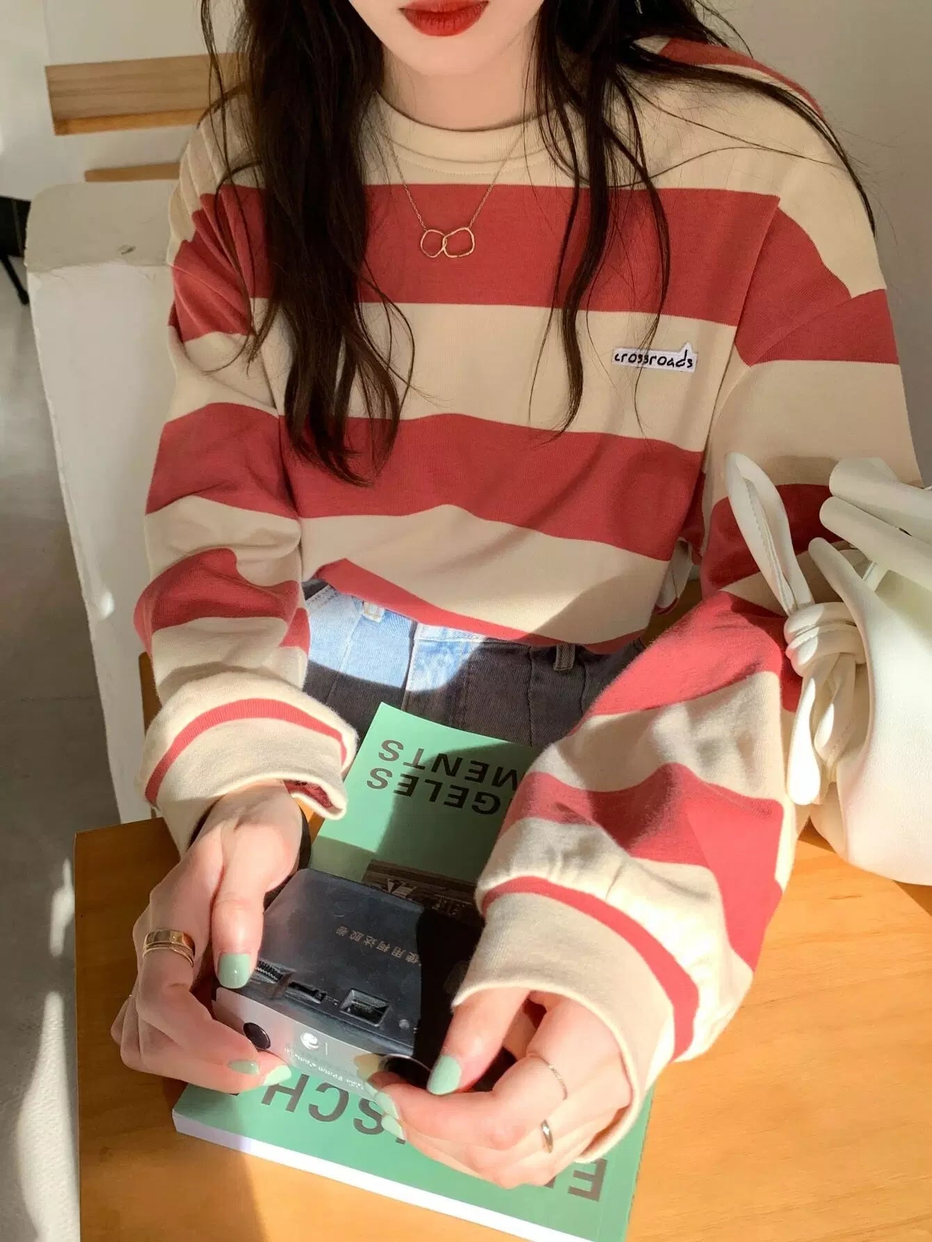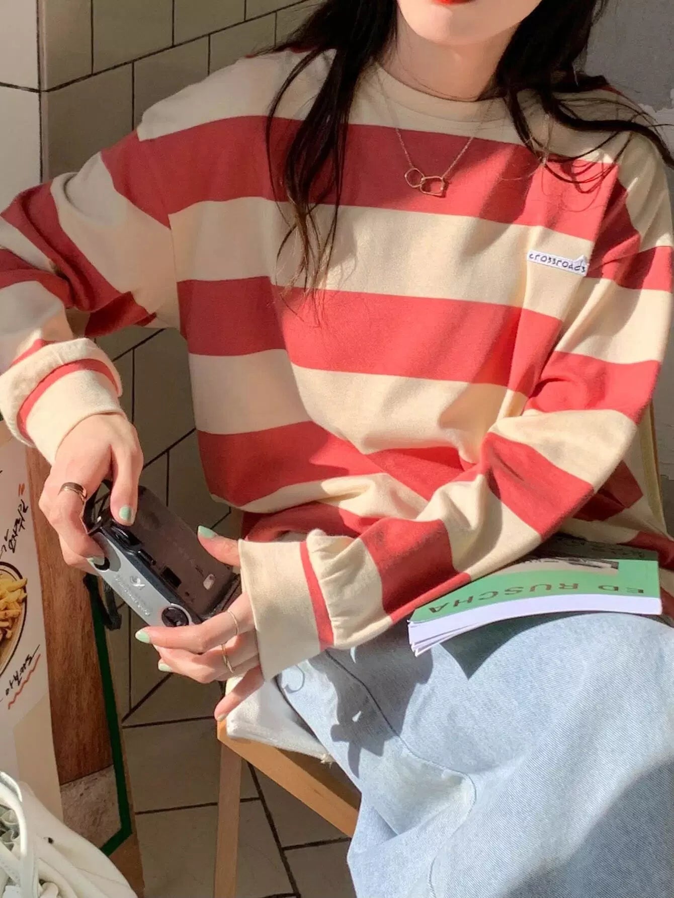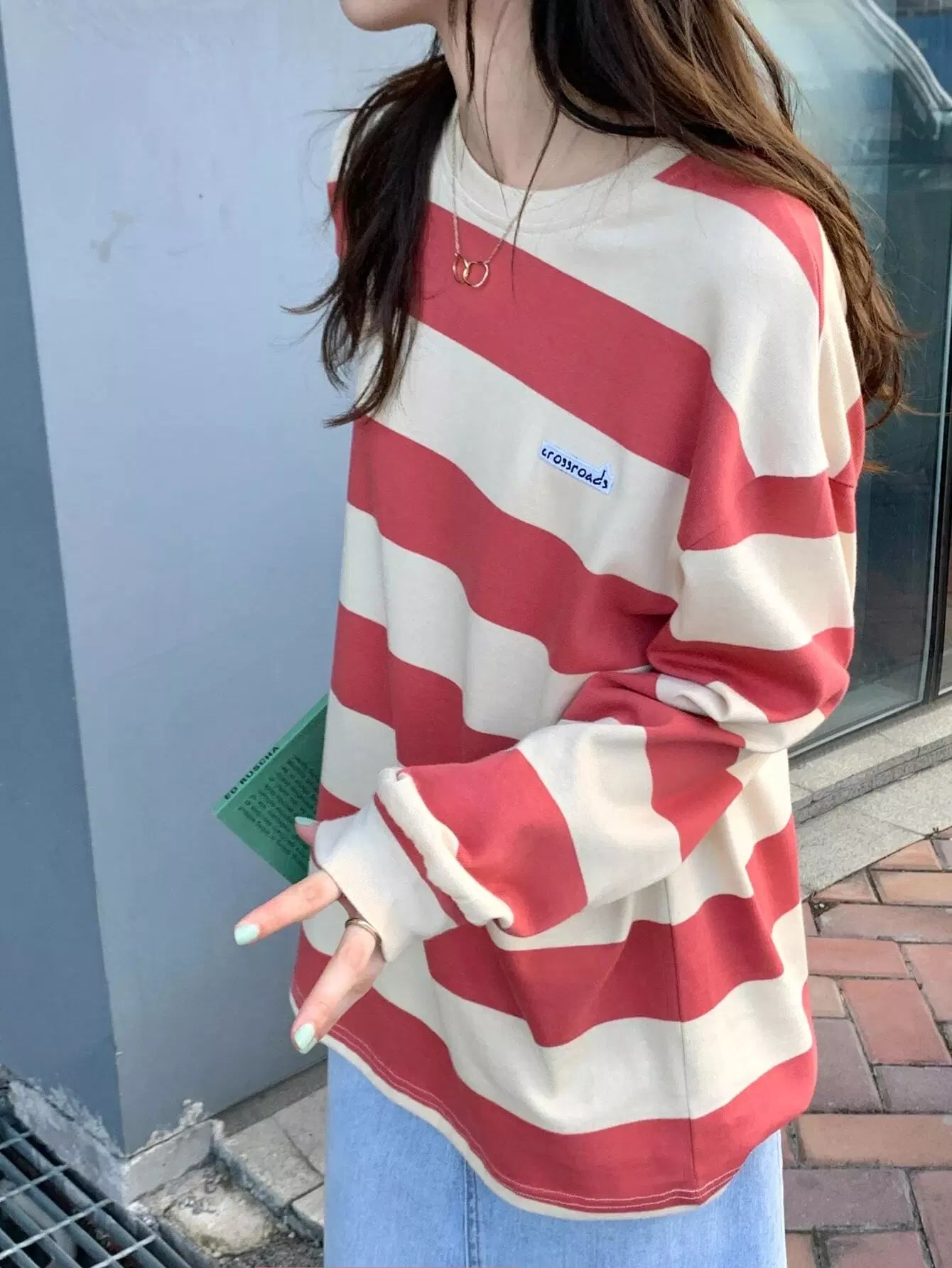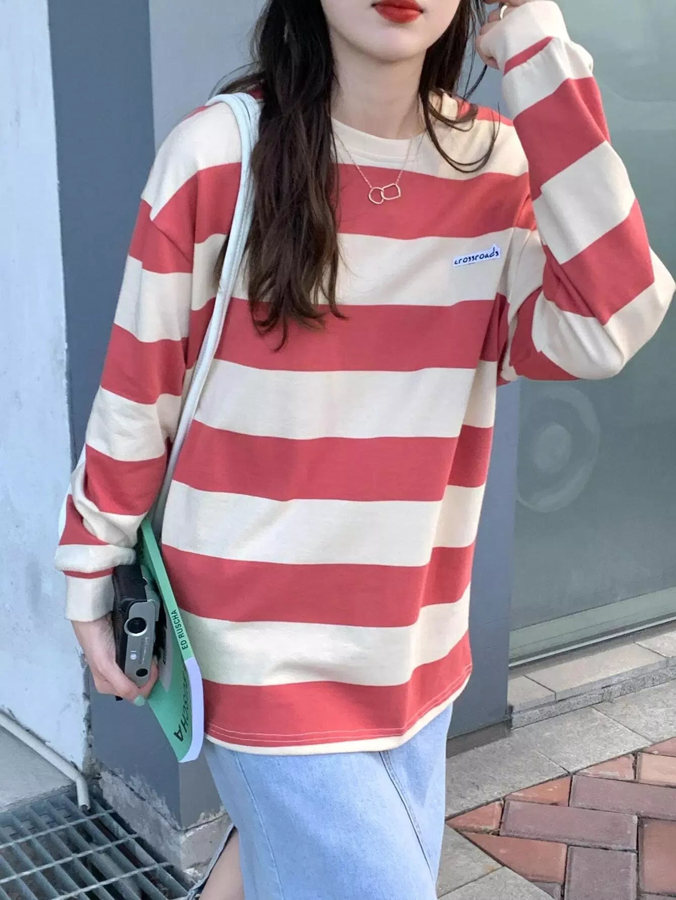 تي شيرت مخطط ومطرز بأحرف مرقعة