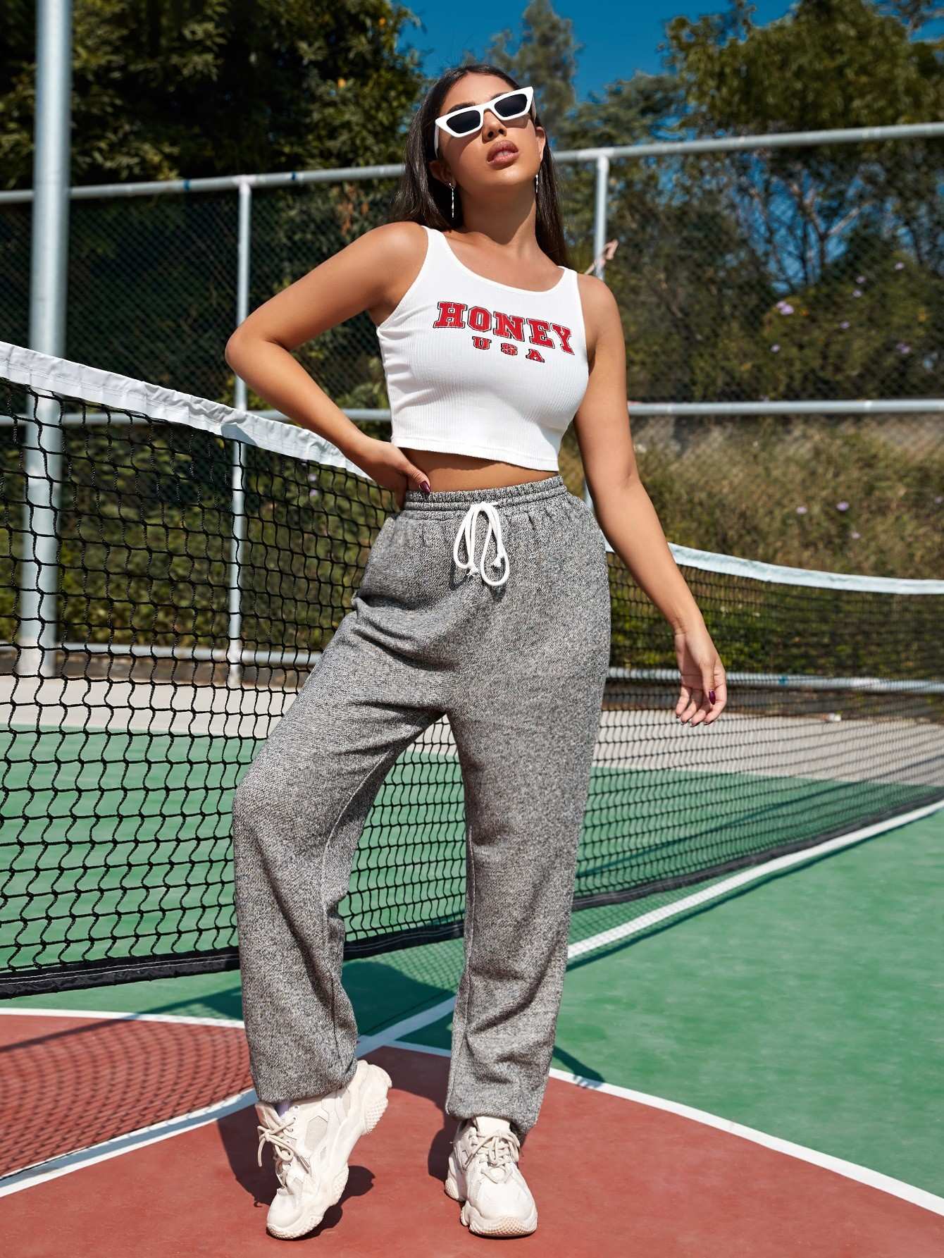 للنساء - تيشيرت بدون أكمام برسومات الحروف