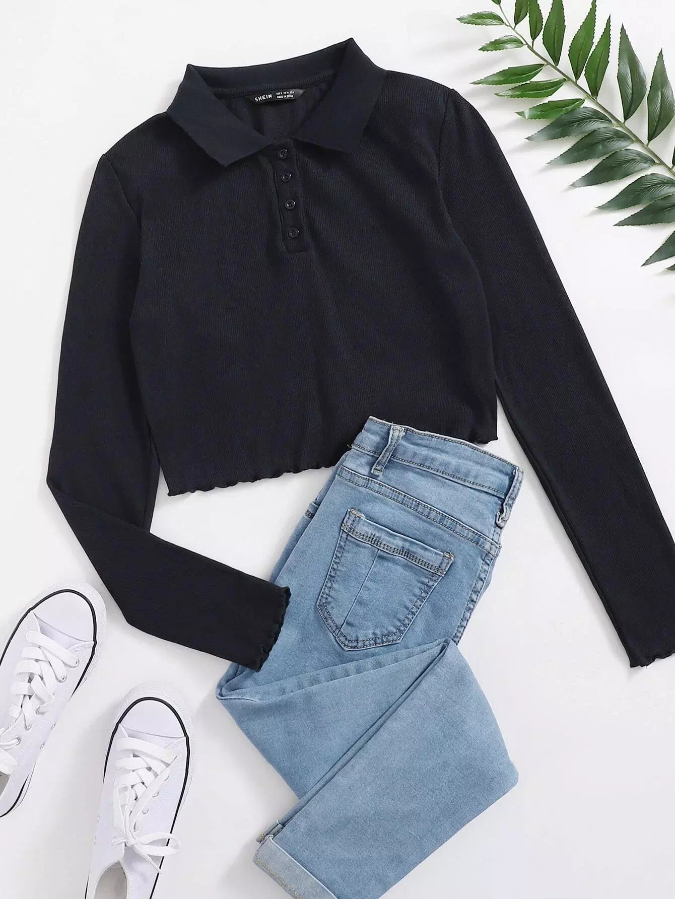 بلوزة بولو محبوكة مزينة بالخس