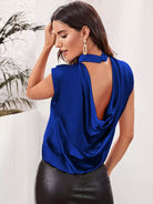 بلوزة برقبة وهمية مكشوفة منسدلة من الخلف برقبة وهمية