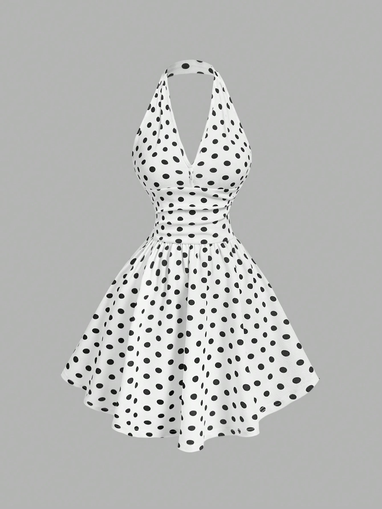 فستان نسائي ضيق من MOD بفتحة رقبة على شكل حرف V ومنقط من البولكا، فستان أسود لحفلات التخرج، أزياء مجوفة، نساء أنيقات