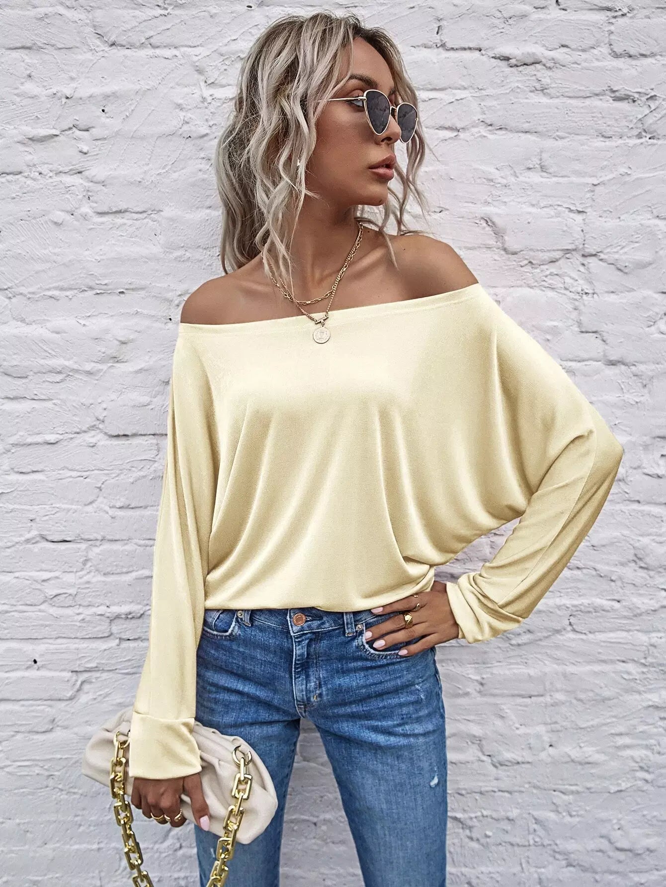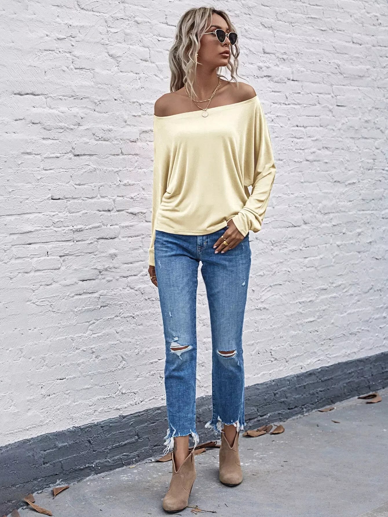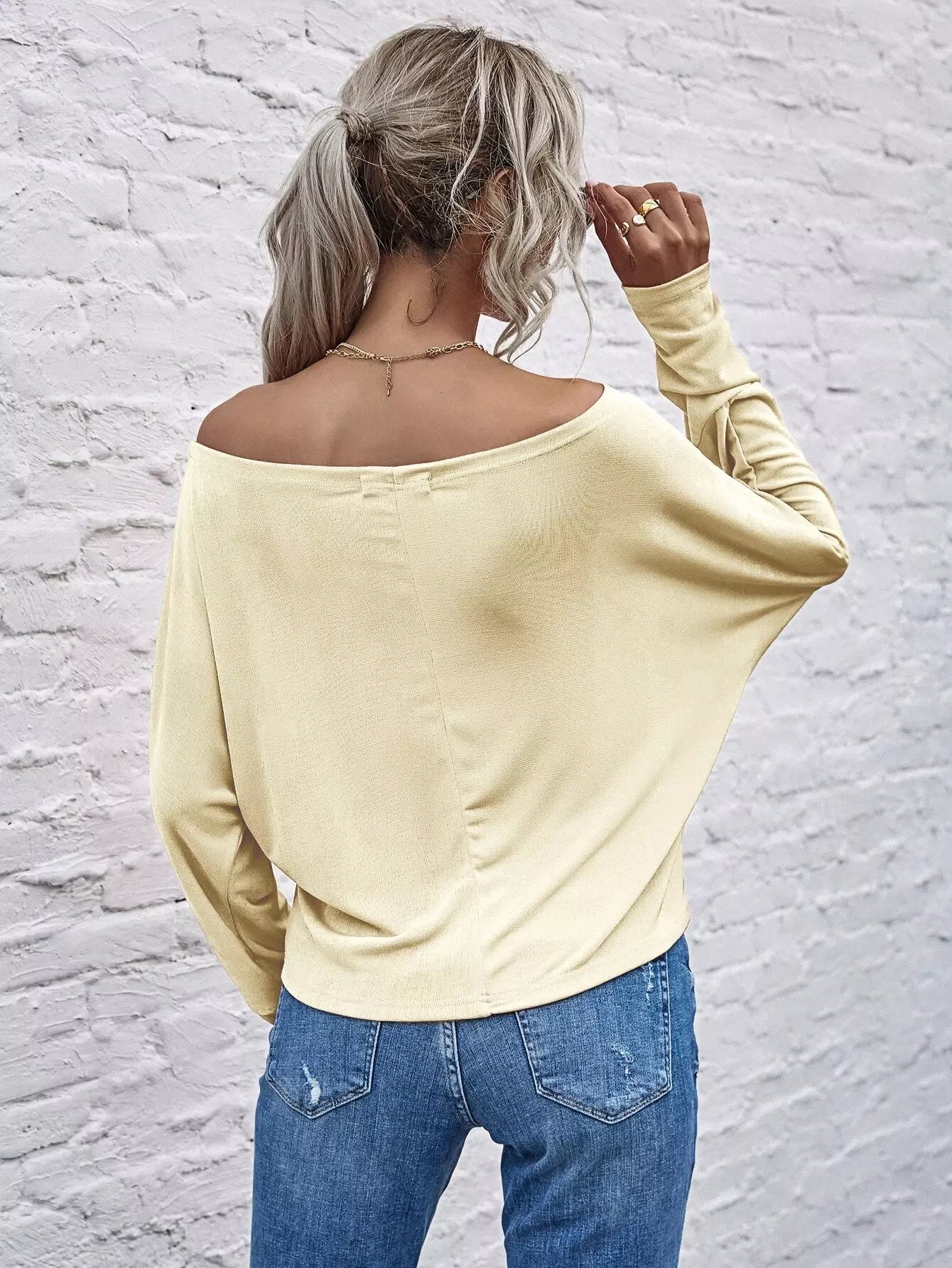تي شيرت بأكمام مكشوف الكتفين