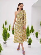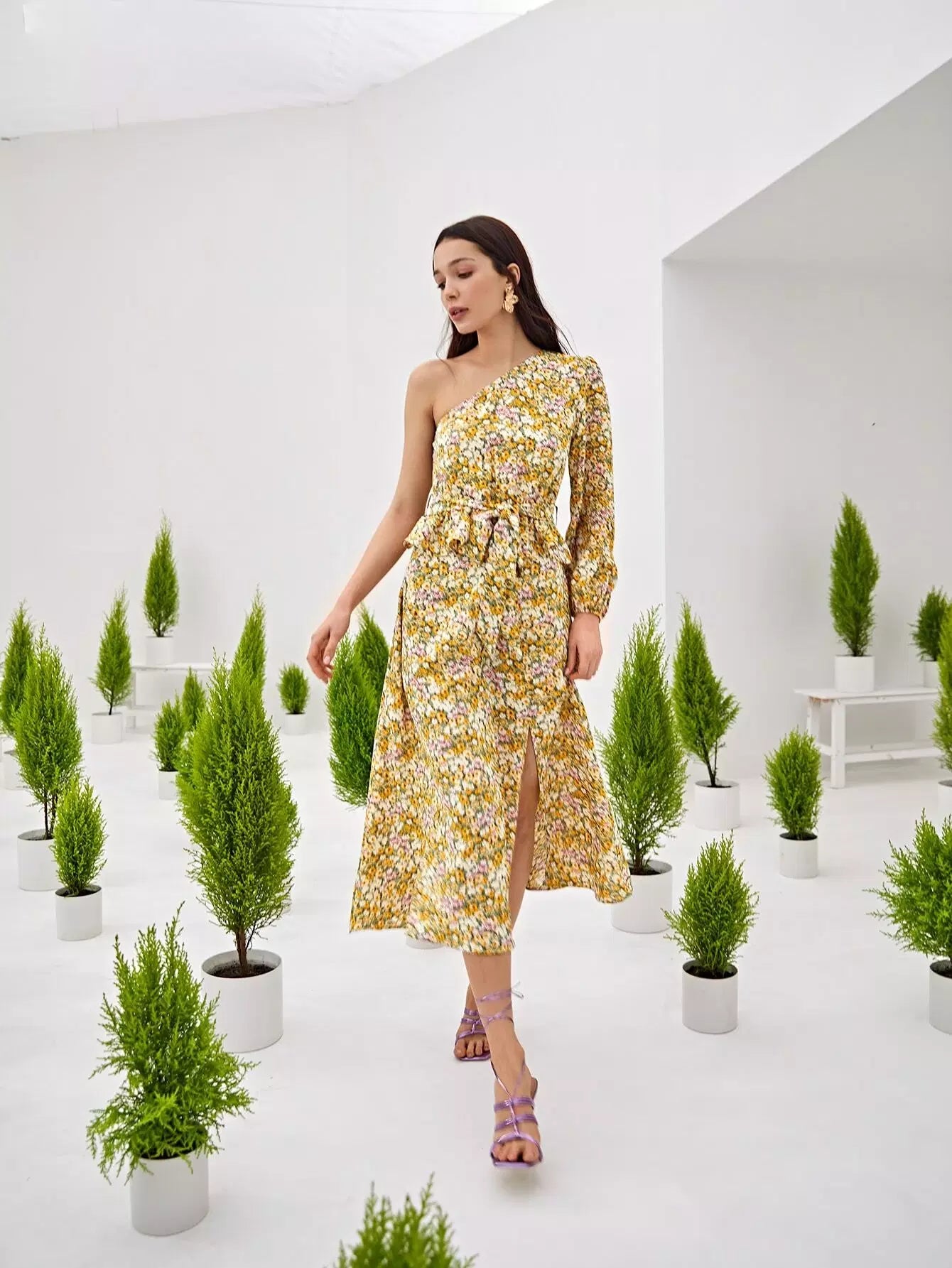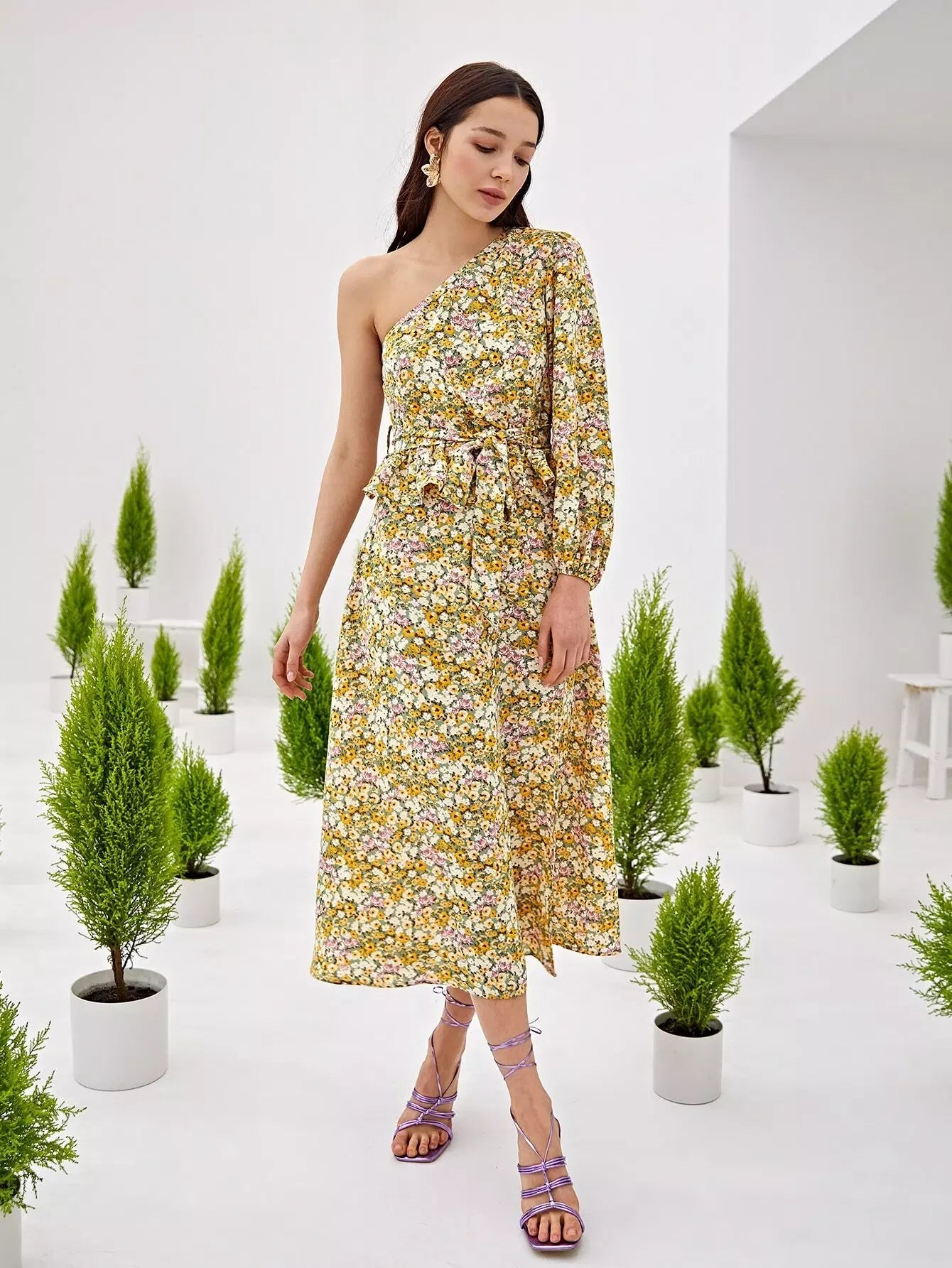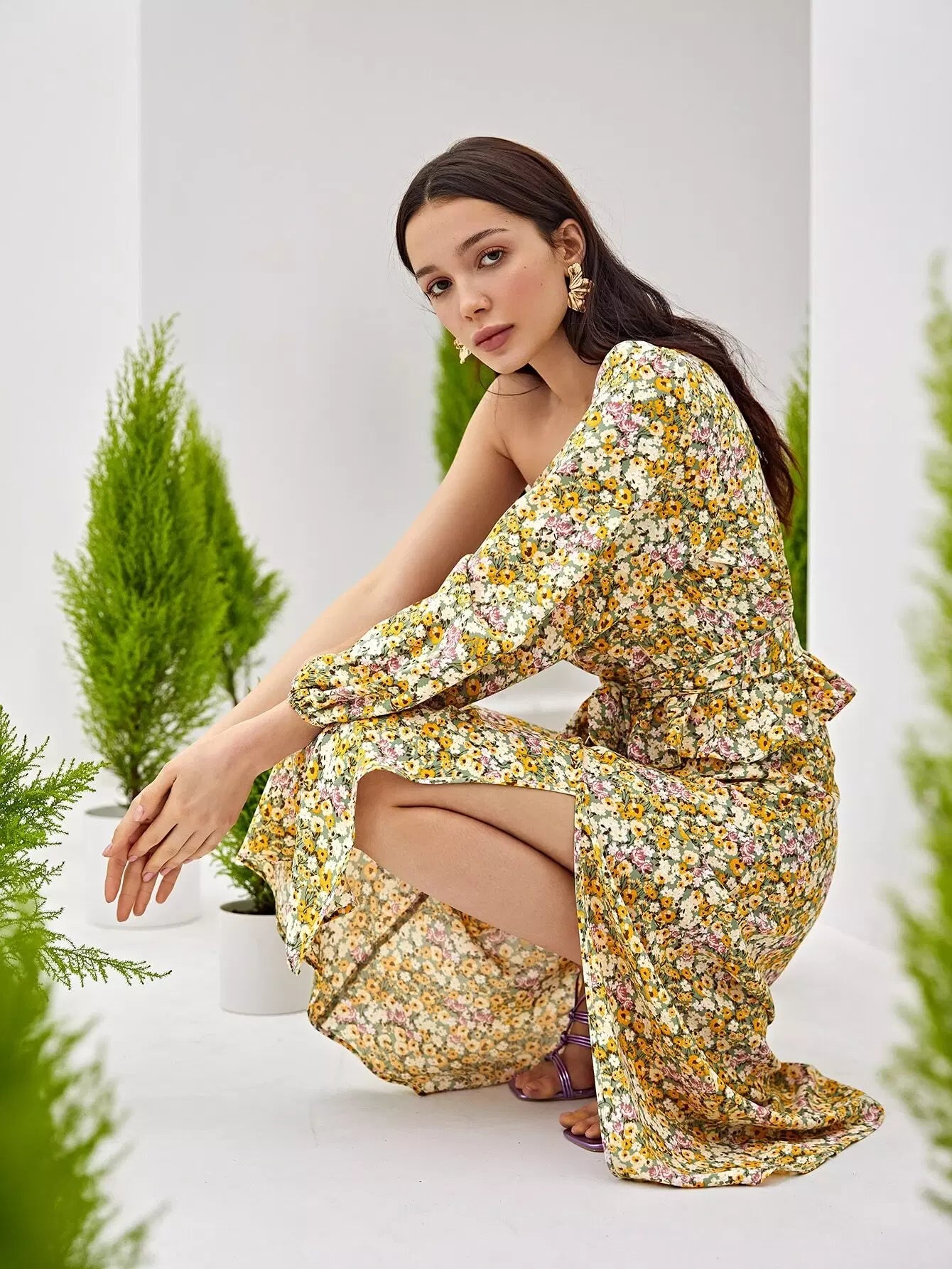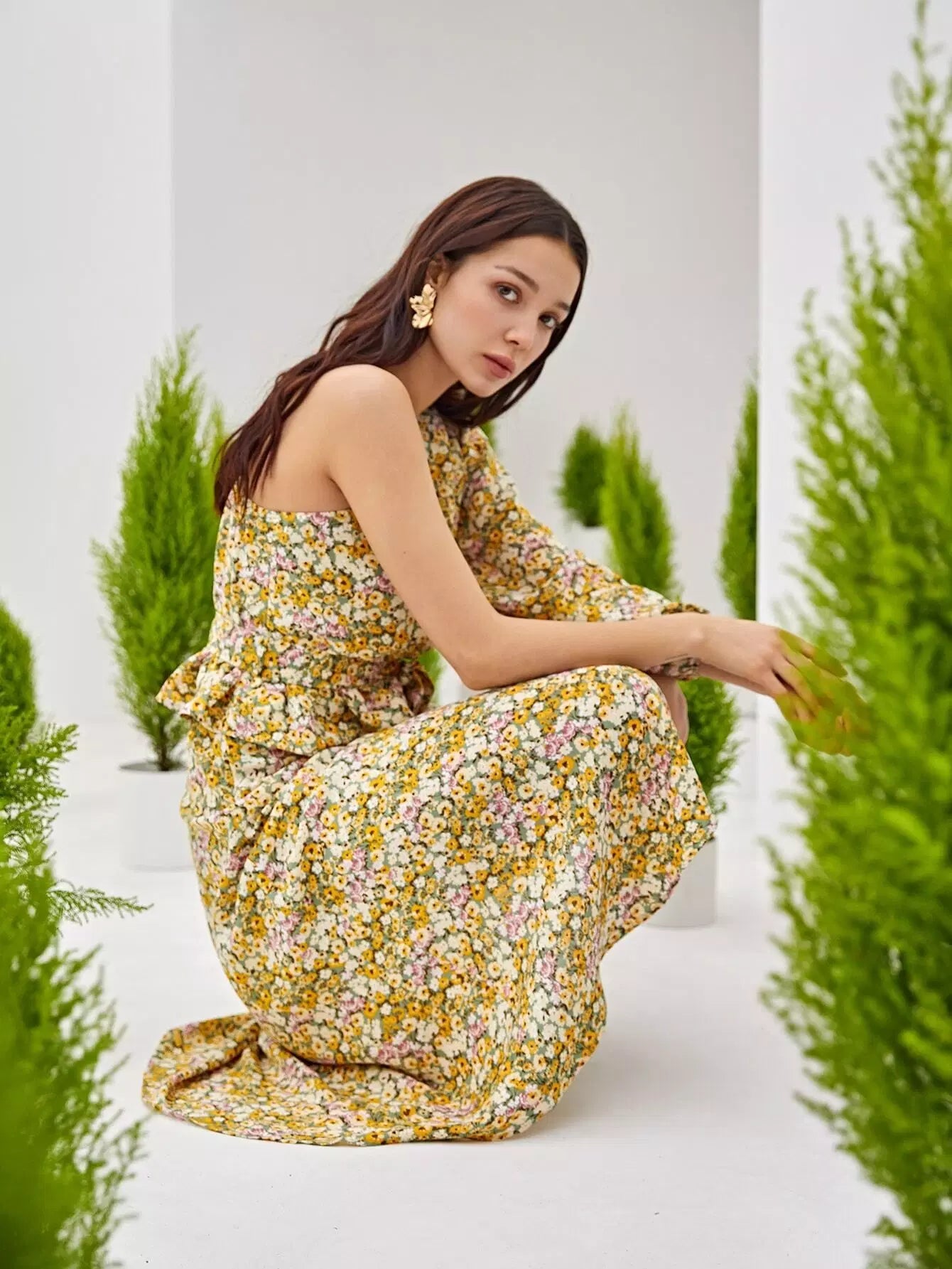 بلوزة بيبلوم زهرية بكتف واحد بدون حزام