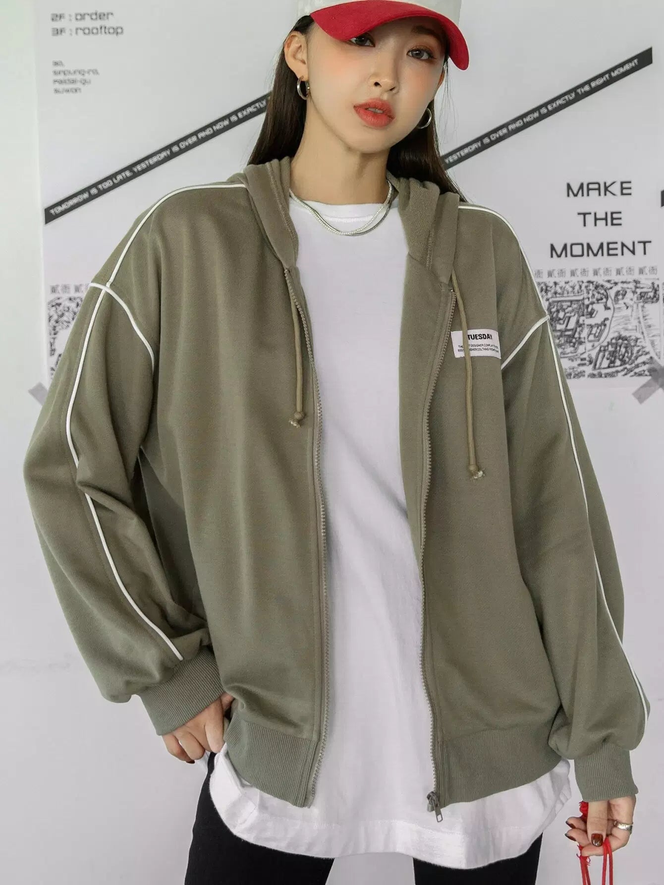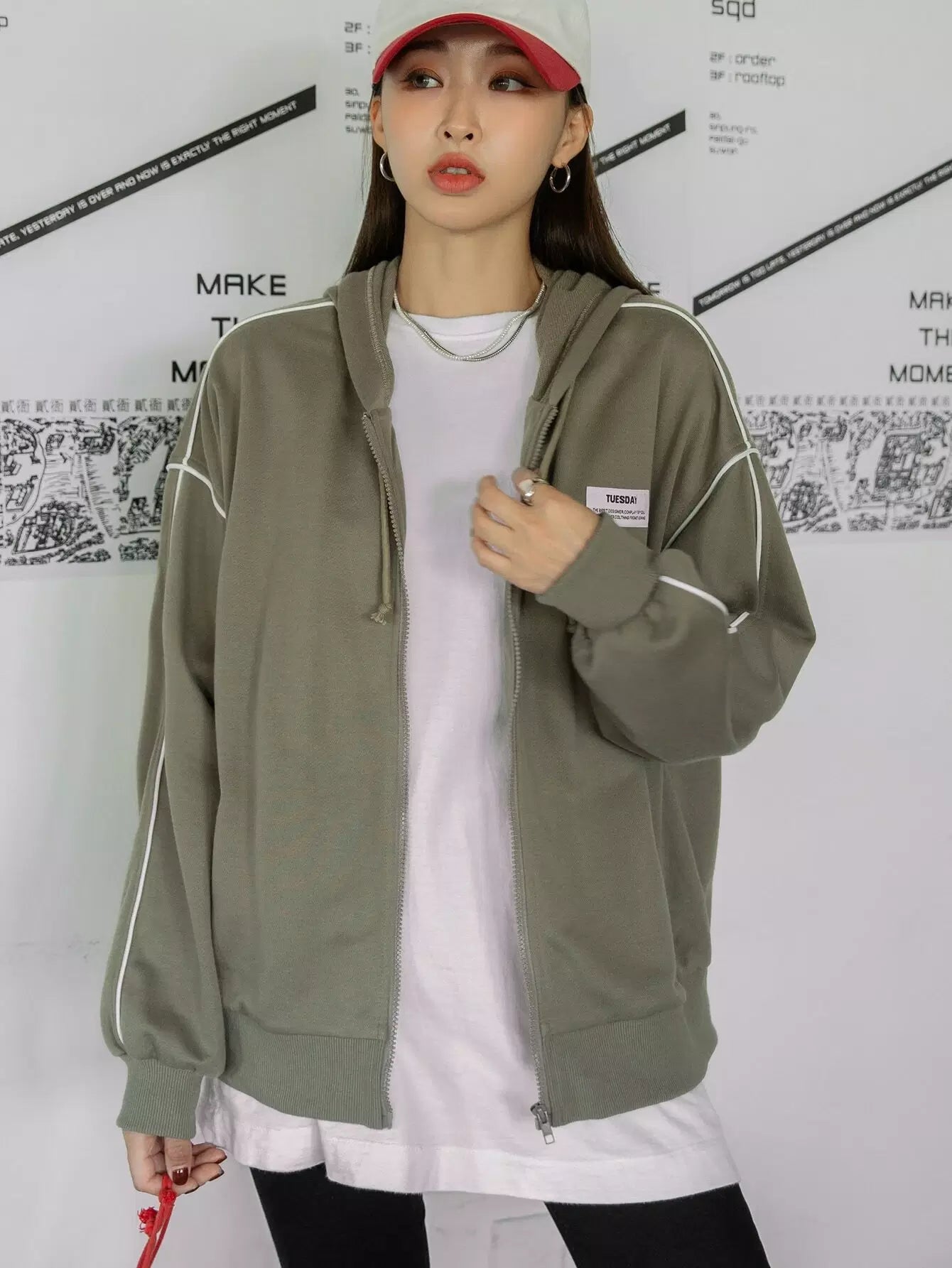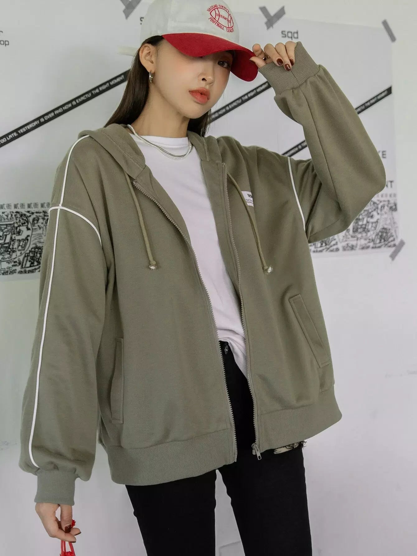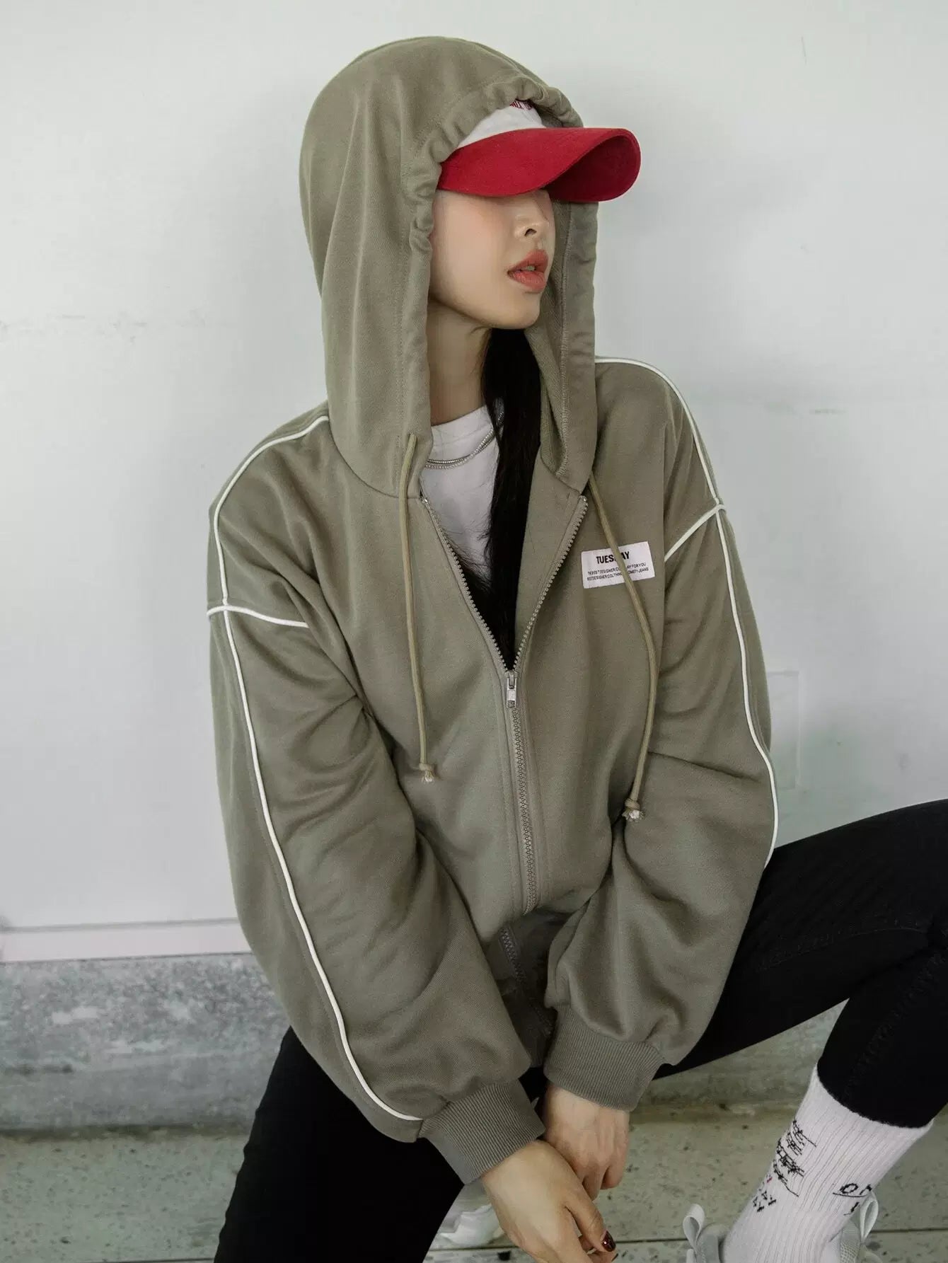 هودي منسدل منسدل منسدل من الأمام بسحاب منسدل على الكتف