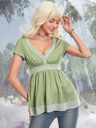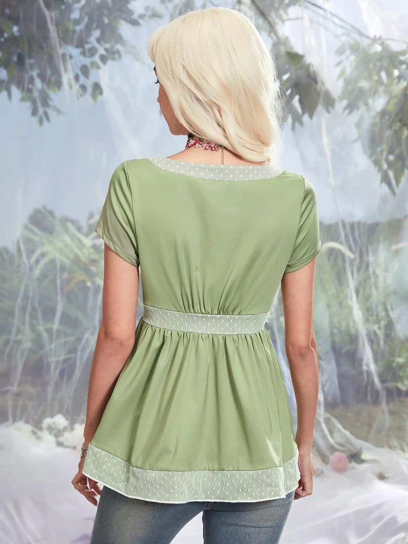 بلوزة برقبة مكشكشة بفتحة رقبة واسعة بفتحة رقبة مكشكشة بلون مغاير