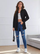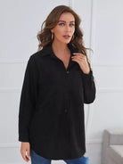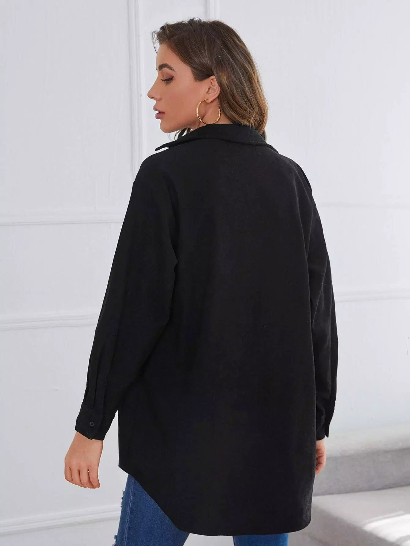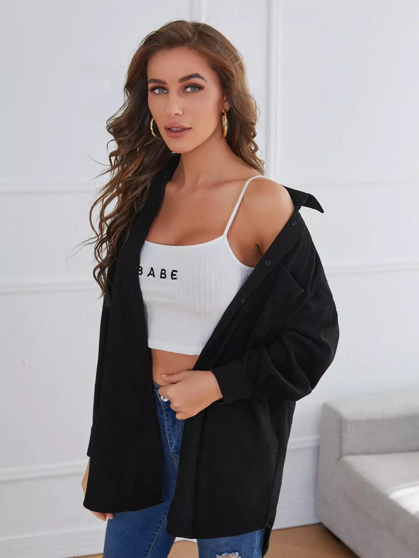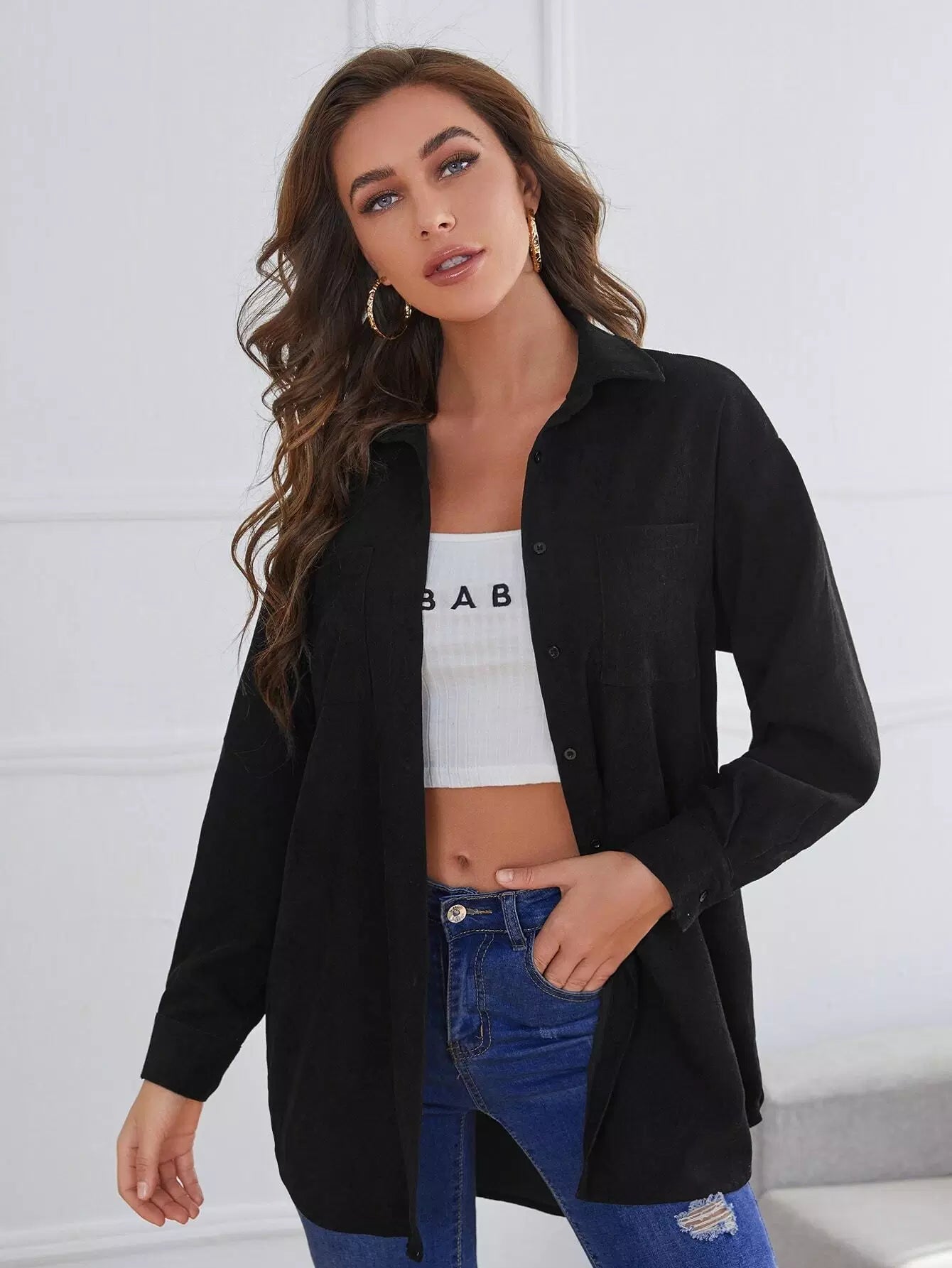 بلوزة من الدانتيل بكتف منسدلة ومزينة بجيوب