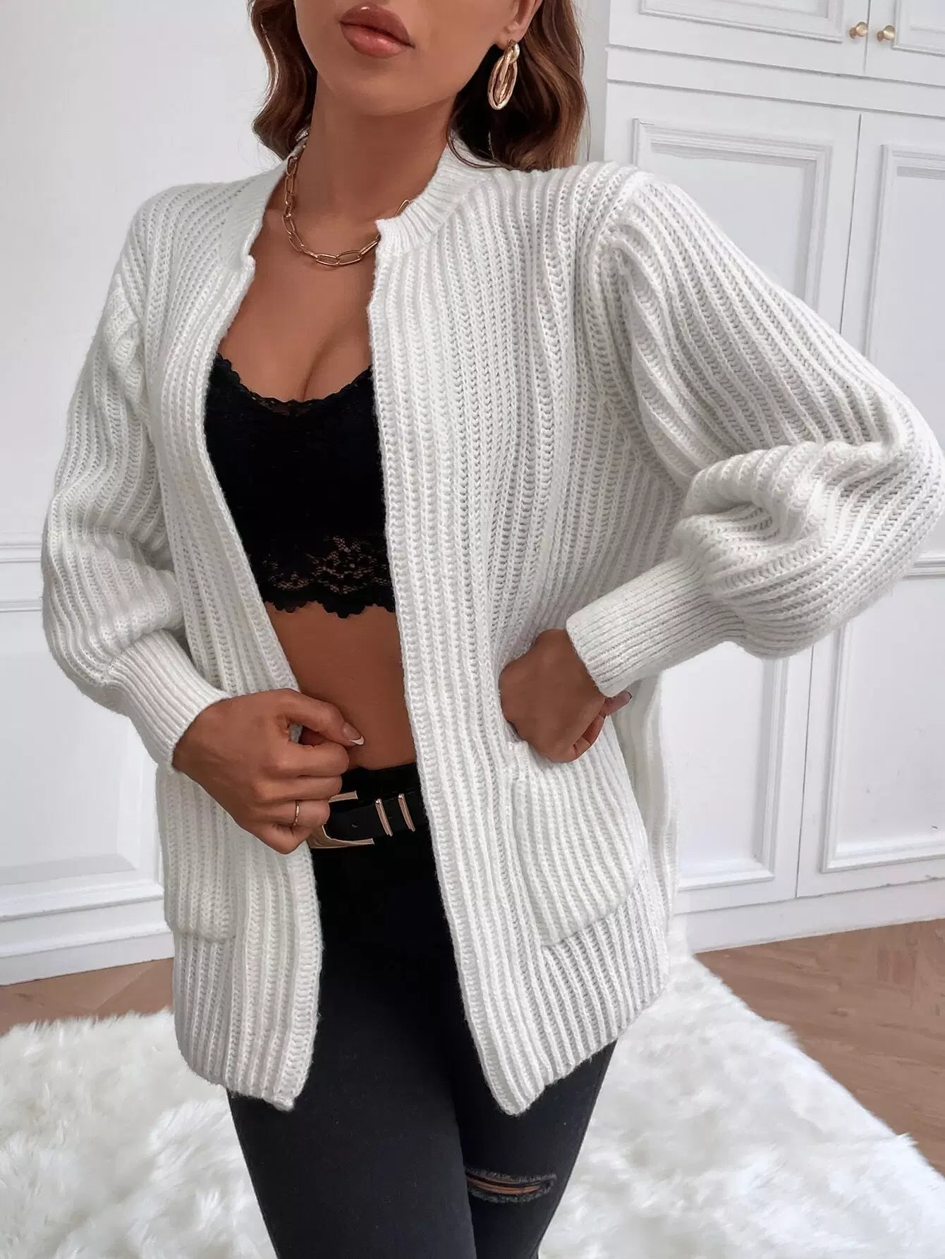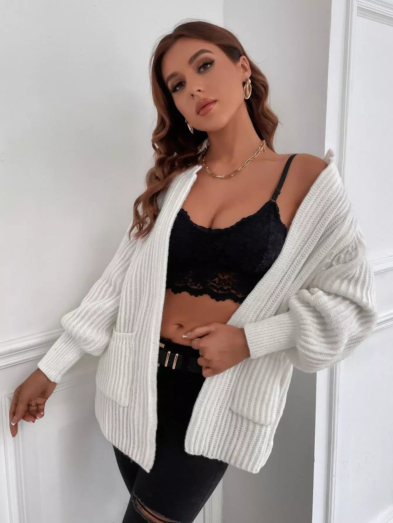 كارديغان مفتوح من الأمام مفتوح الجيب مرقع