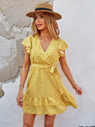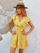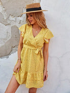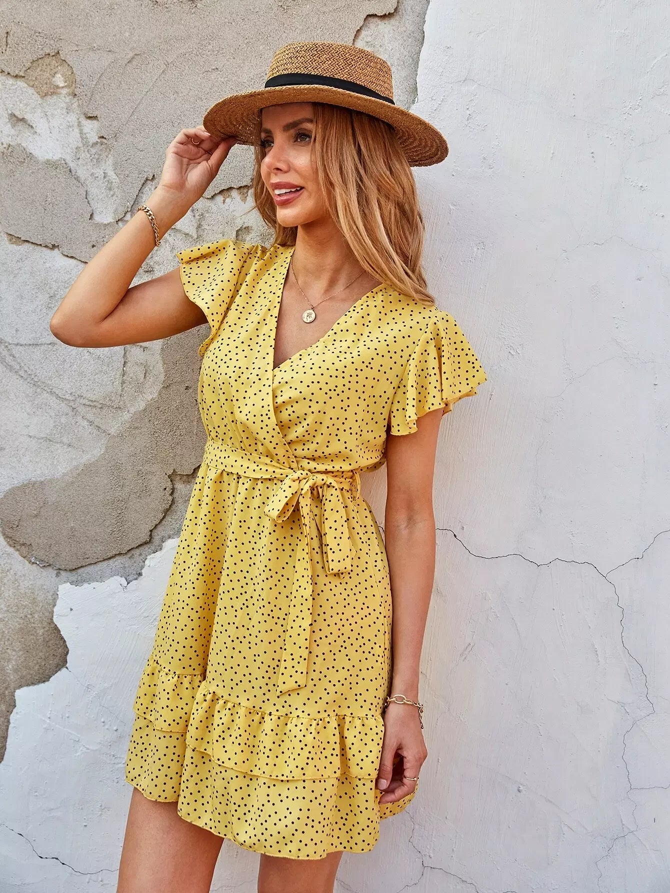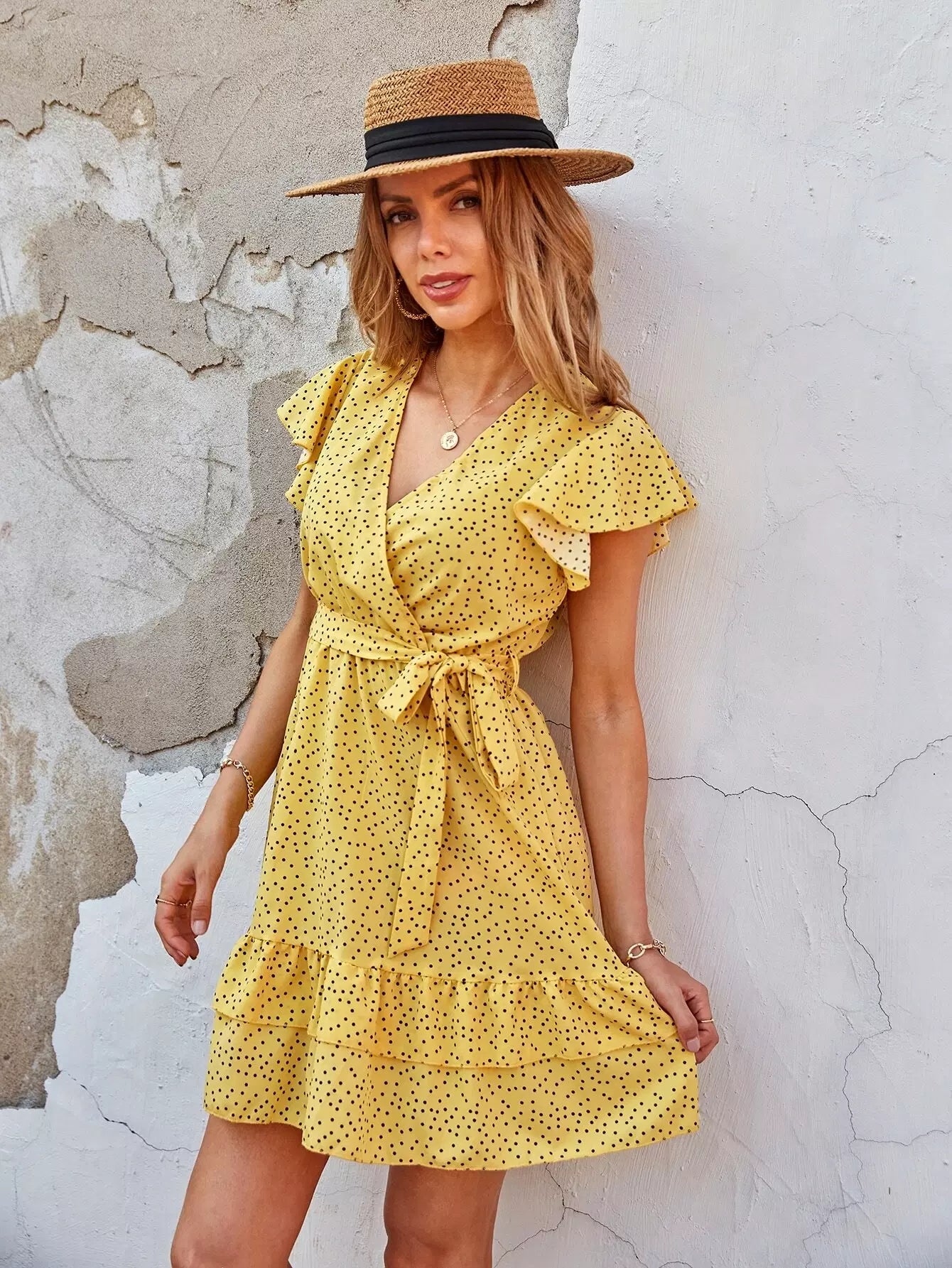 فستان منقط بطبقات وحاشية بدون حزام