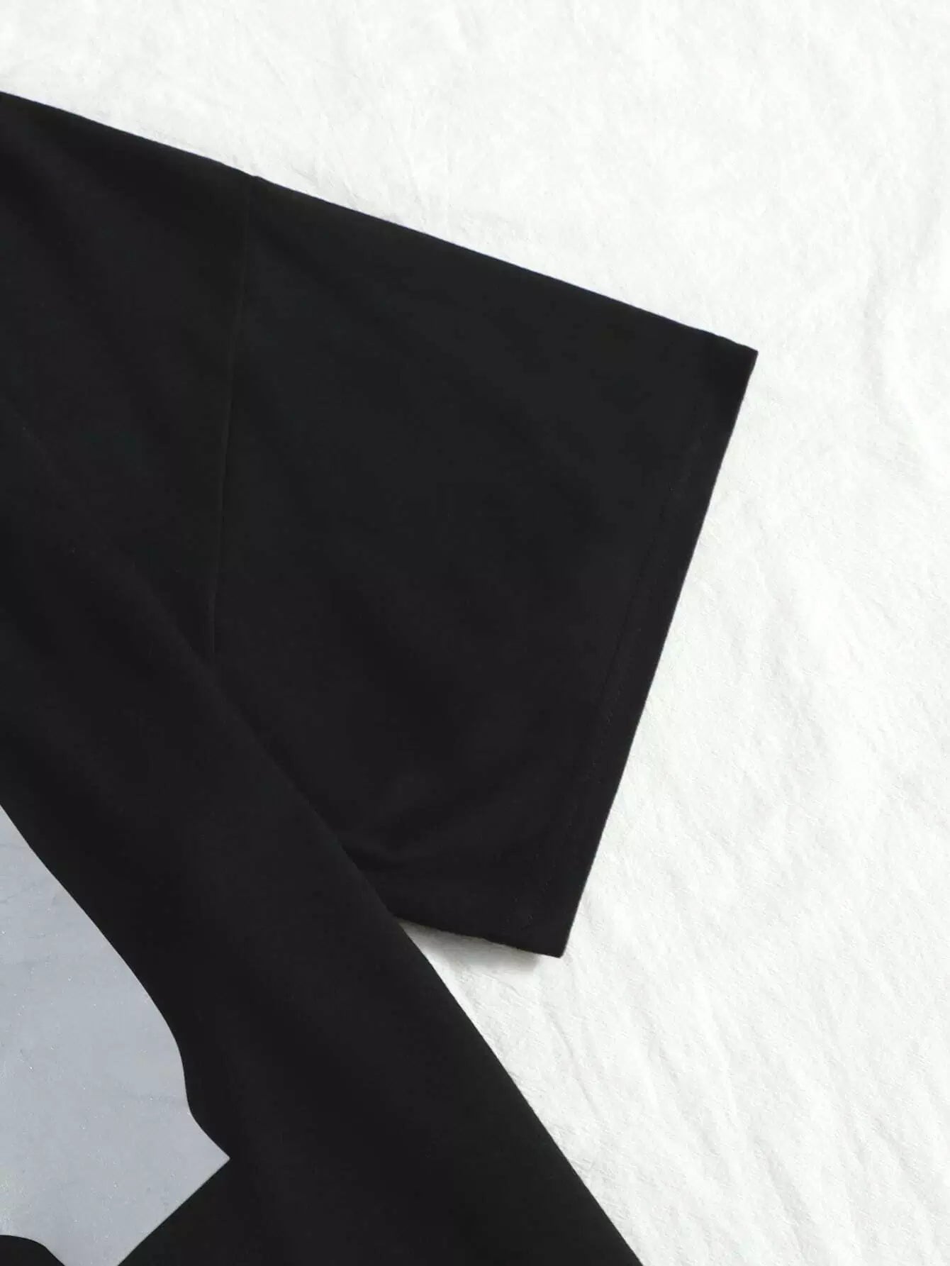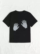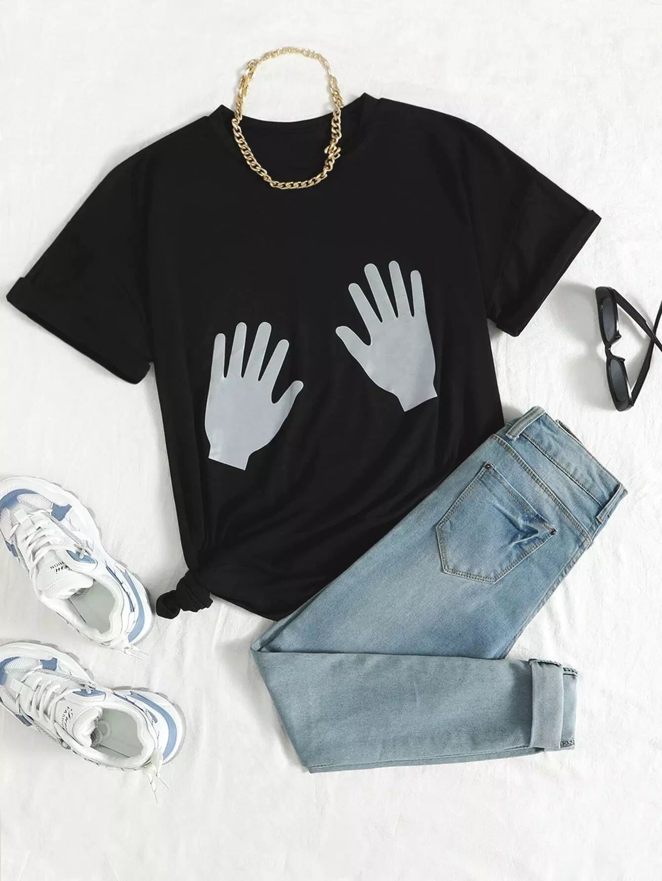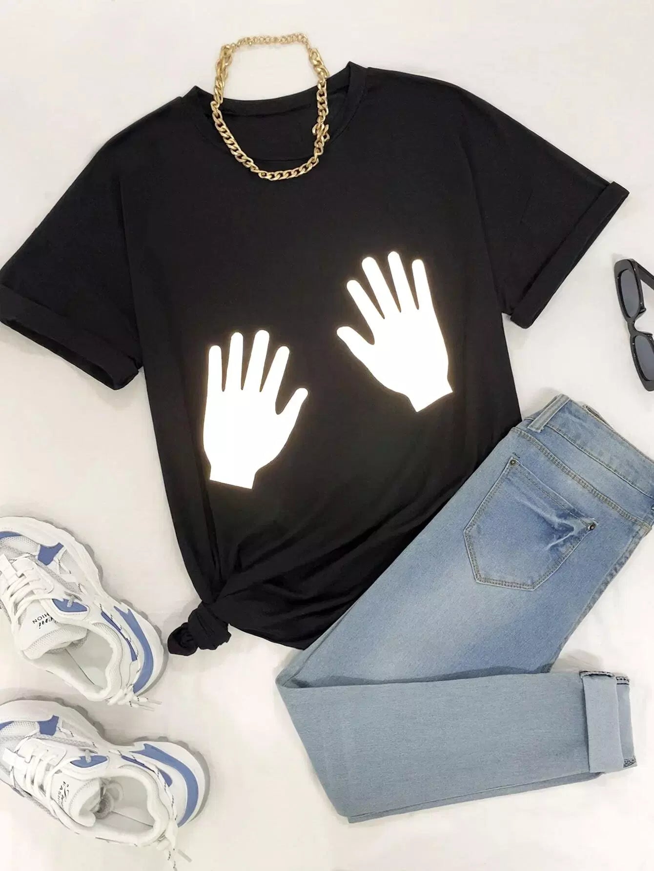 تي شيرت عاكسة بطبعة أيدي عاكسة منسدلة على الكتف كبير الحجم