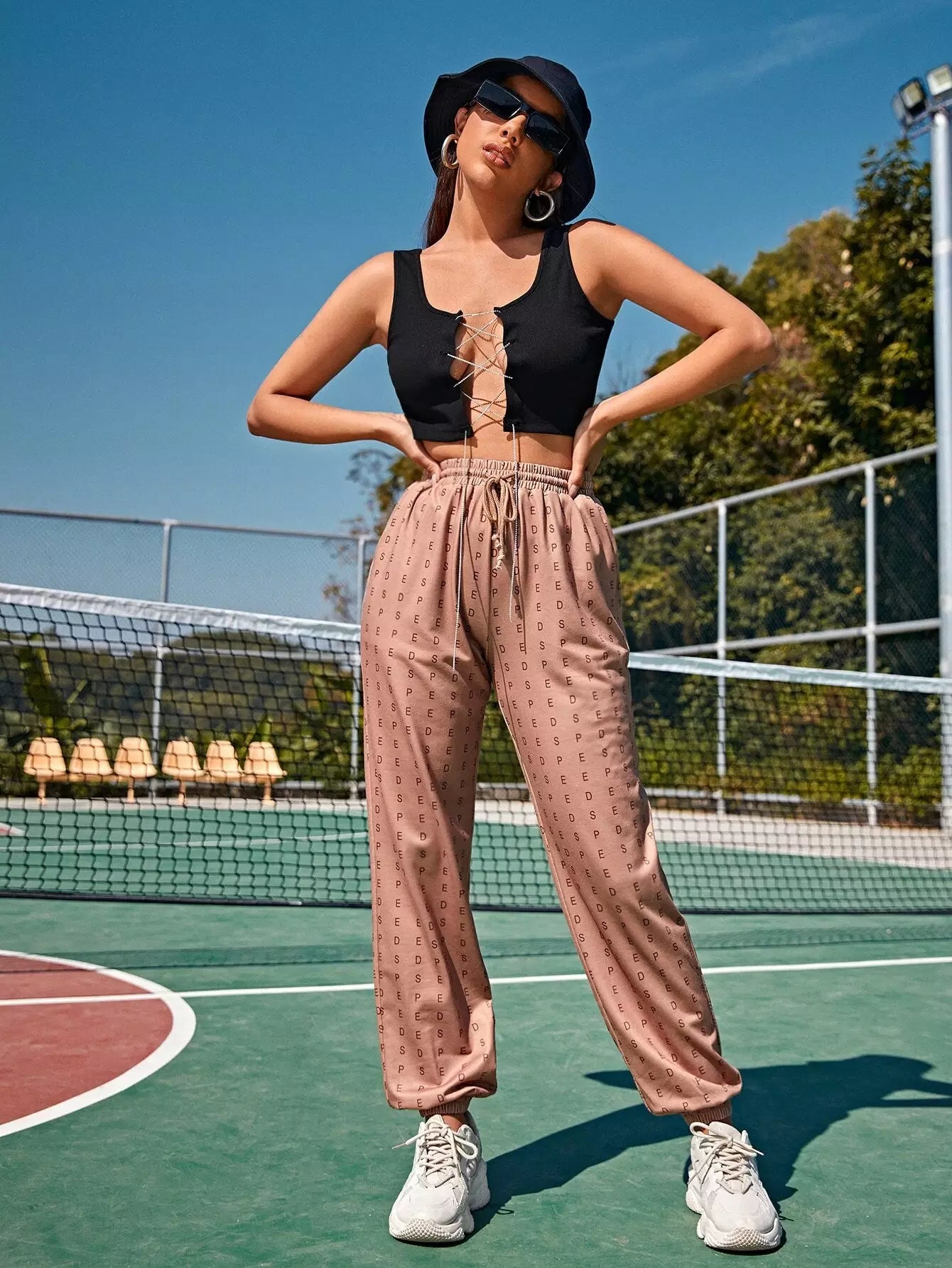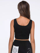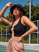 بلوزة بدون أكمام مضلعة مزينة بسلسلة من أحجار الراين مع رباط