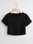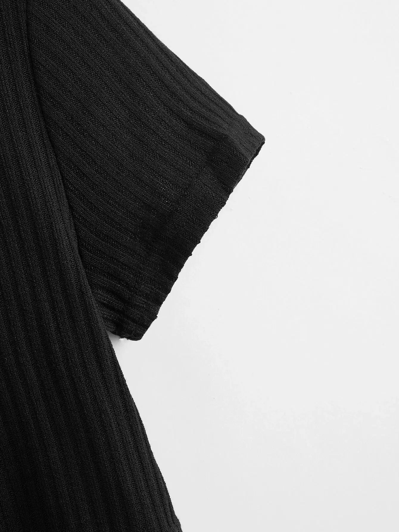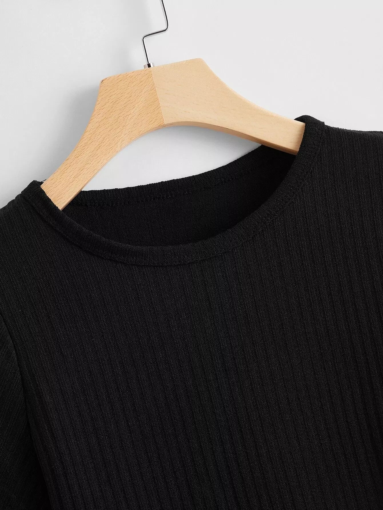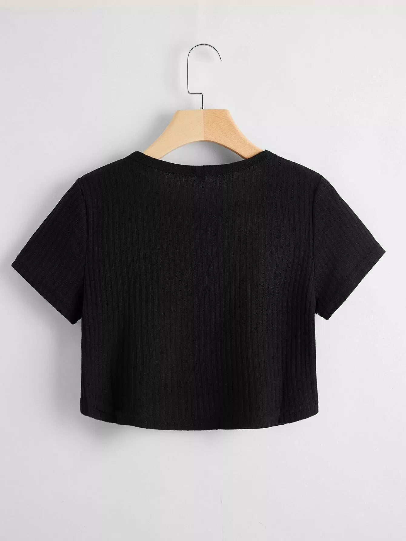 تي شيرت قصير ضيق محبوك على شكل ضلع محبوك