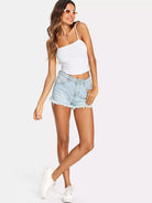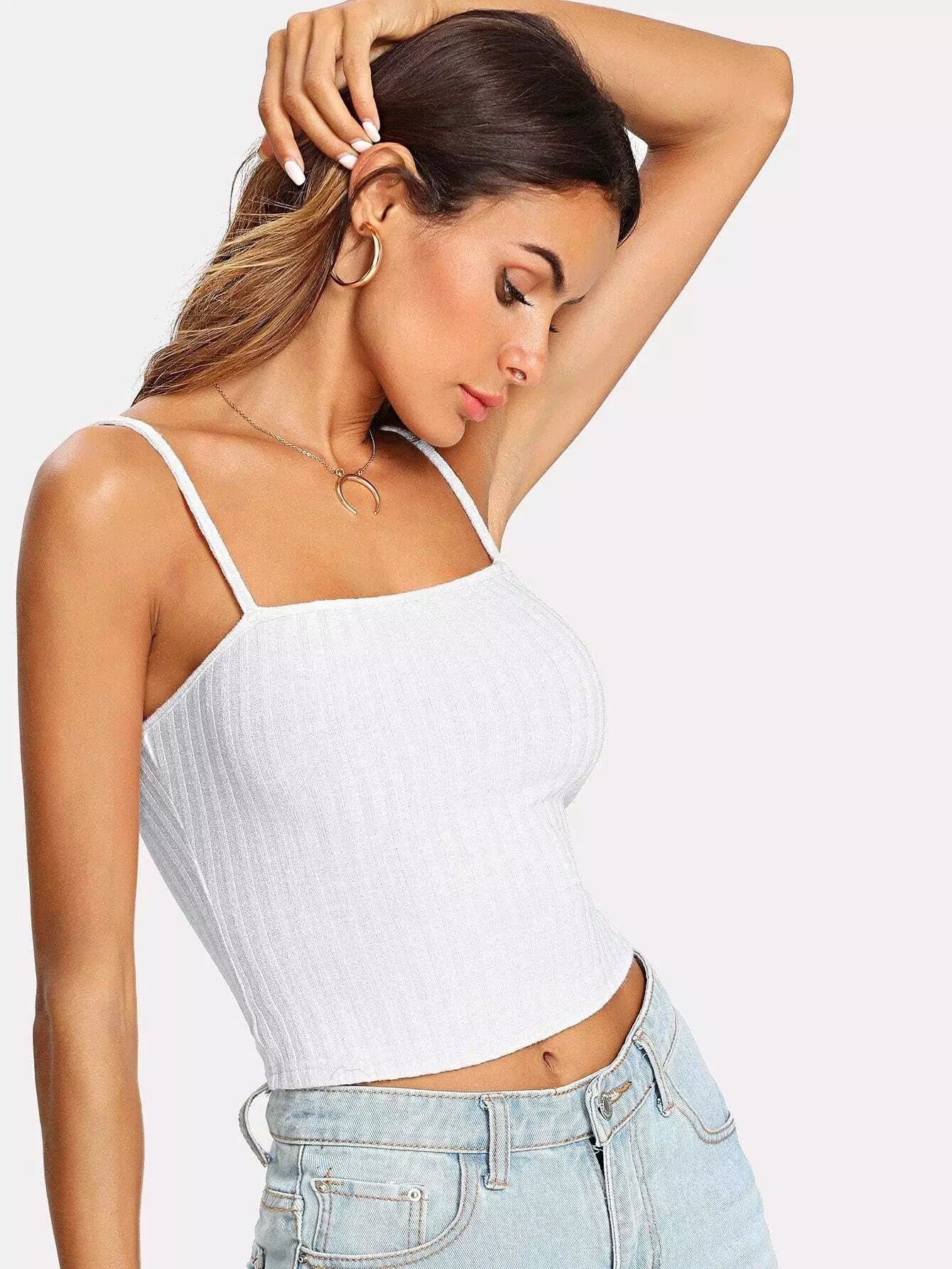 النساء - بلوزة كامي قصيرة مضلعة