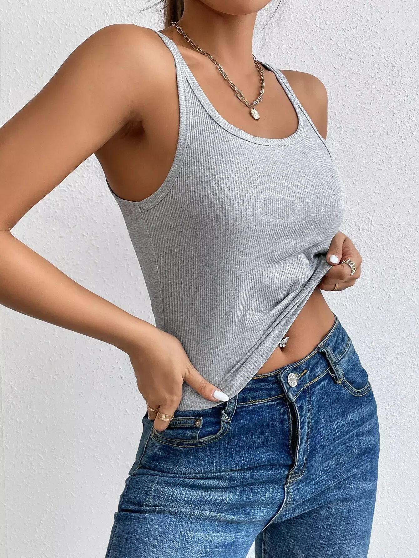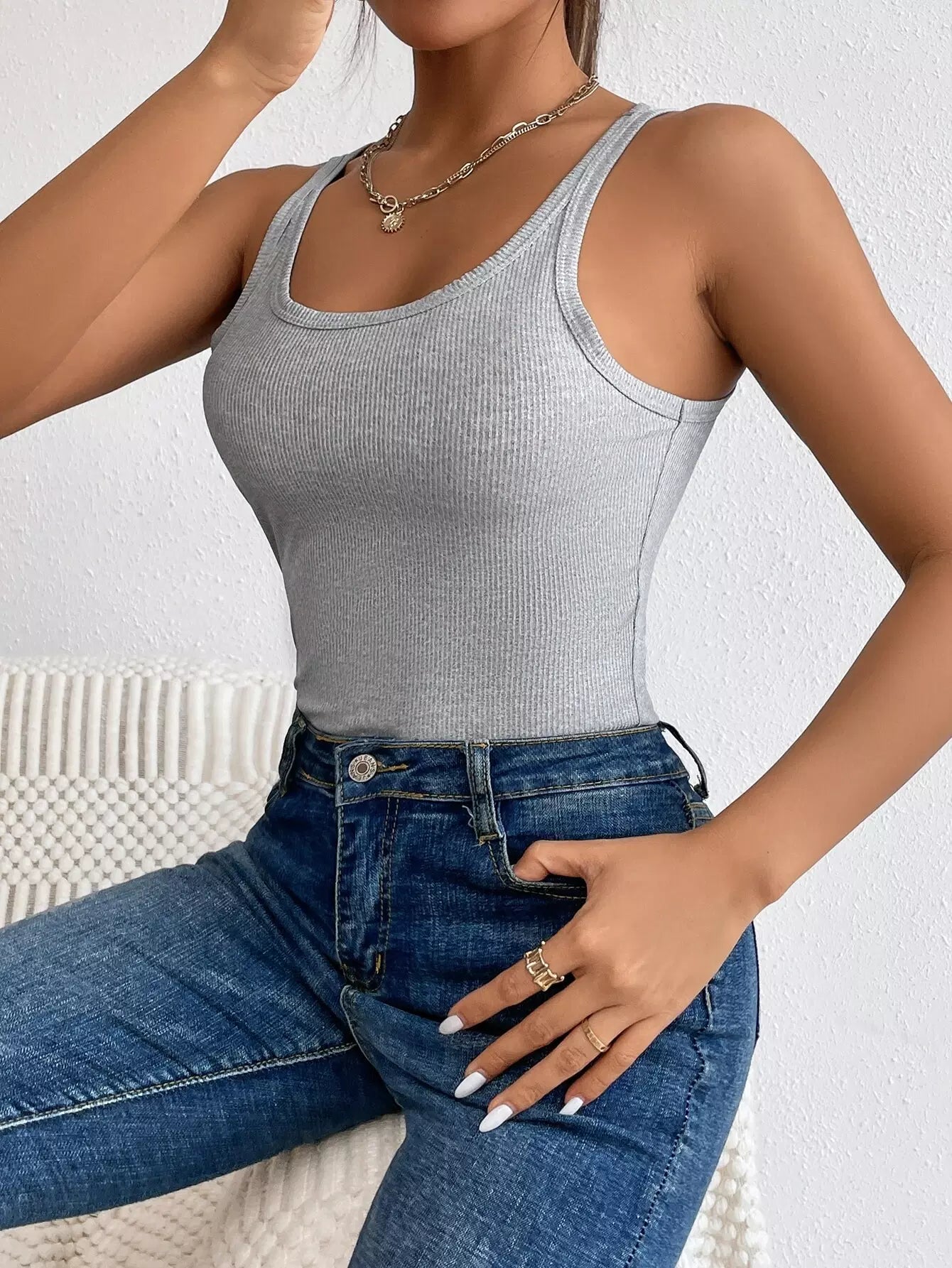 قميص بدون أكمام مضلع محبوك