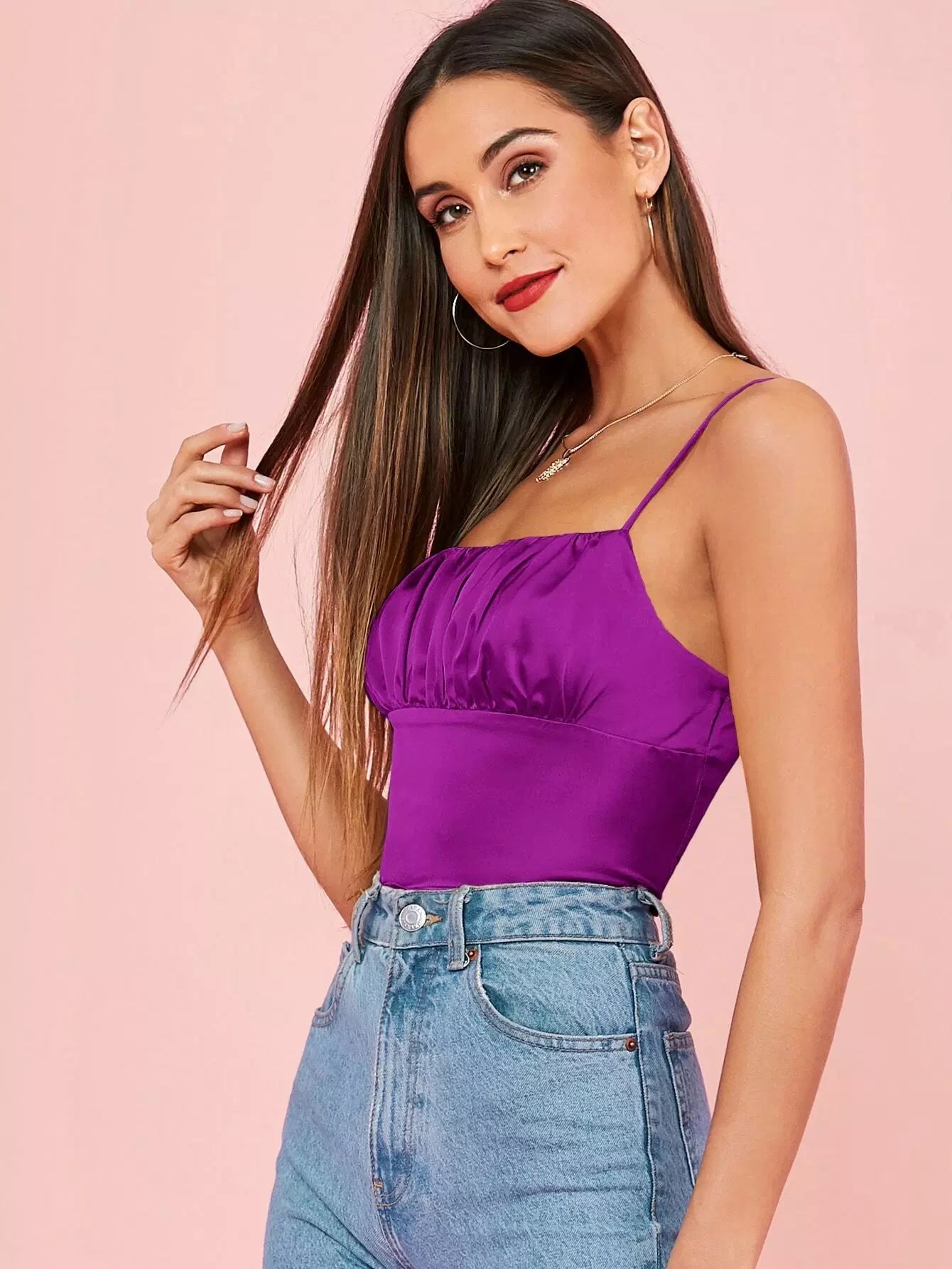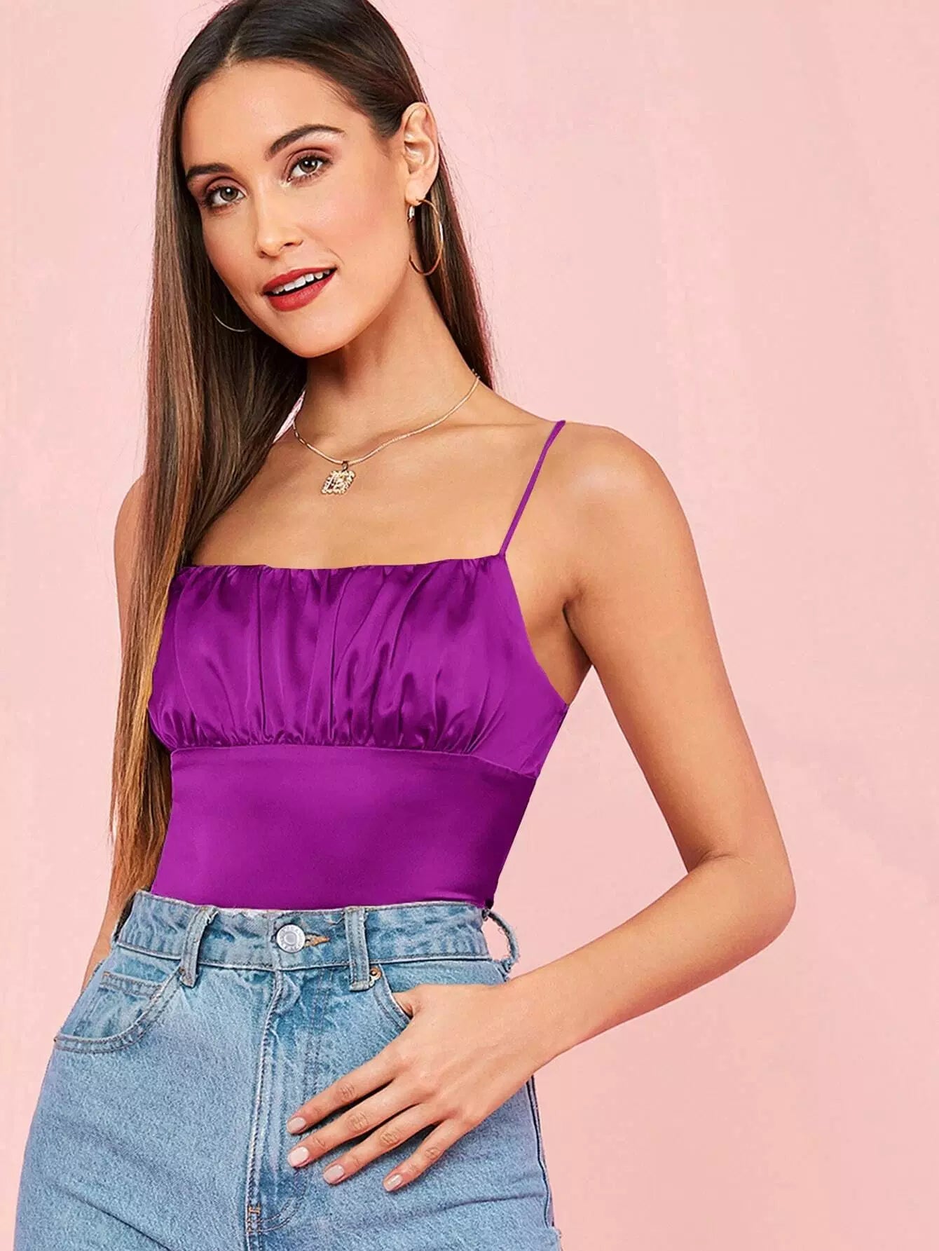 بلوزة كامي من الساتان بتفاصيل مجعدة