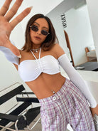 بلوزة مكشكشة برباط على الظهر برباط على شكل رباط رسن