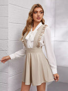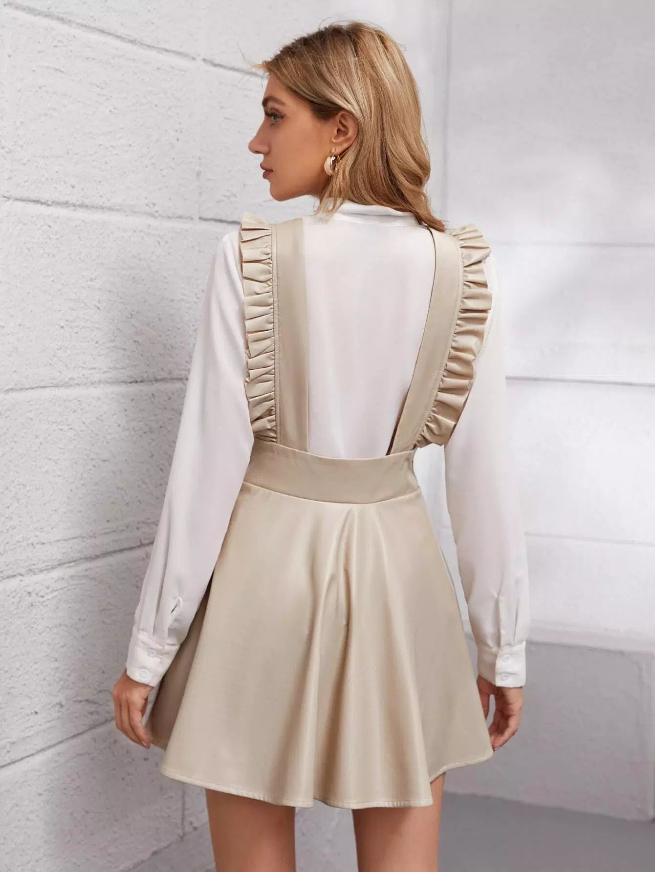 فستان بحمالات من البولي يوريثان بفتحة ذراع مكشكشة